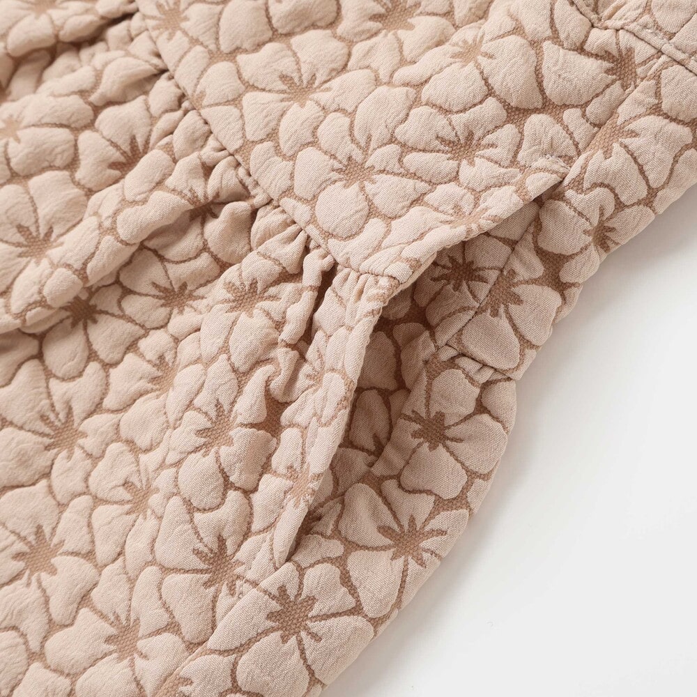 立体的に散りばめられた花柄が華やかな印象のキュロットパンツ。