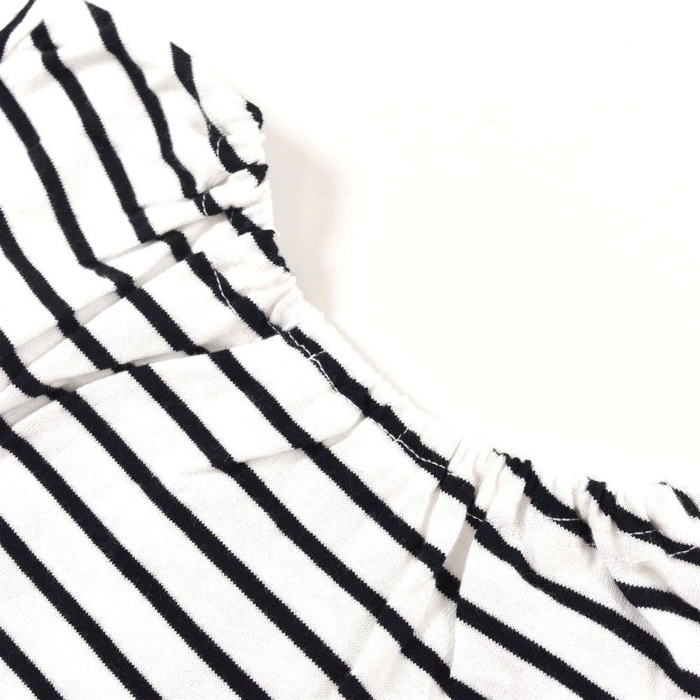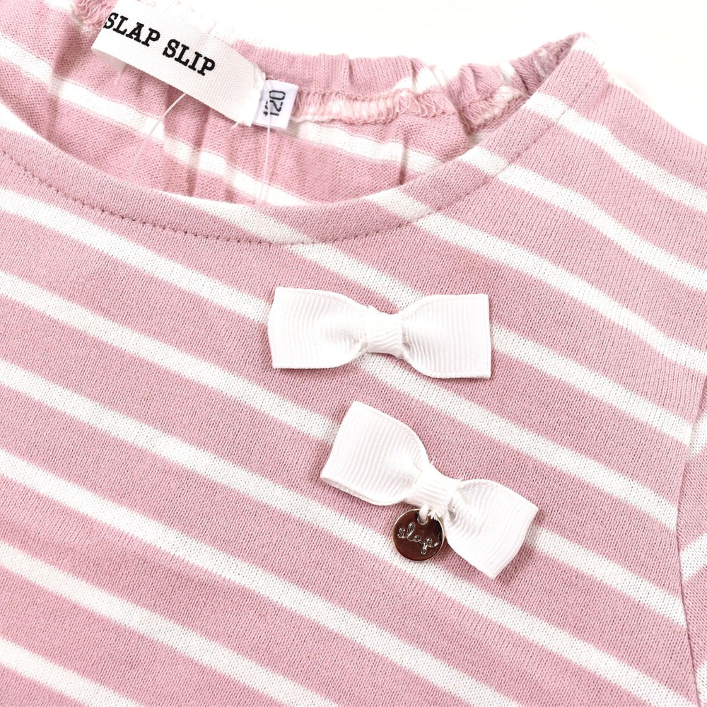 カジュアルな雰囲気のボーダー素材に、リボンが女の子らしさをプラス♪