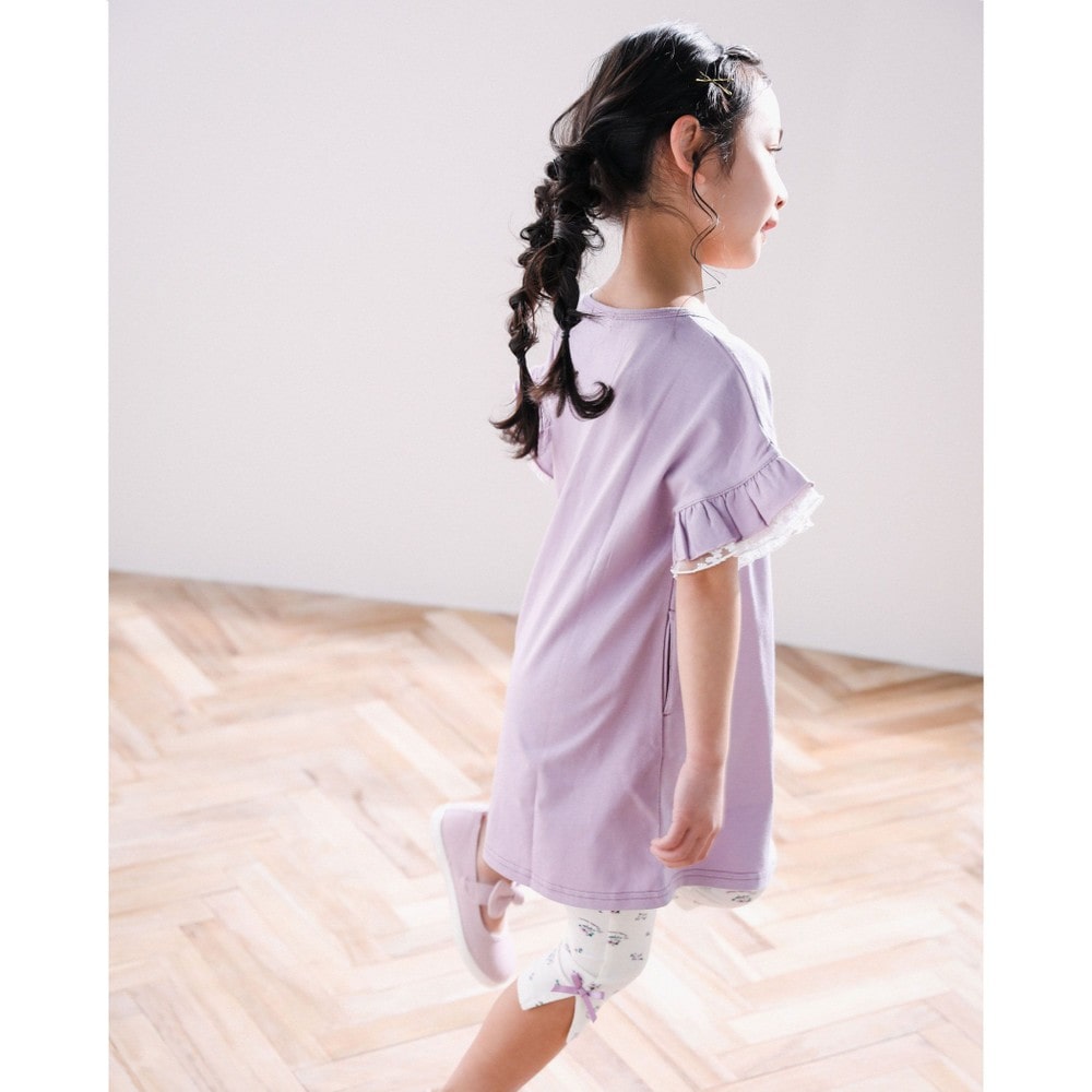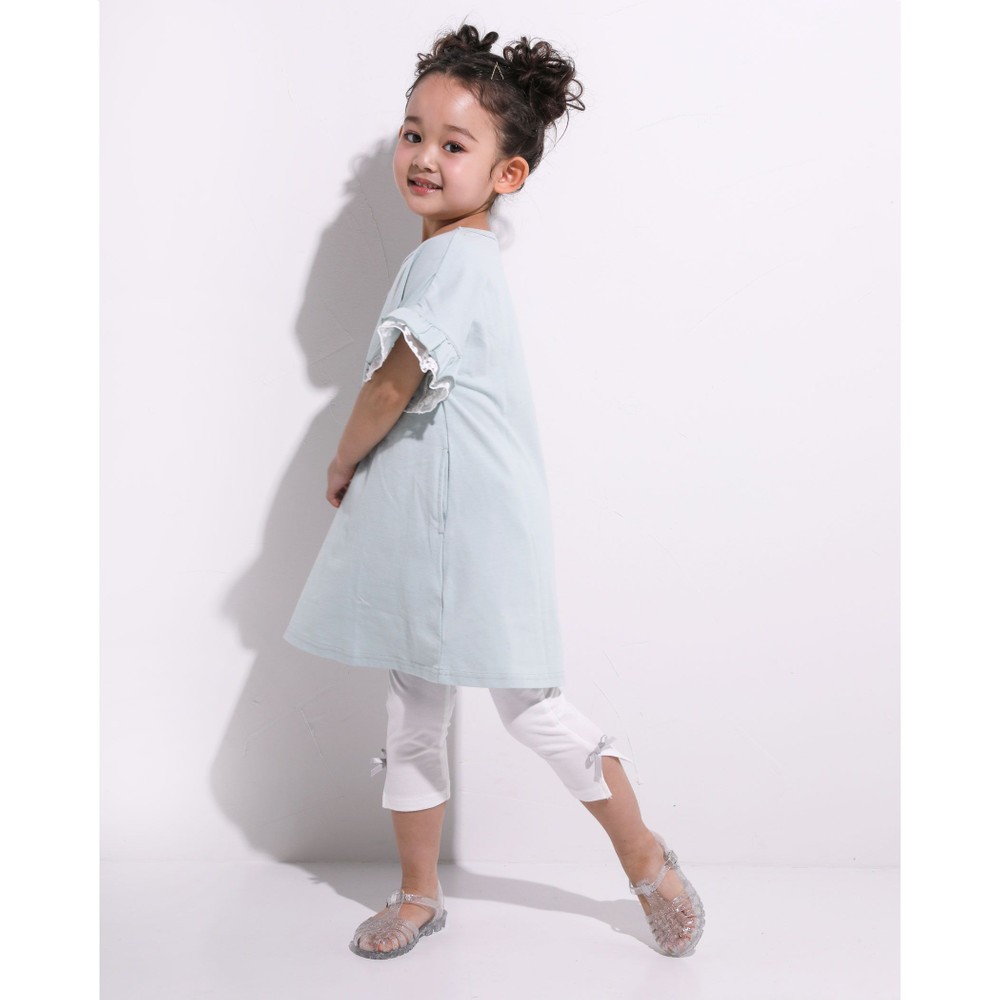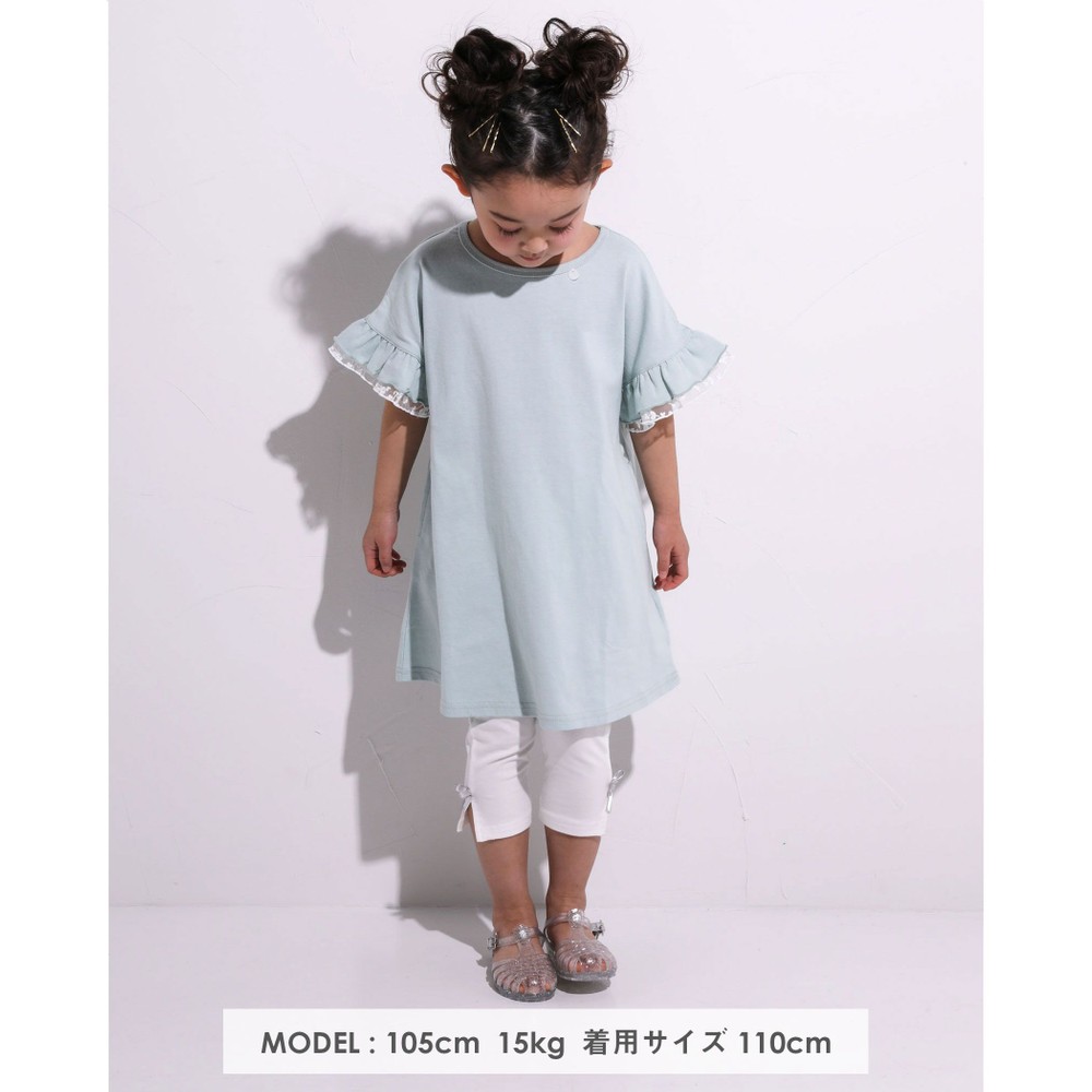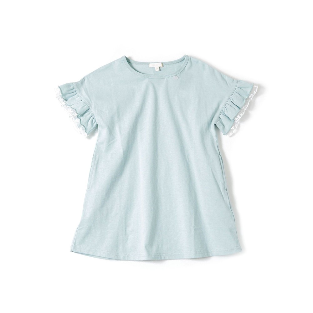 袖がフリルレースデザインの、天竺ワンピース。