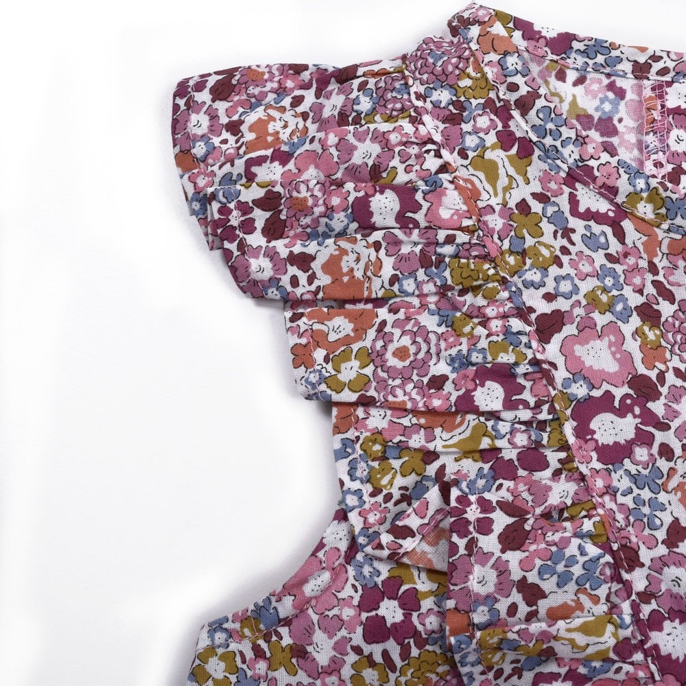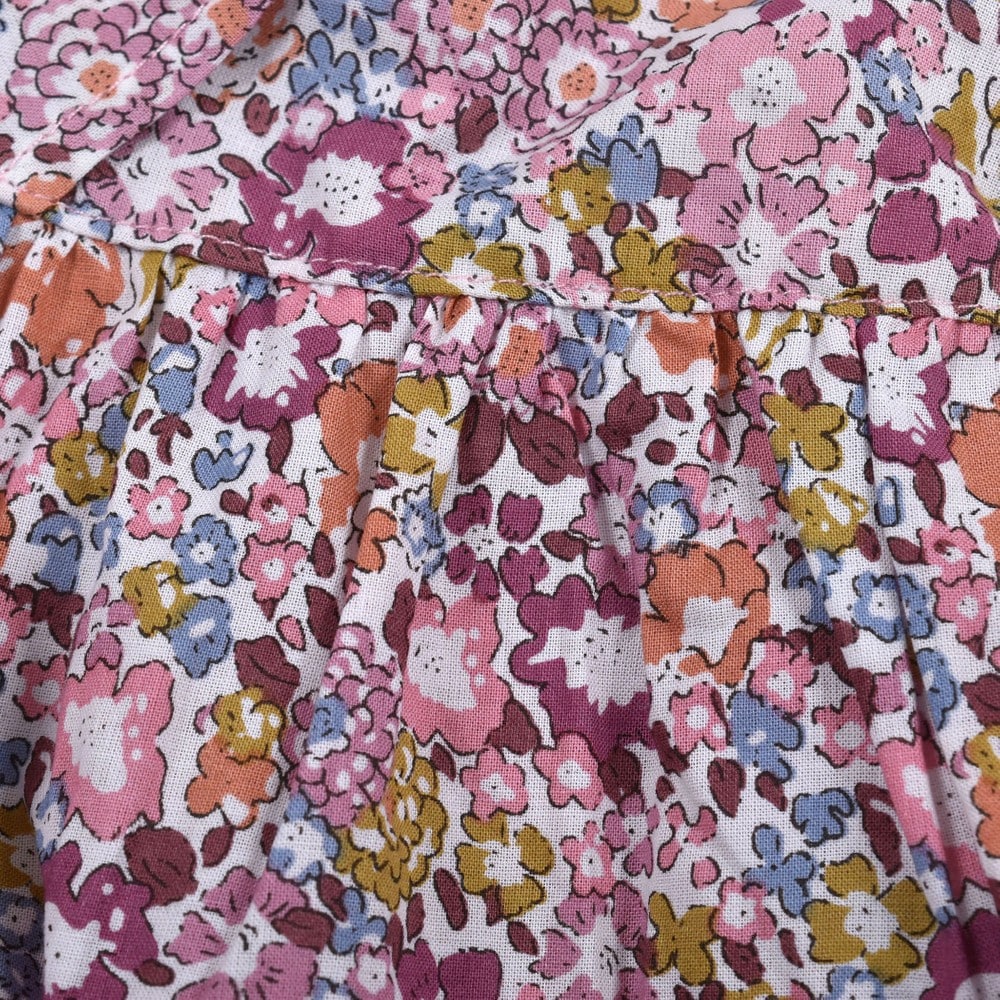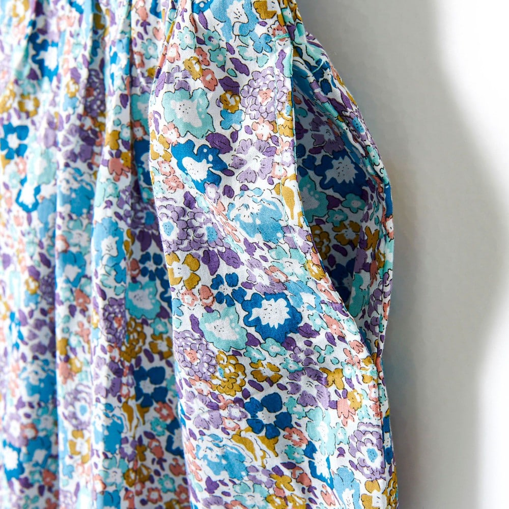 女の子の大好きな花柄を、さらりとした薄手の素材にプリントして仕上げました。
