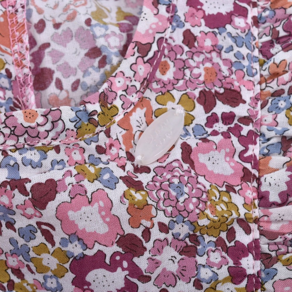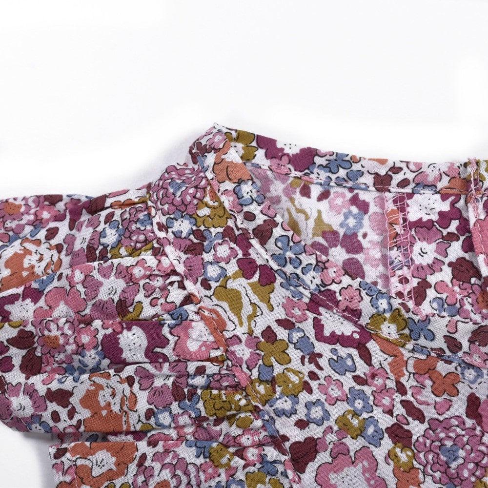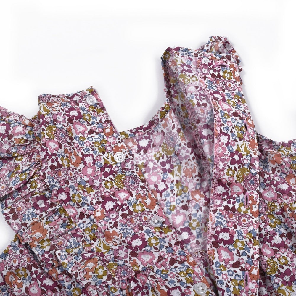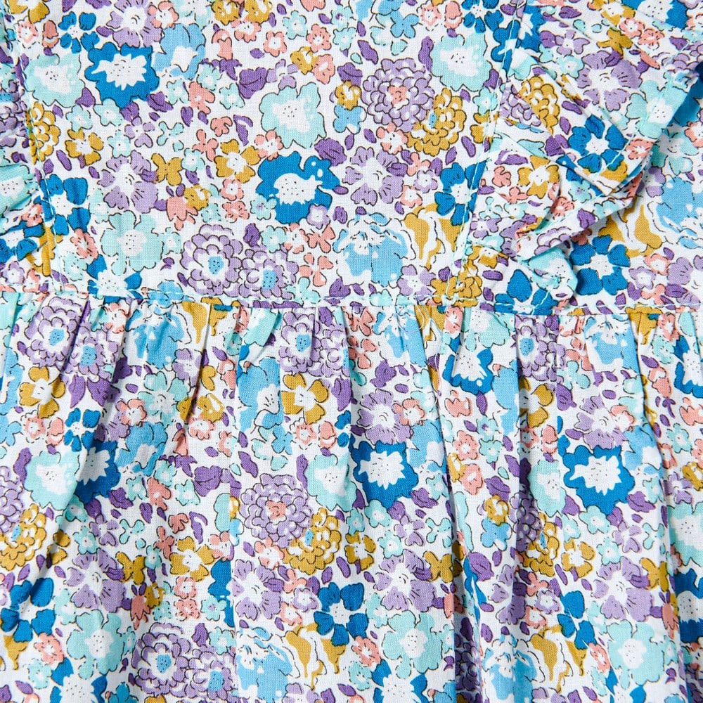 女の子の大好きな花柄を、さらりとした薄手の素材にプリントして仕上げました。