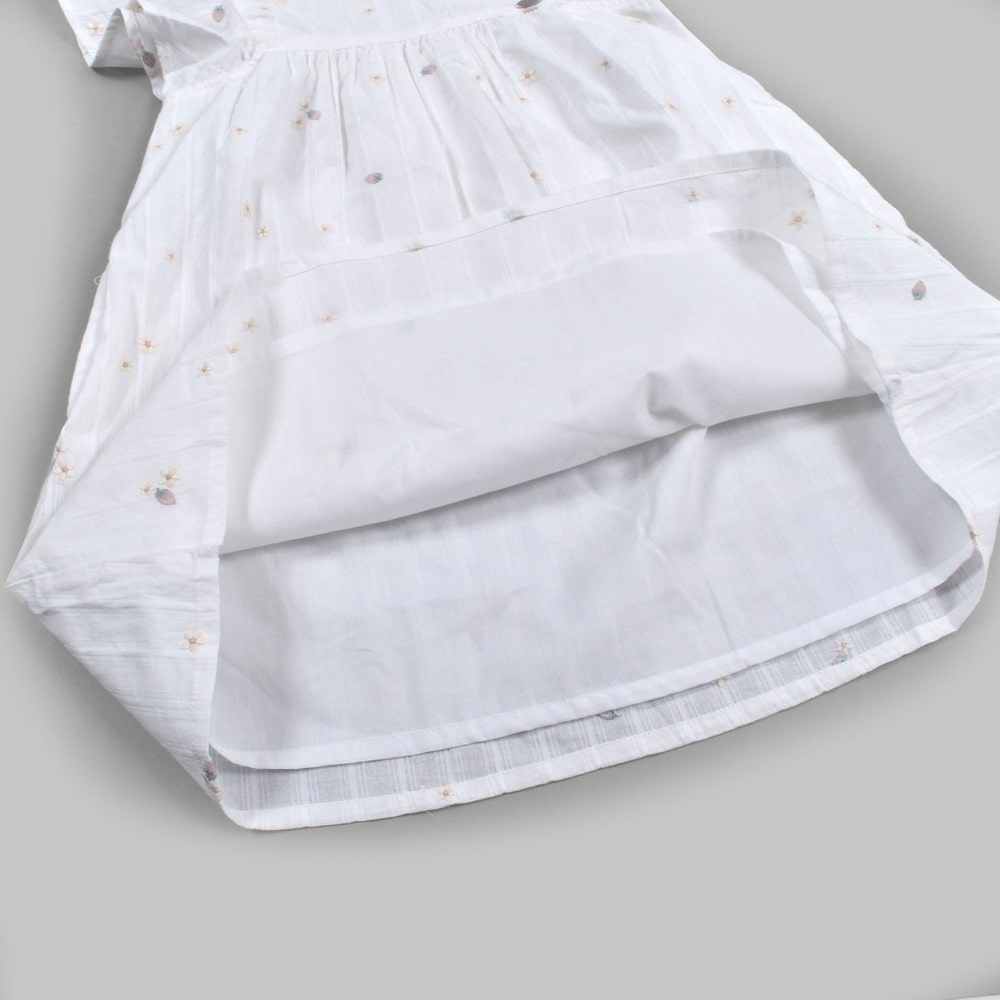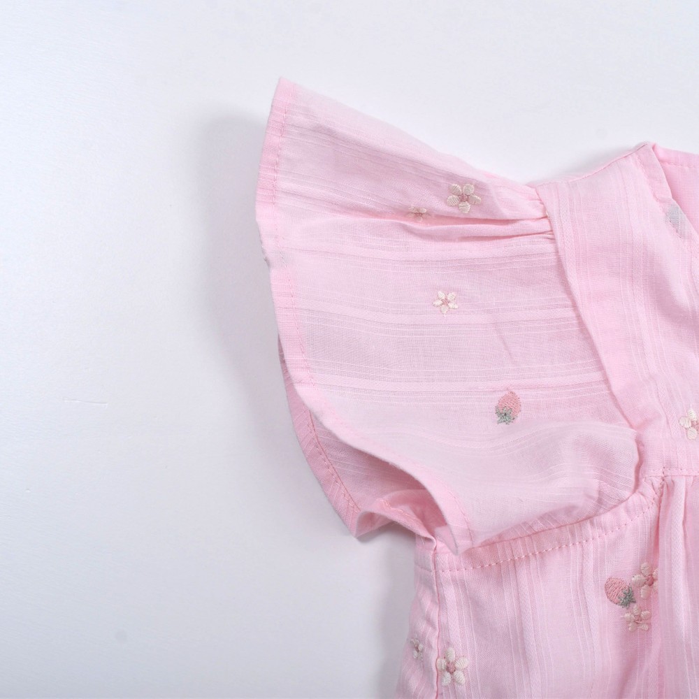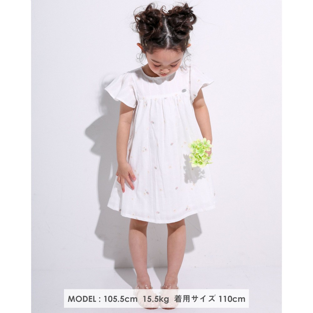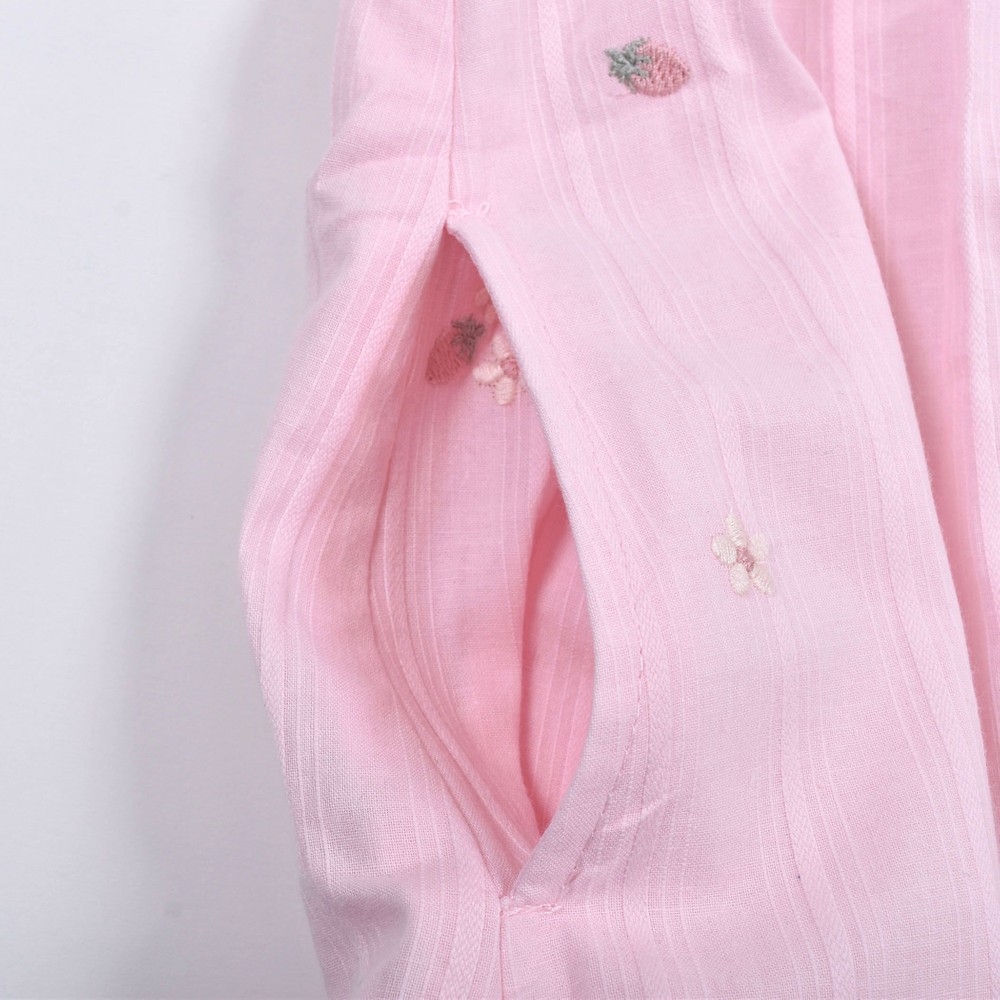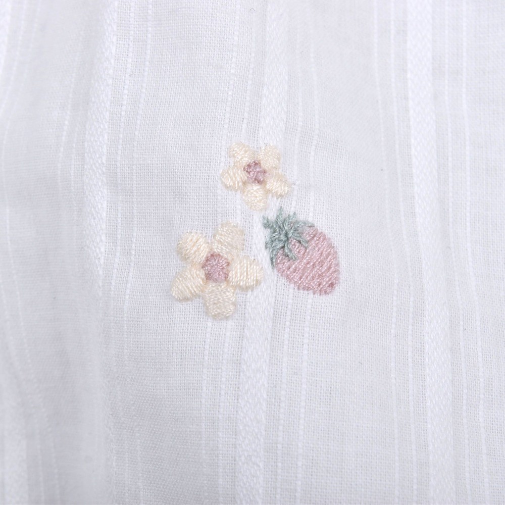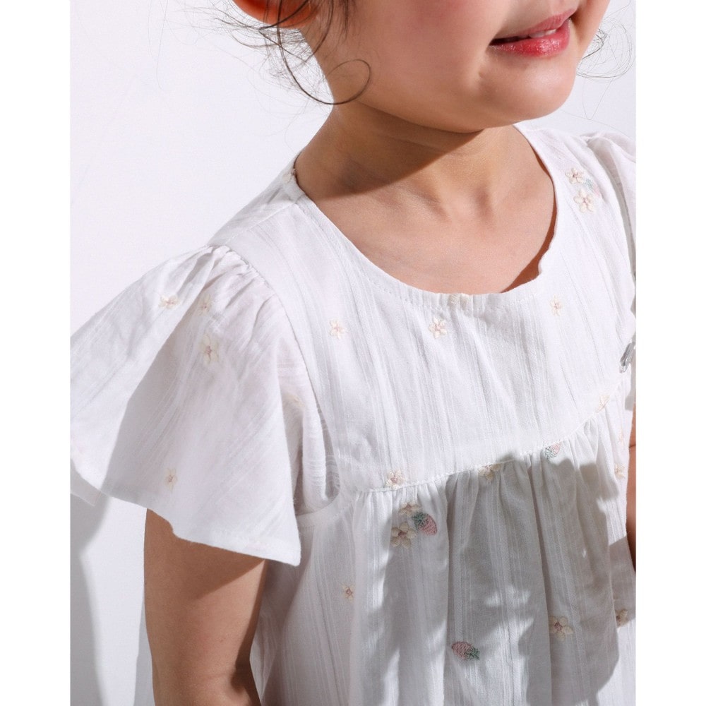 お花とイチゴが刺繍された、ガーゼワンピース。