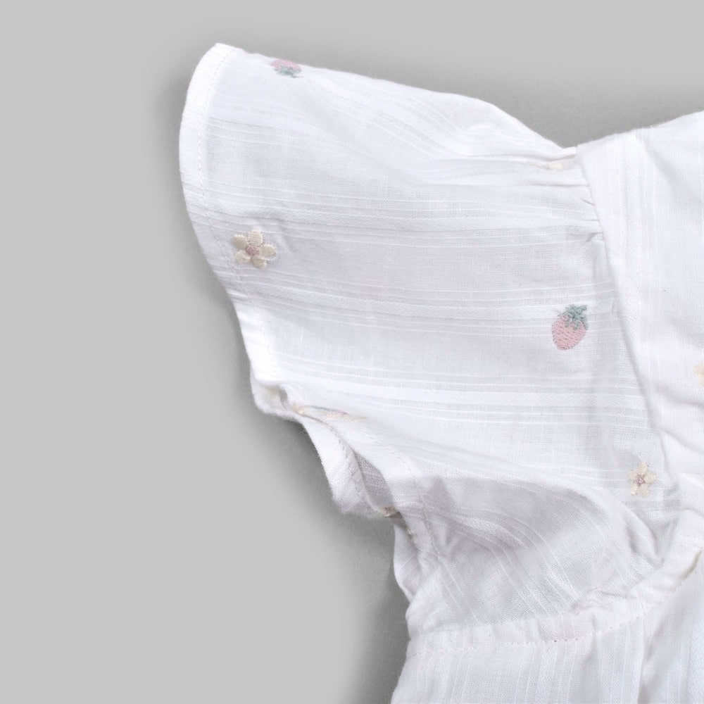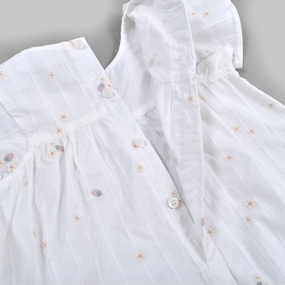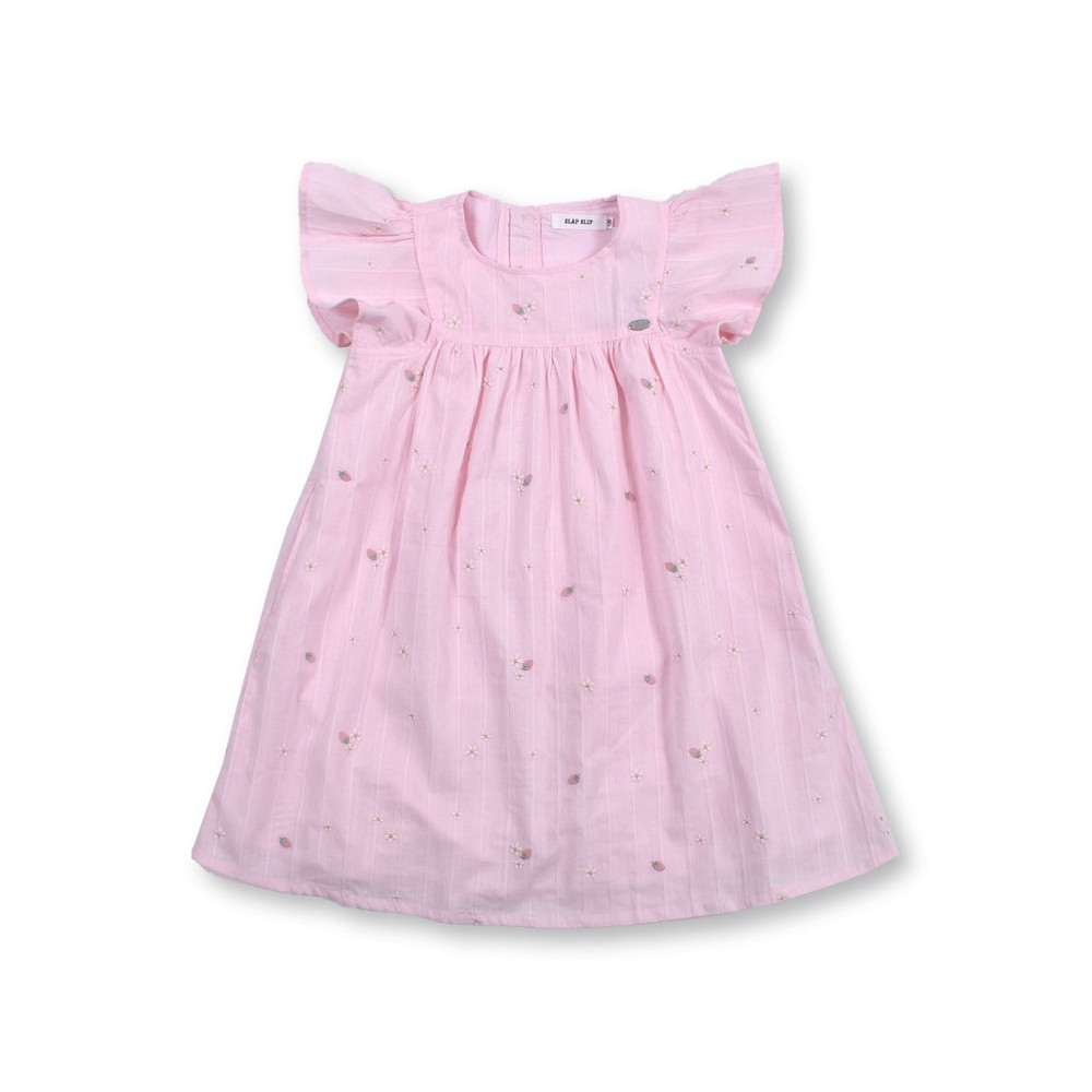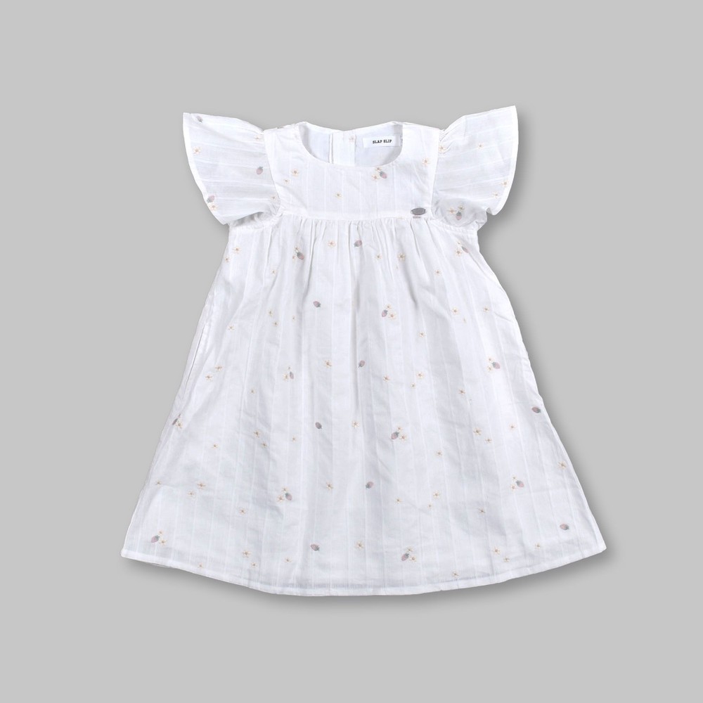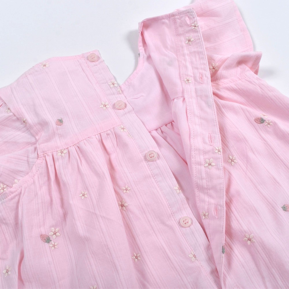 お花とイチゴが刺繍された、ガーゼワンピース。