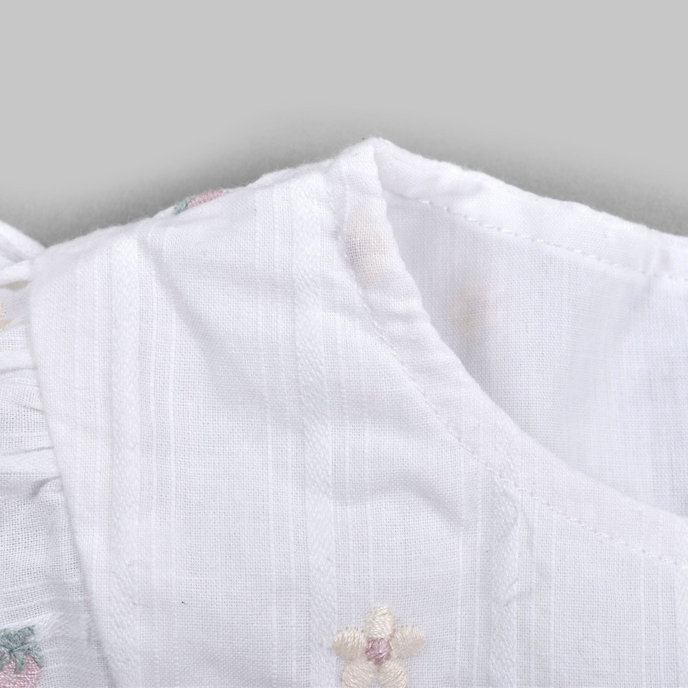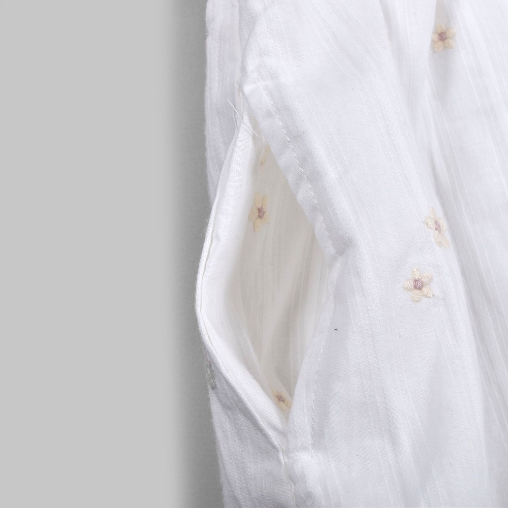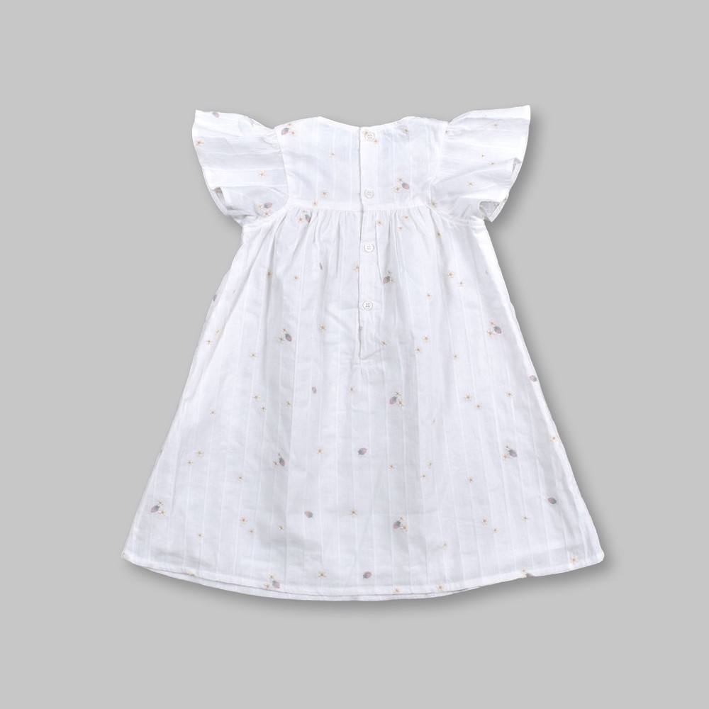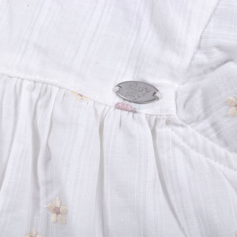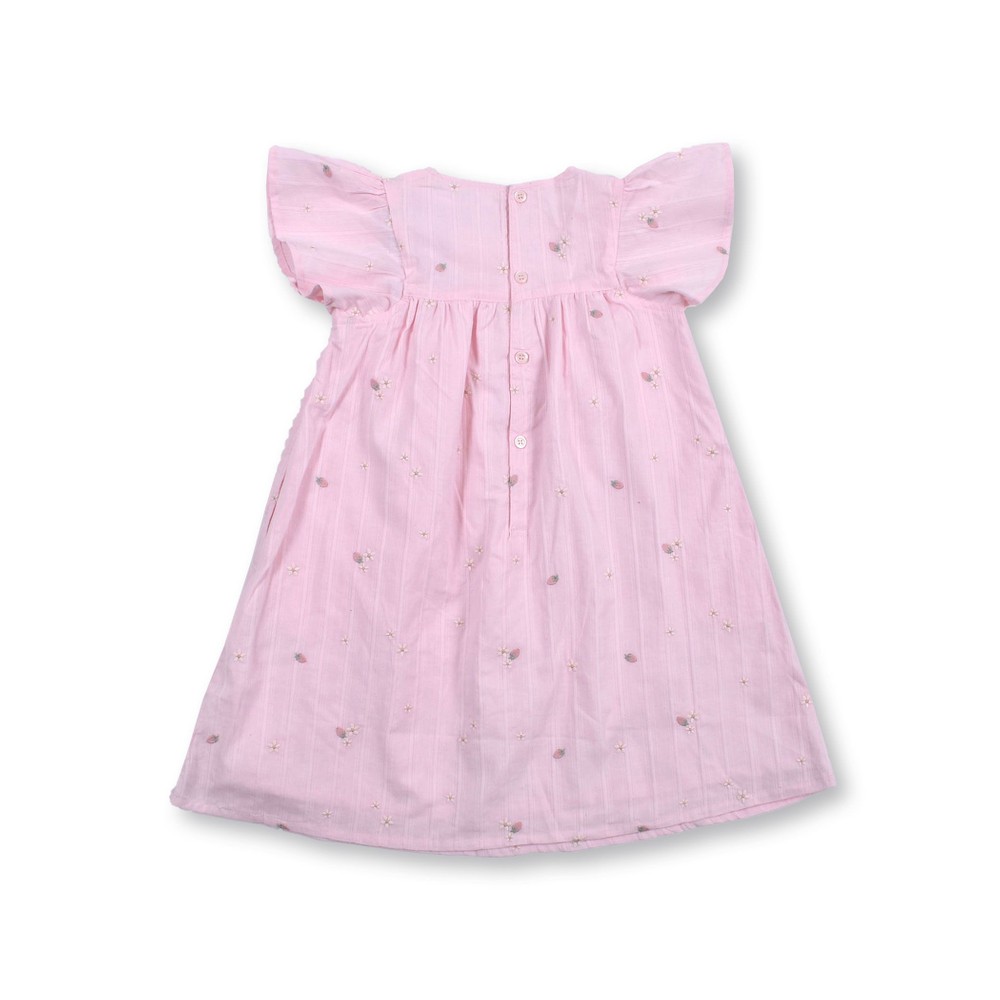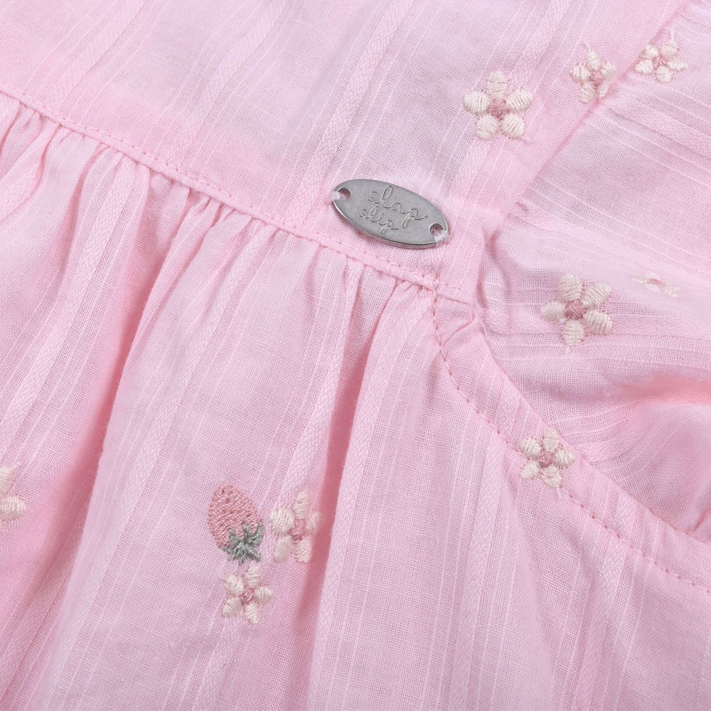 お花とイチゴが刺繍された、ガーゼワンピース。