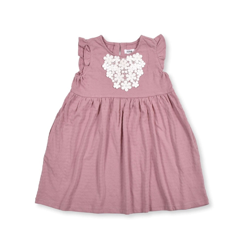 肩のフリルと大小のお花のモチーフが上品なデザインです。