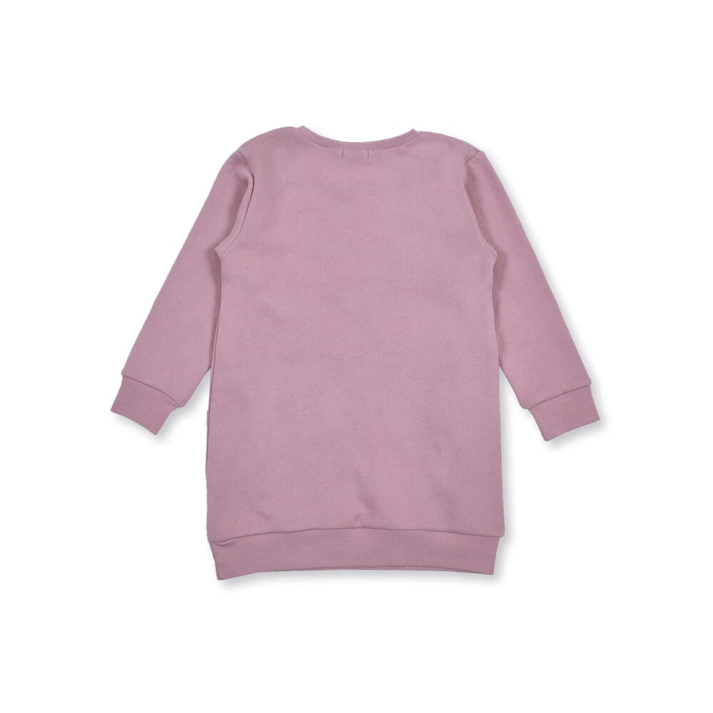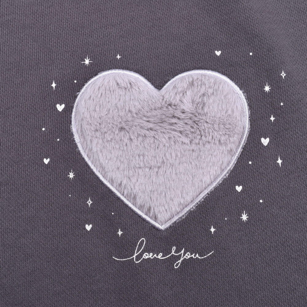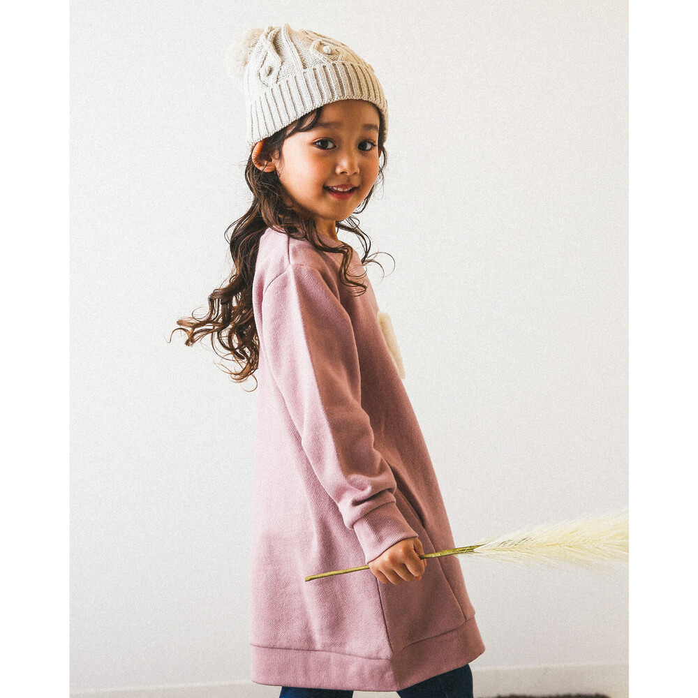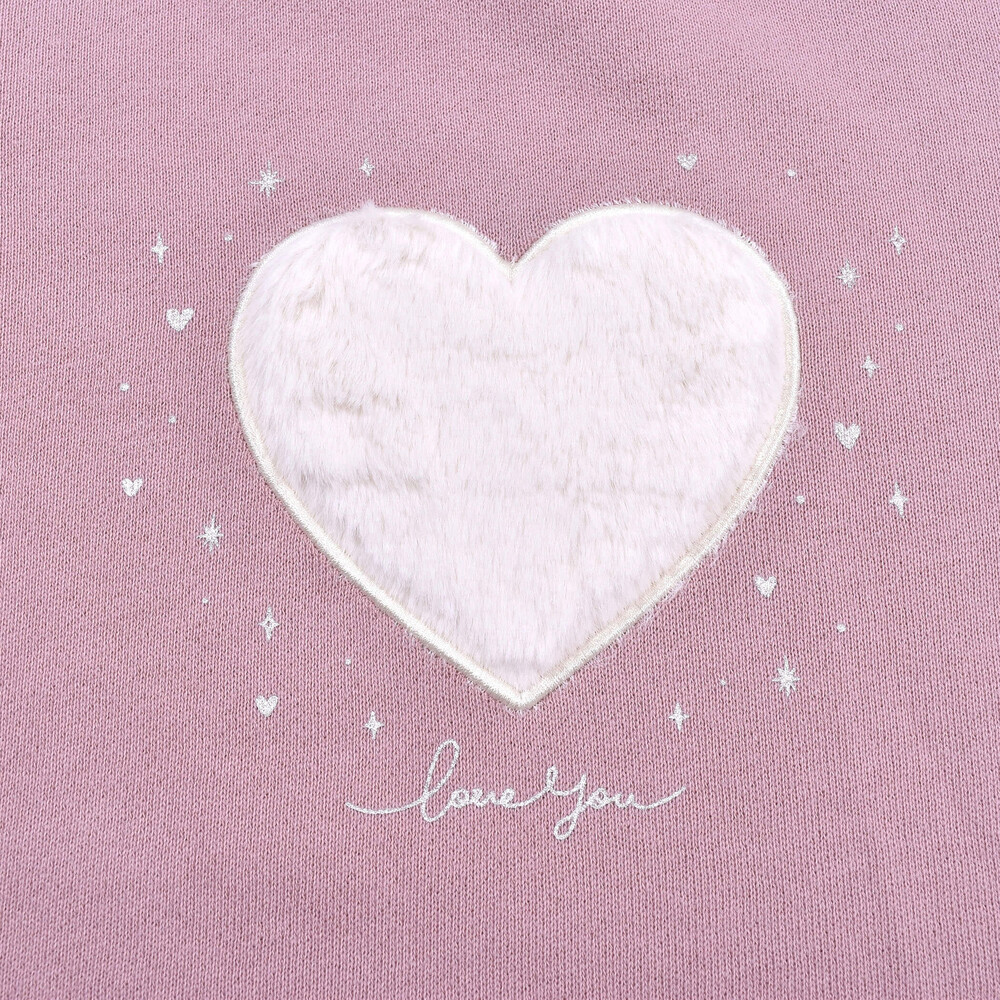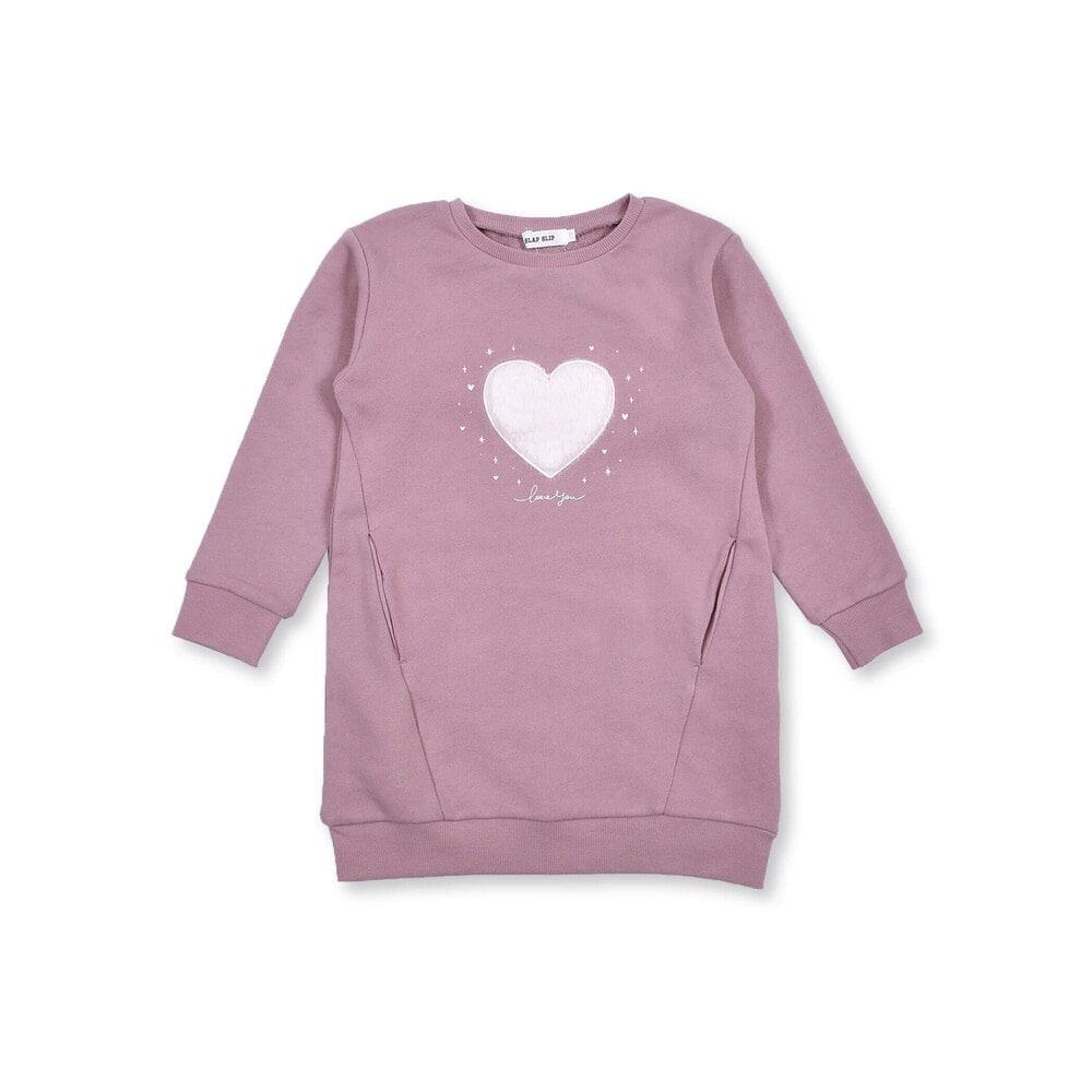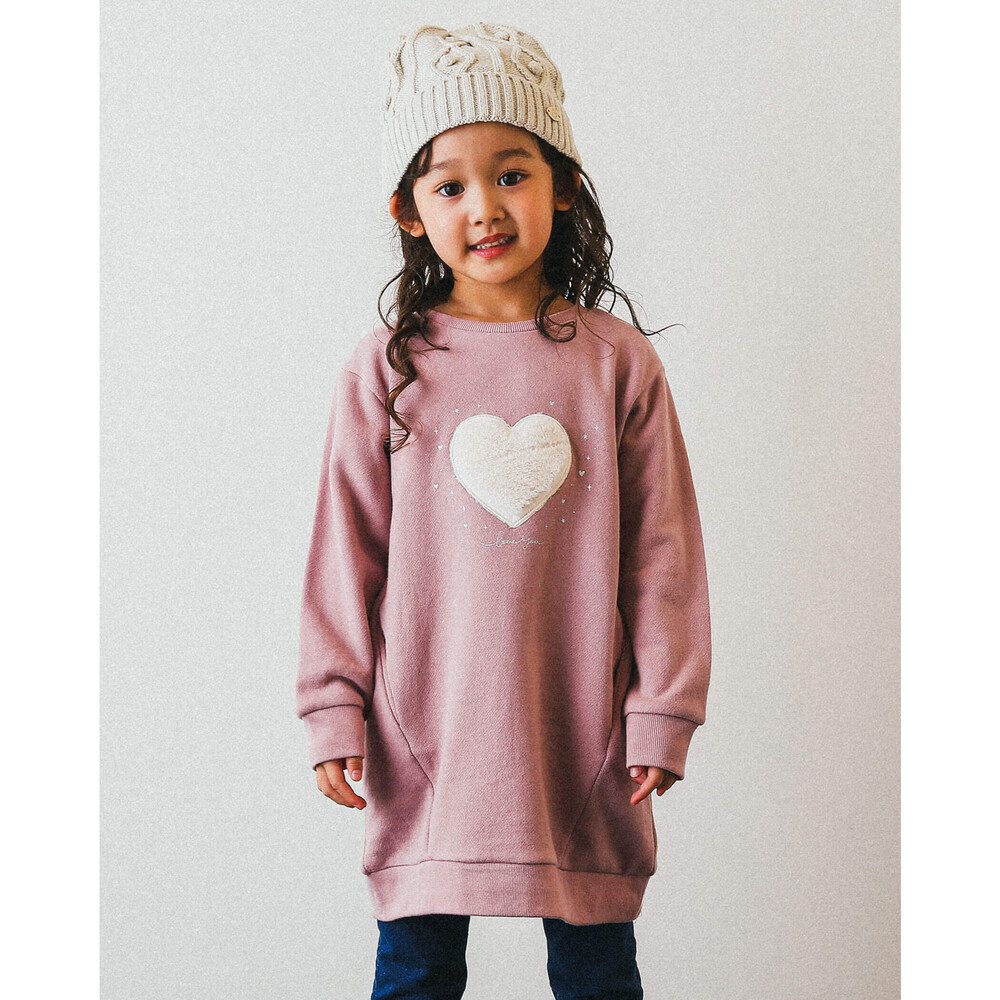 ファーでできたハートのパッチがかわいい、裏毛ワンピース。