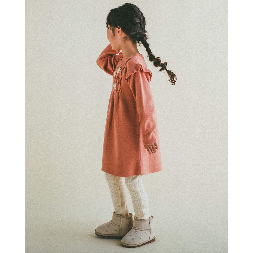 ニット素材でスモッキングを表現した女の子用ワンピース。