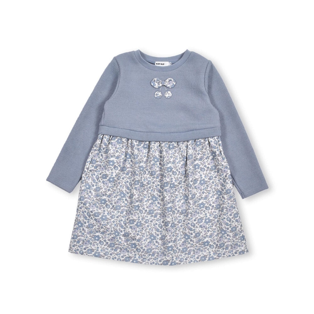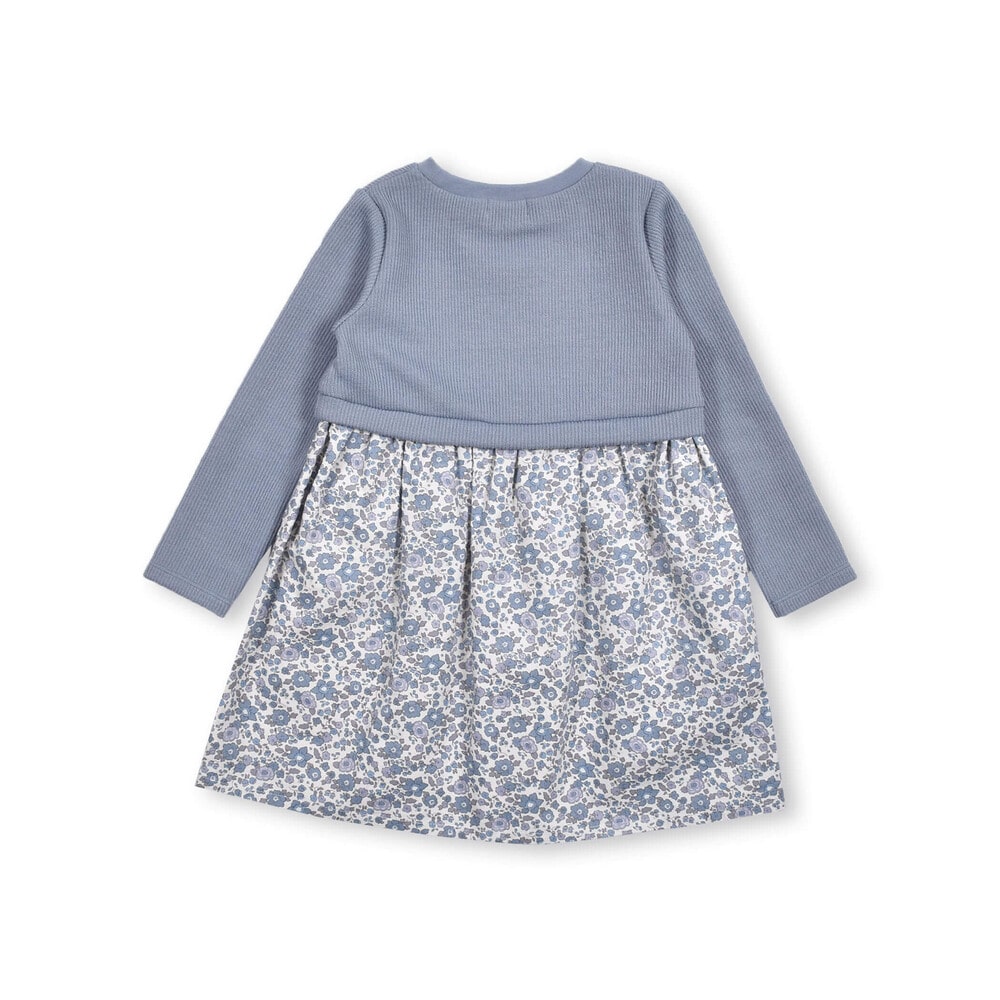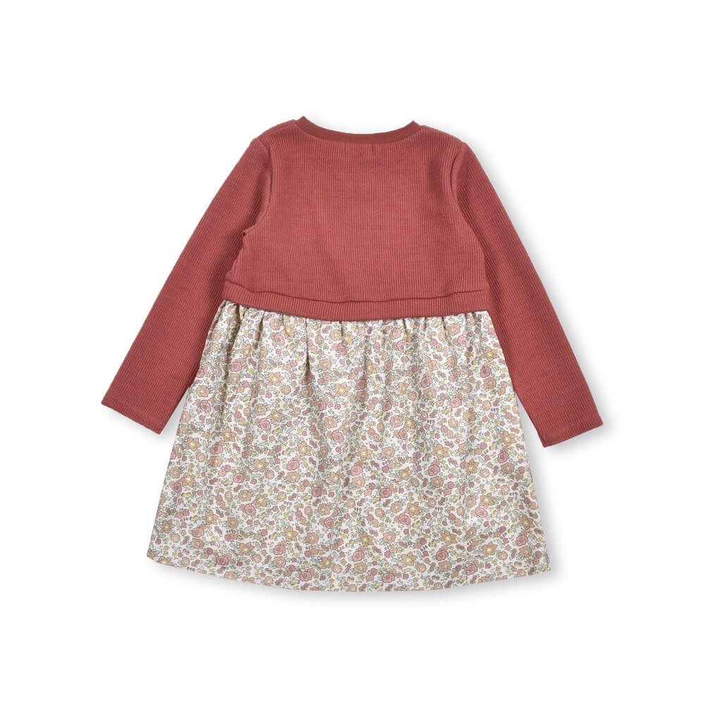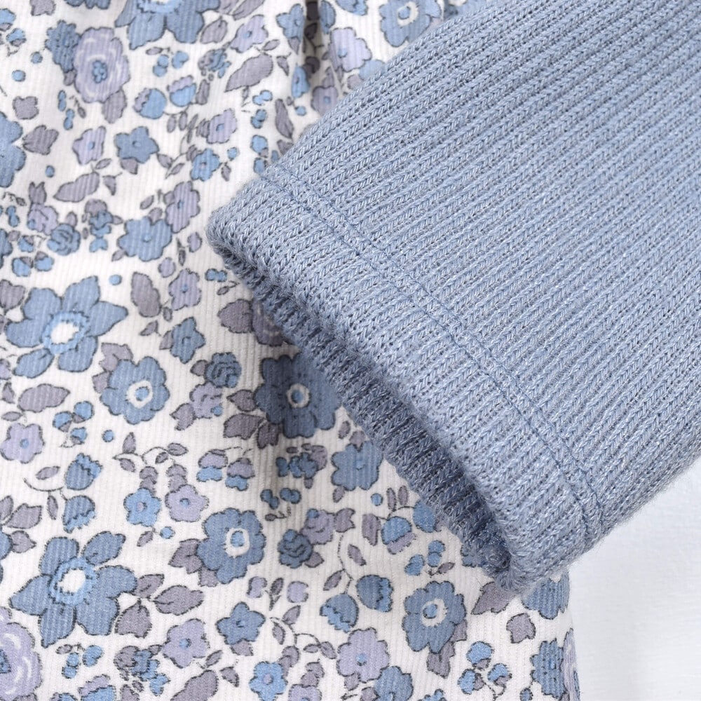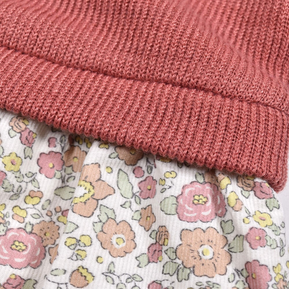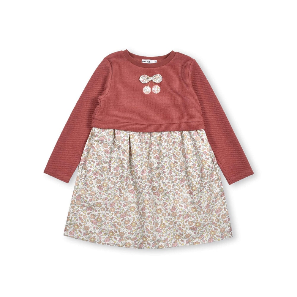 【 お揃い 】 花柄 コールテン × 無地 ニット ドッキング ワンピース (80~130cm)