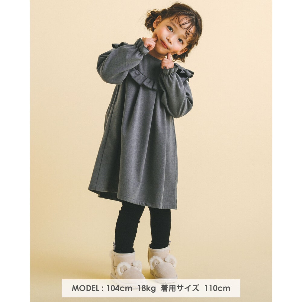 少し起毛した秋冬らしい布帛素材を使用した長袖ワンピース。