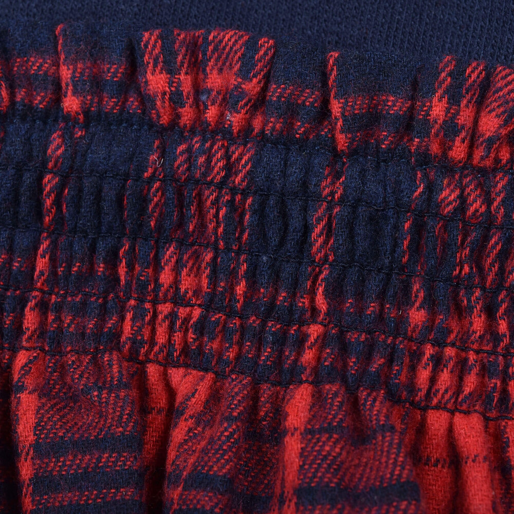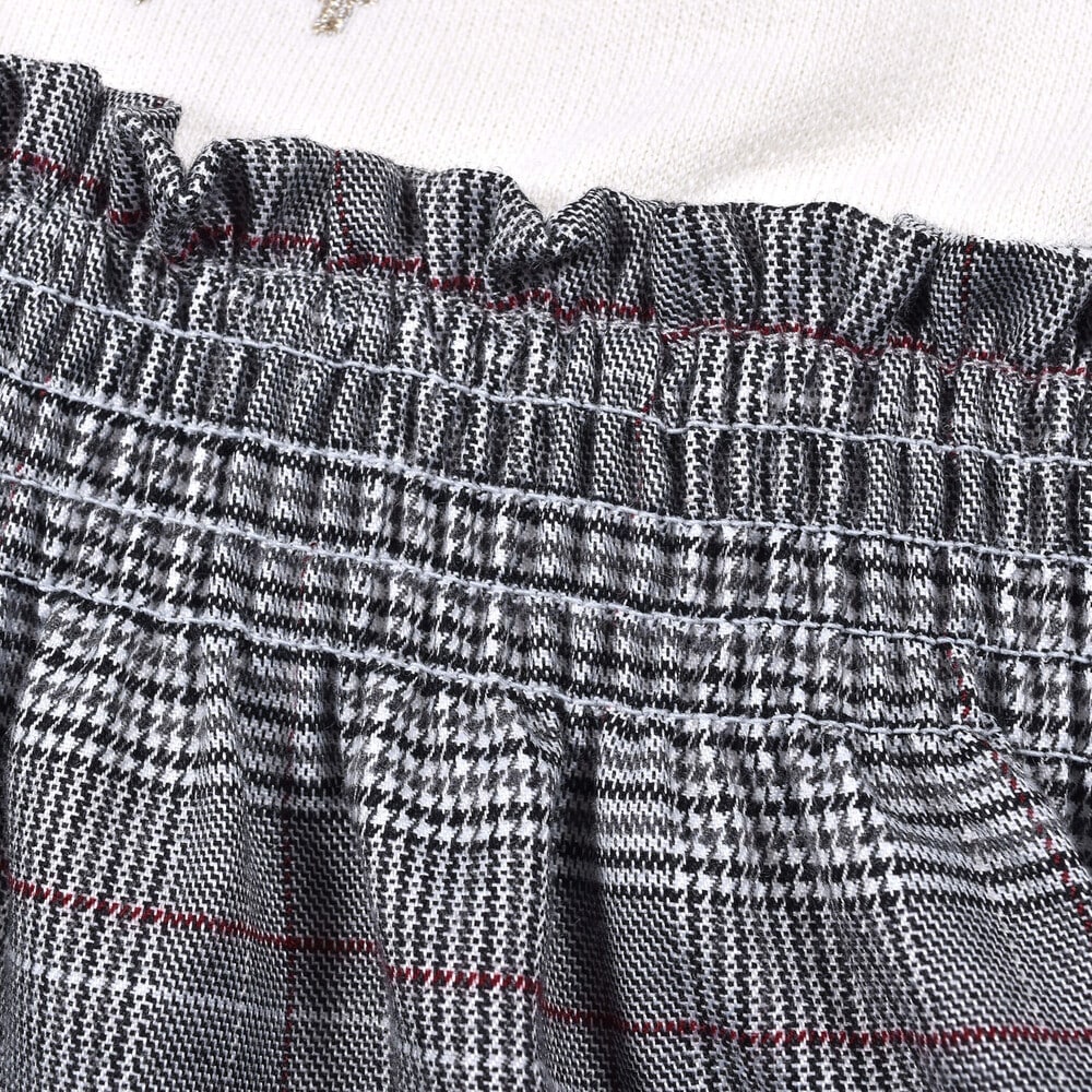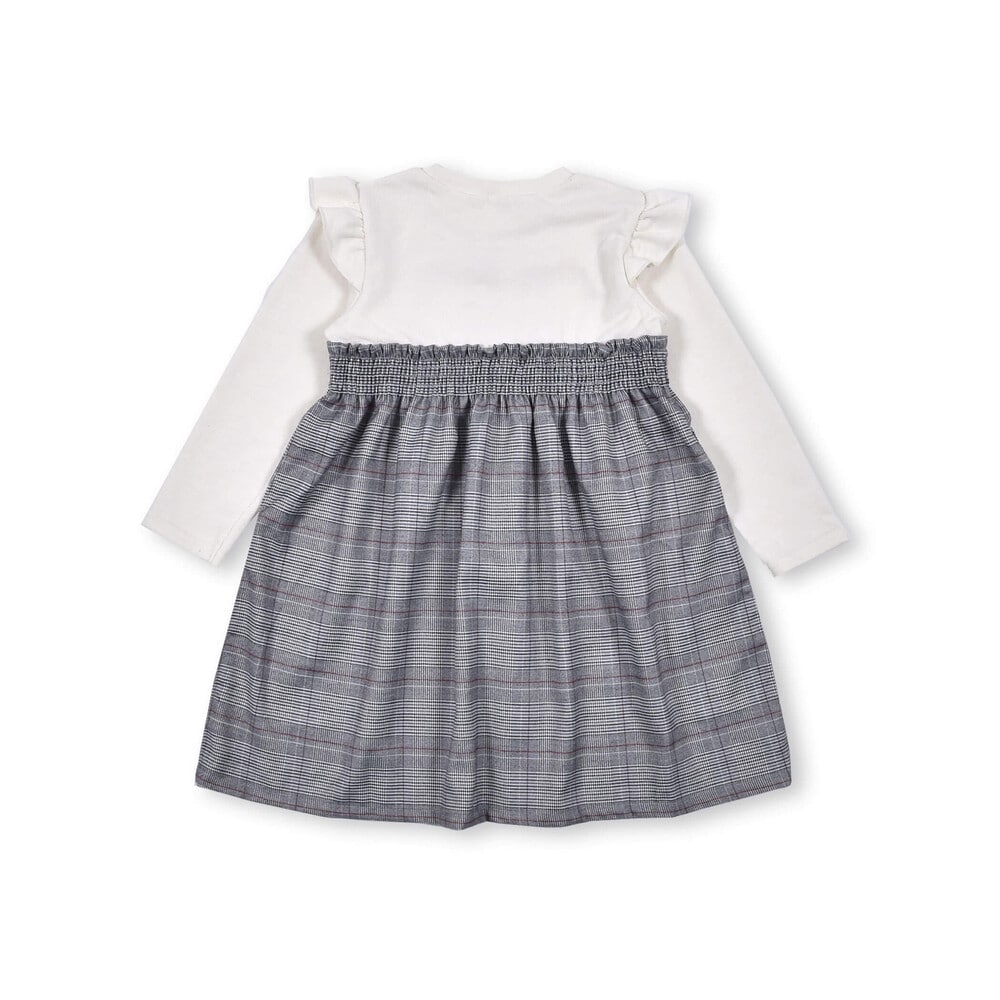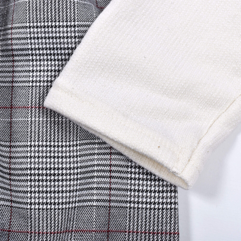 トレーナーに秋冬らしいチェック生地をドッキングした長袖ワンピース。