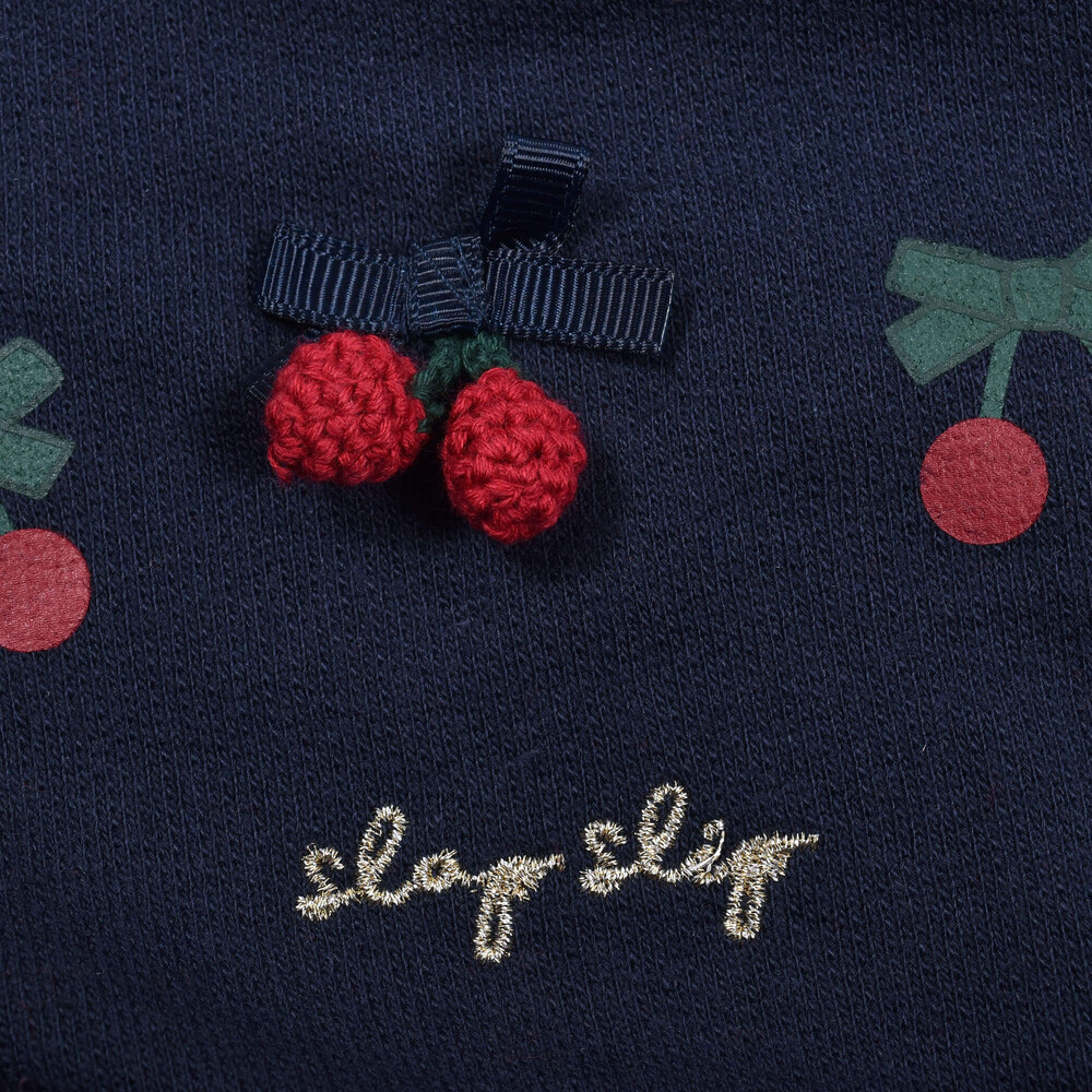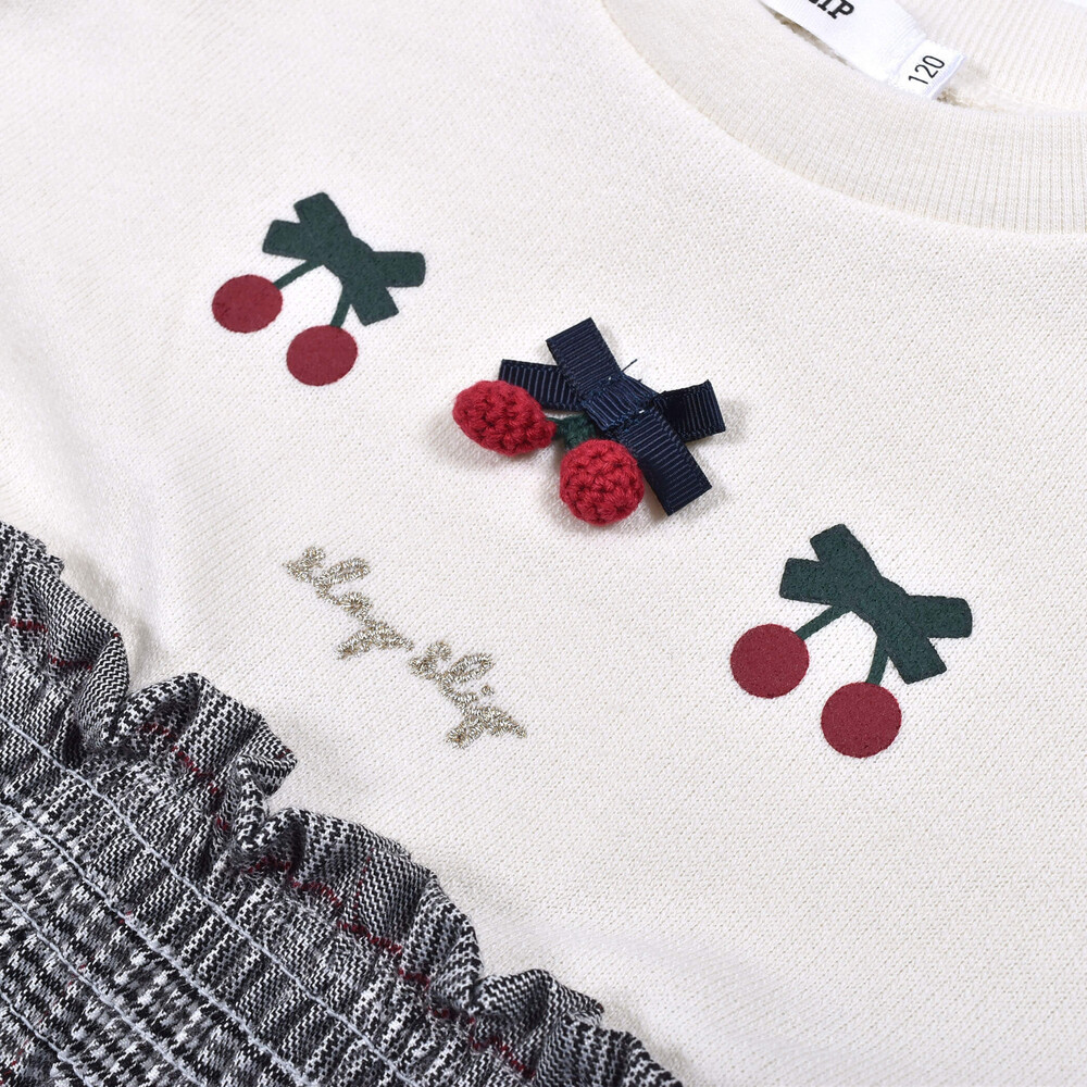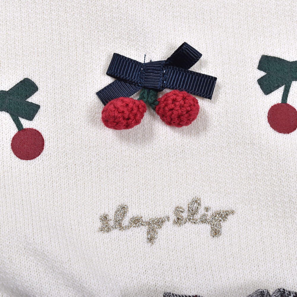 フロントにあしらったかぎ針編みのチェリーモチーフがかわいい♪