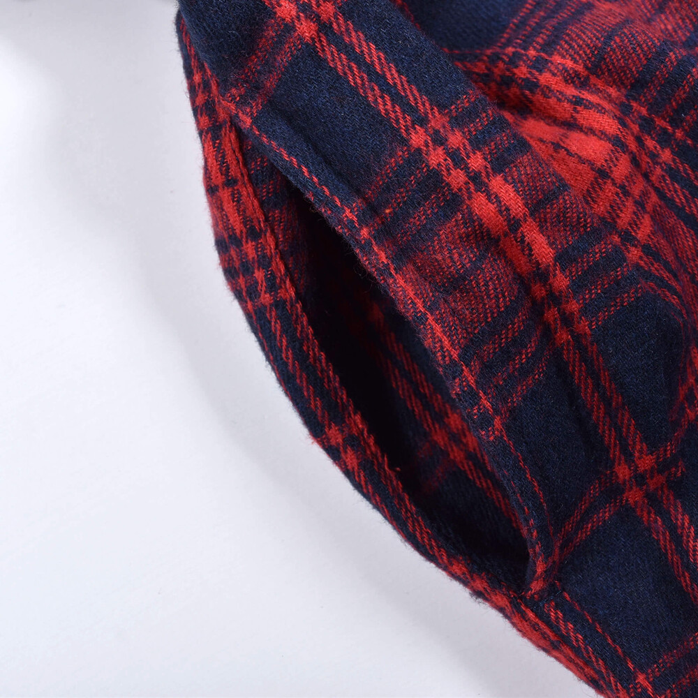 レッド系チェックのネイビーと、ブラック系チェックのオフホワイトの2色展開です。