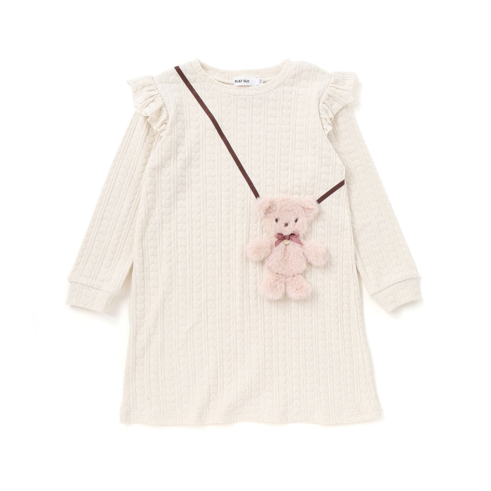 肩にあしらったフリルがキュートな女の子用長袖ワンピース。