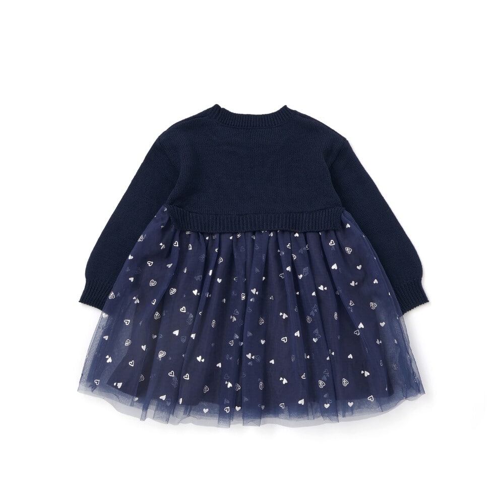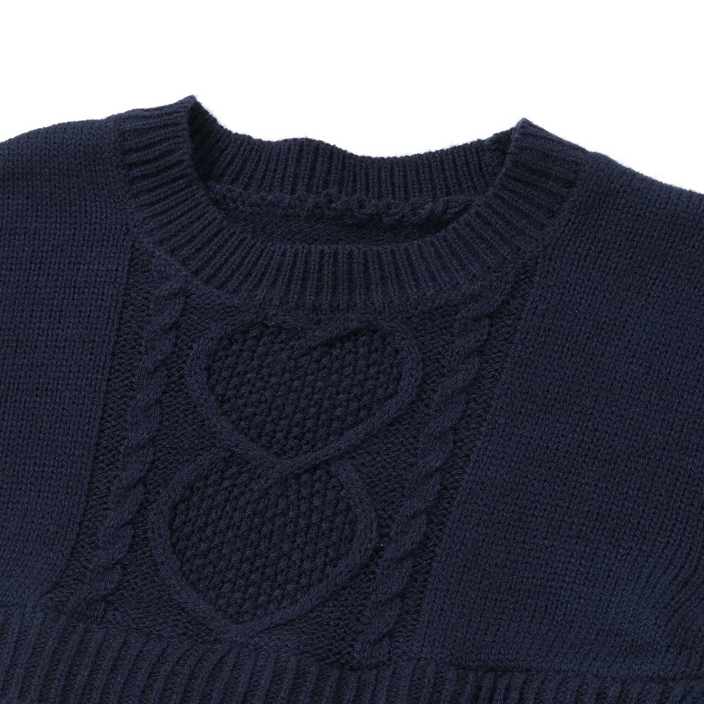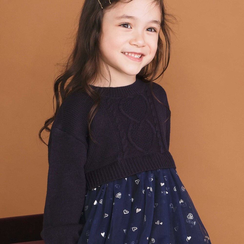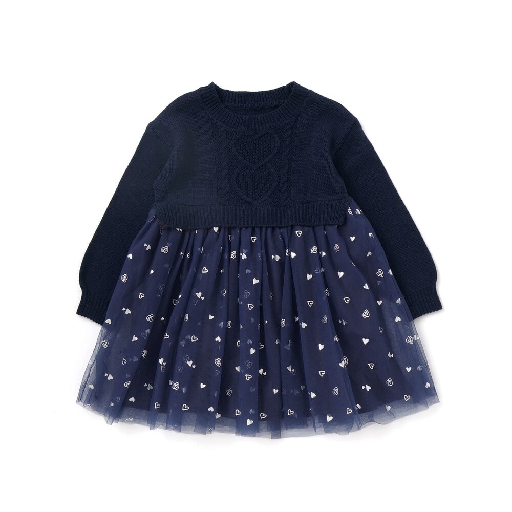 上身頃はハート柄の編地を施したニット素材で、優しい風合いと可愛らしさを両立。