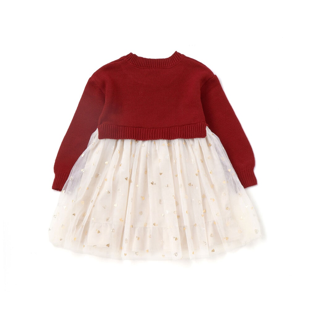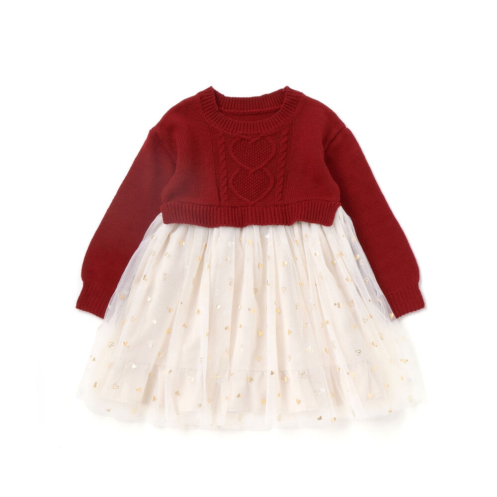 ハートモチーフがたっぷり詰まった、女の子らしさ満点のニット切り替えワンピース。