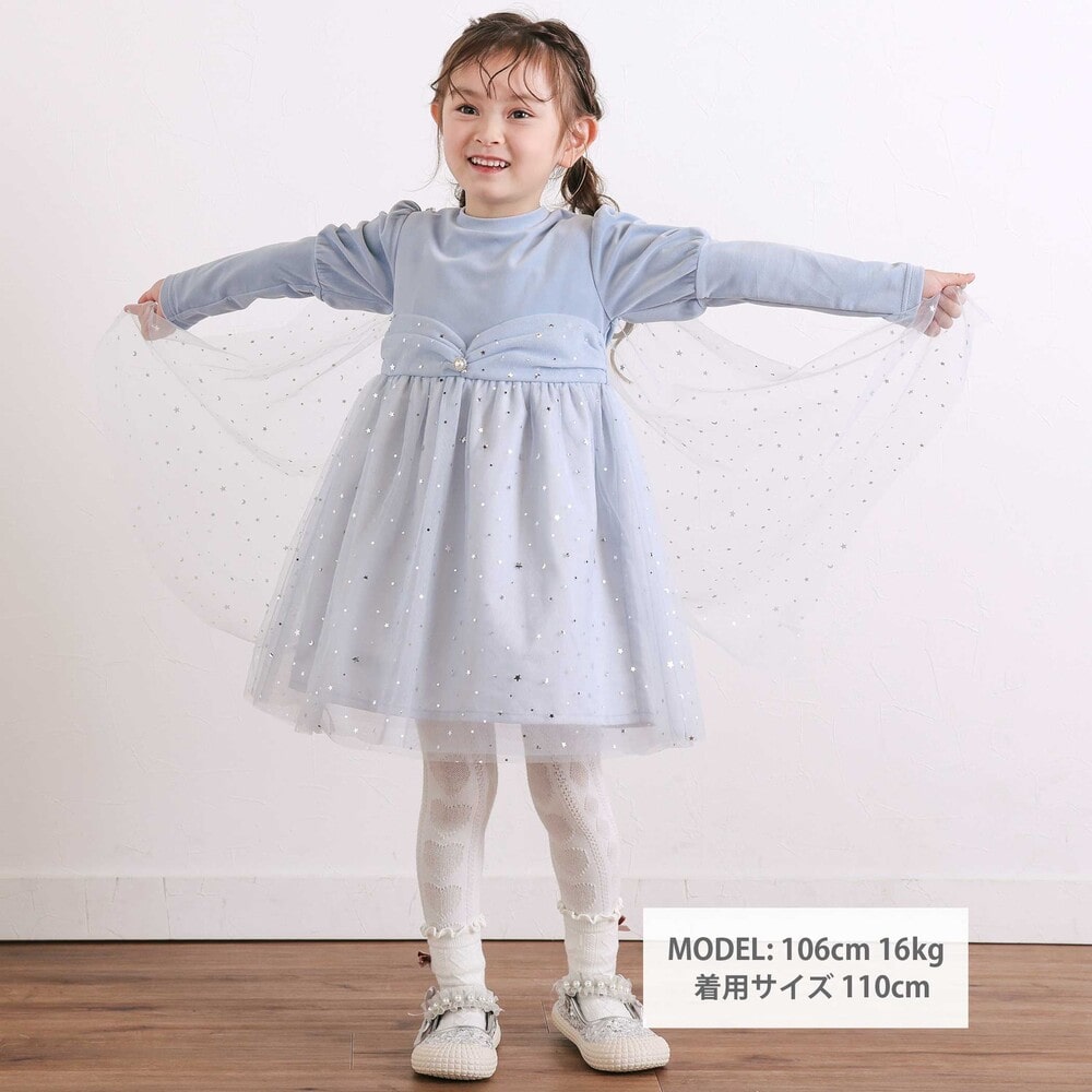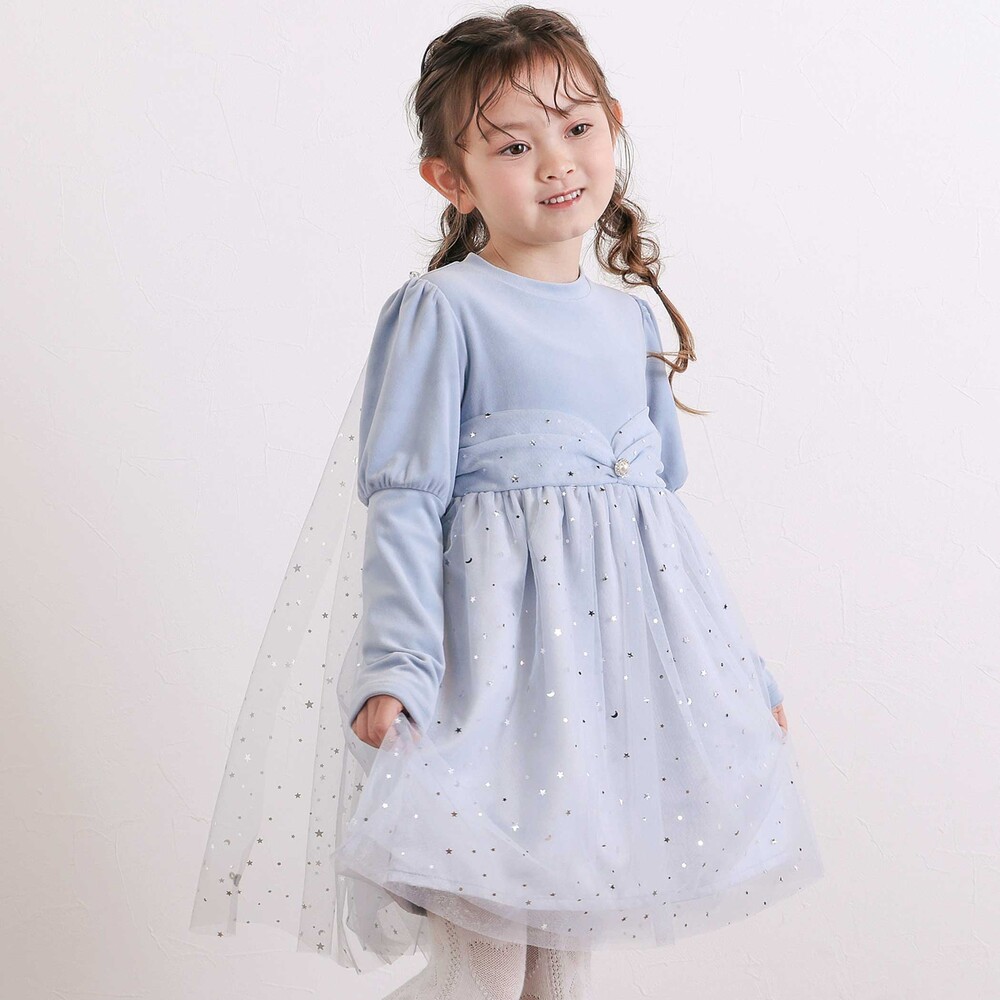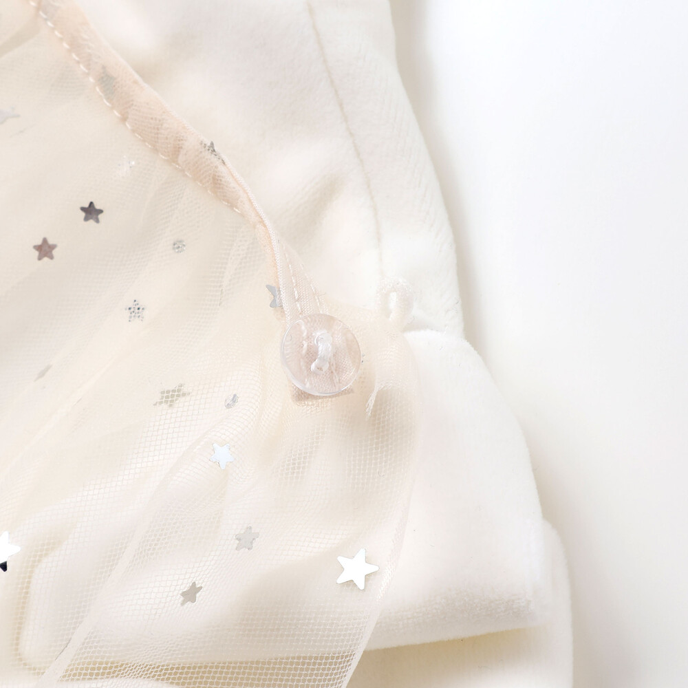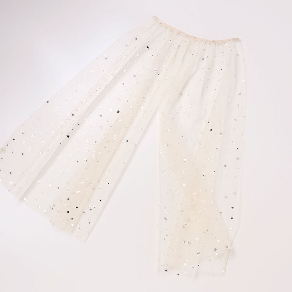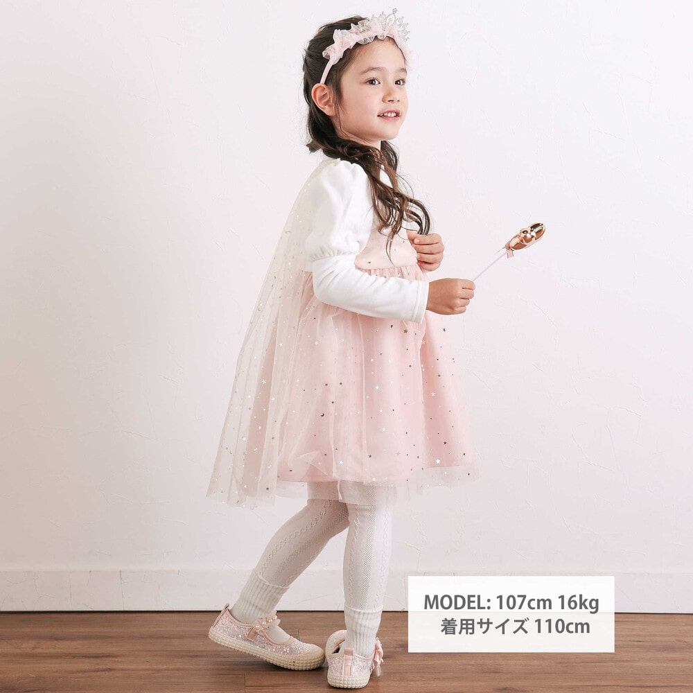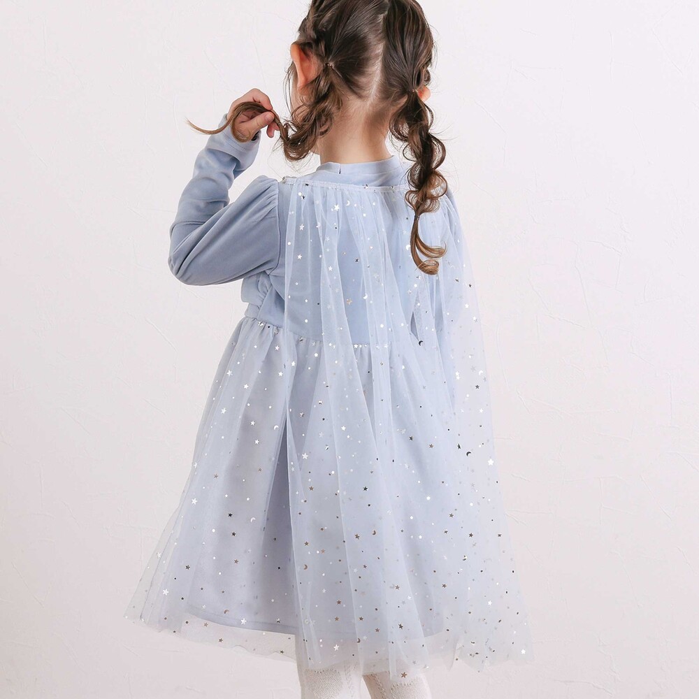 星柄チュールのマントがセットになっており、気分に合わせて取り外しも可能。