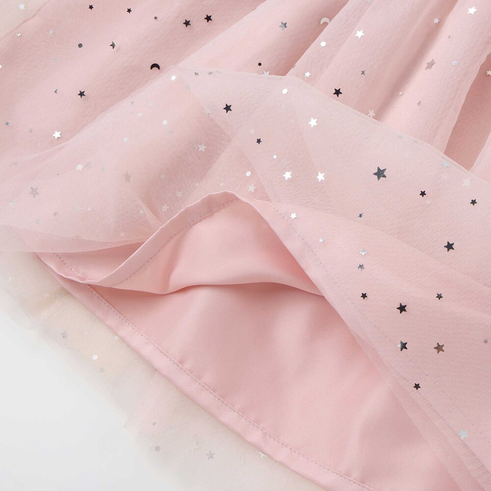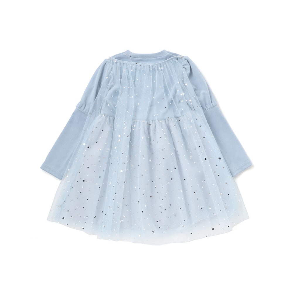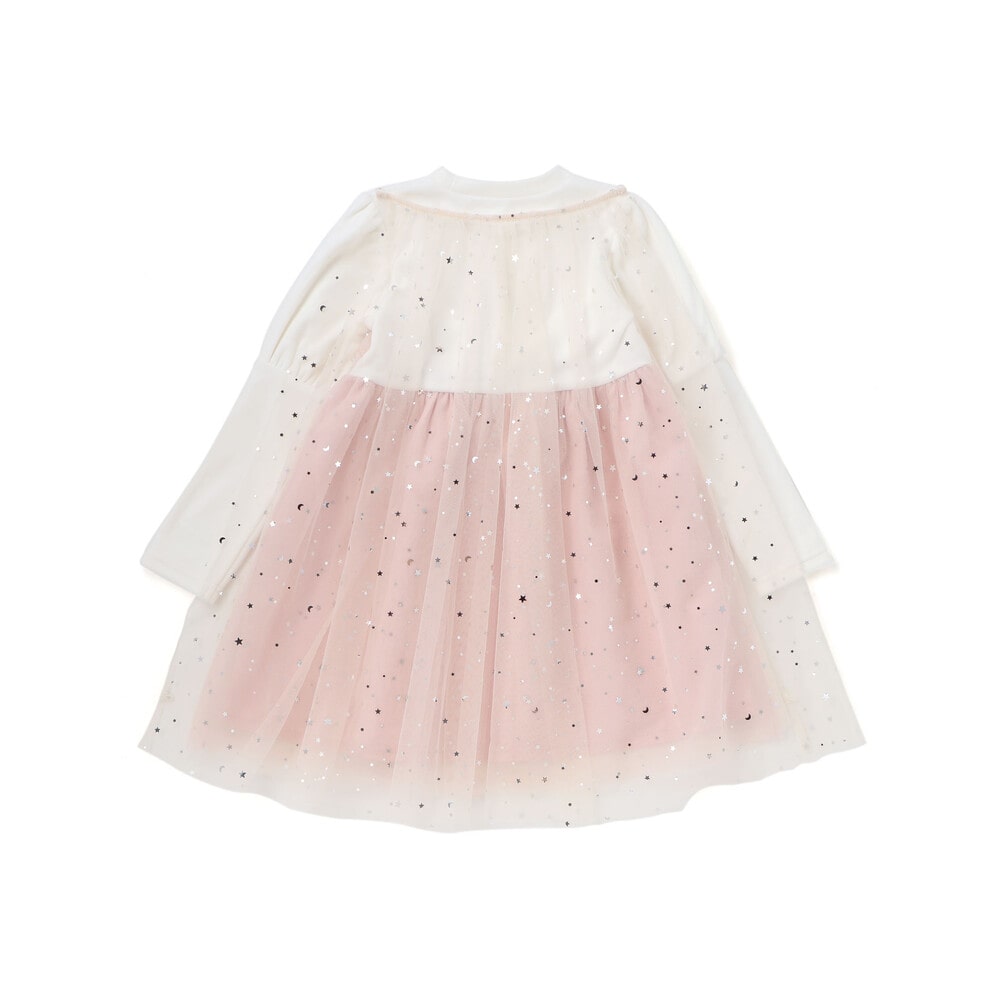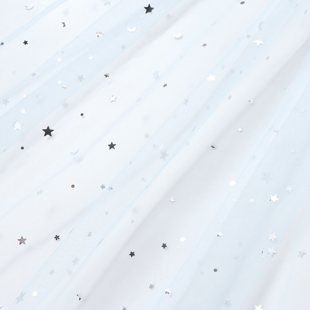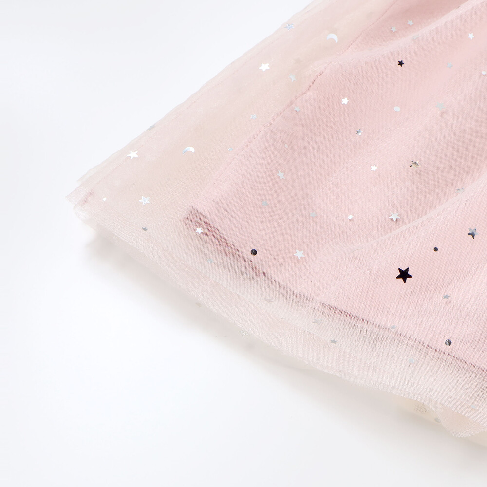 チュール部分は星柄と無地の2枚重ねで、動くたびにきらめく光をまとったみたい。