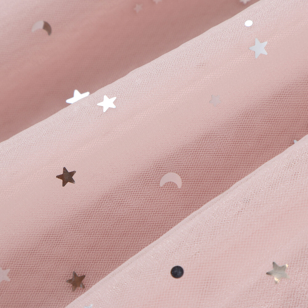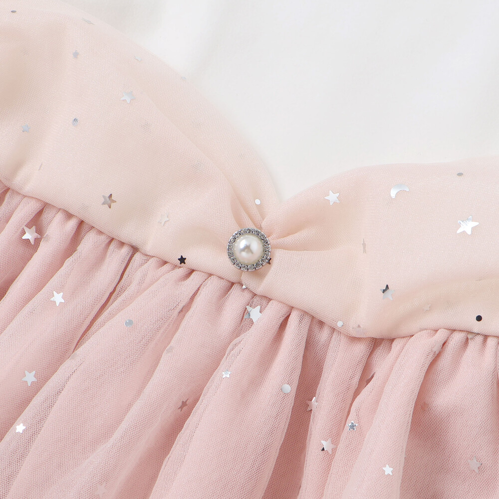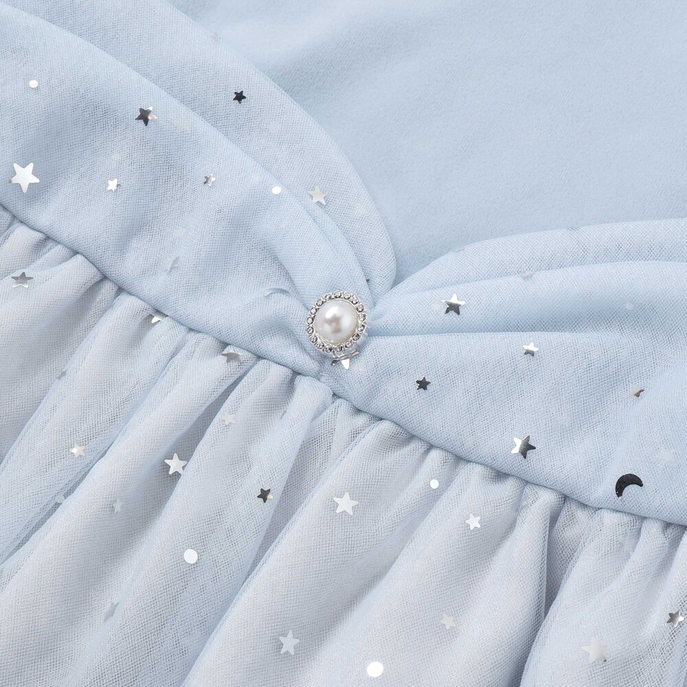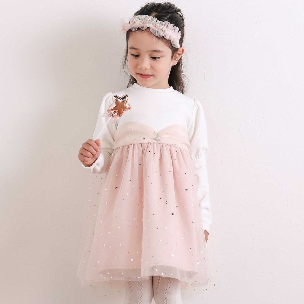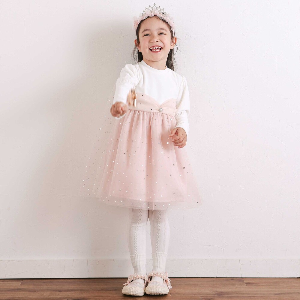 チュール部分は星柄と無地の2枚重ねで、動くたびにきらめく光をまとったみたい。