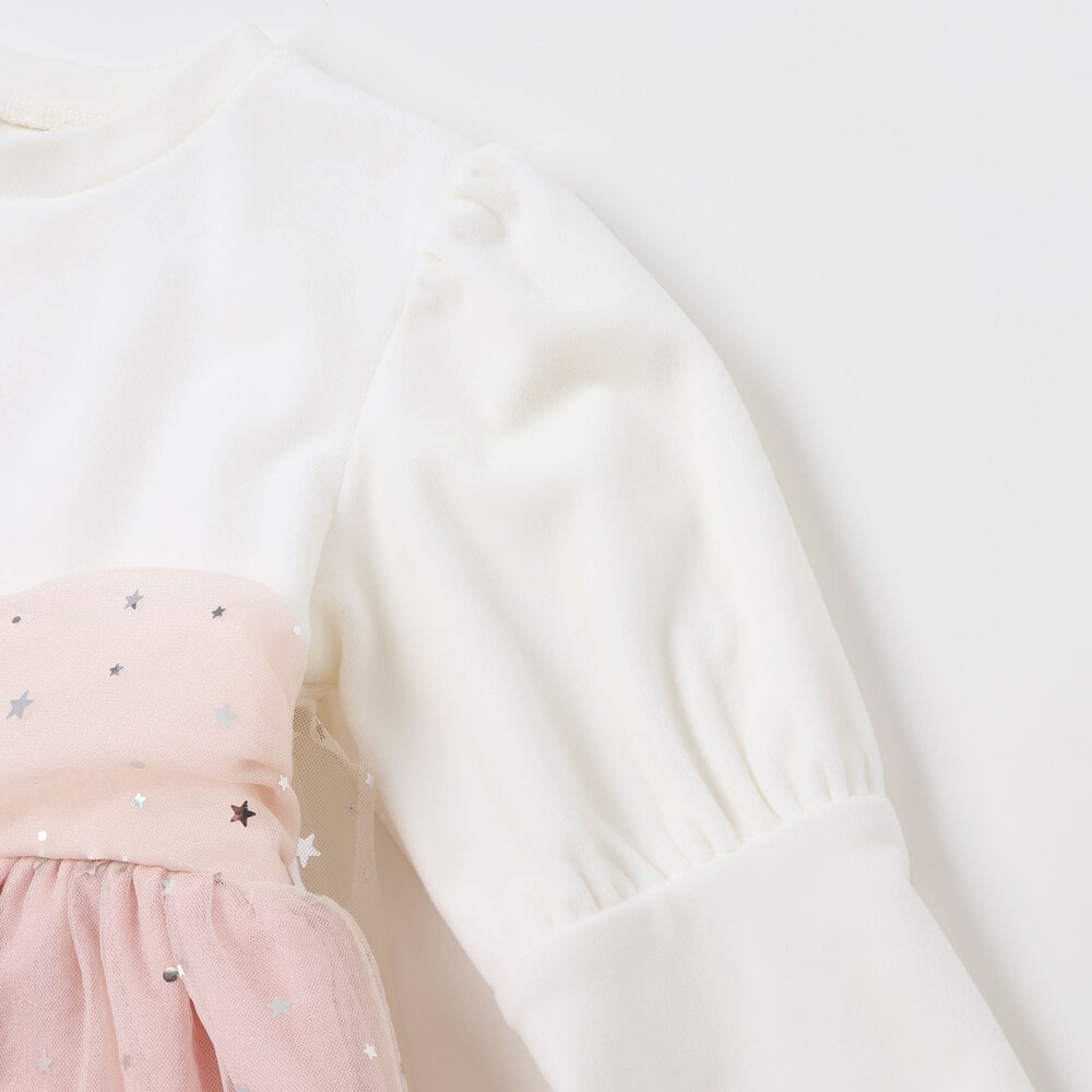 身生地はなめらかで上品なベロア素材を使用し、チュールとの切り替えでふんわり華やかな印象に。