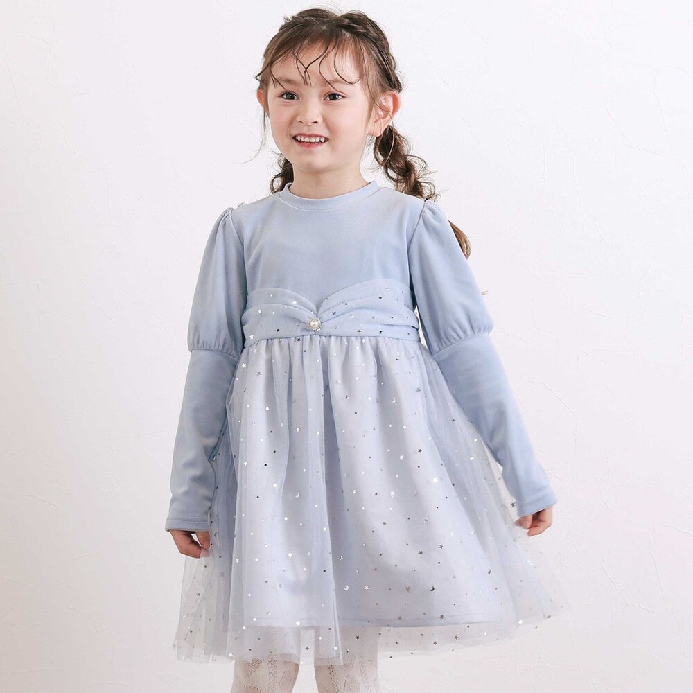 お星さまの世界から飛び出してきたような、キラキラかわいいベロアワンピース。