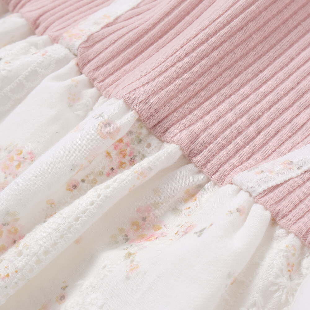 ピンク×オフホワイト系:女の子にぴったりなピンクに花柄のスカートがとってもフェミニン