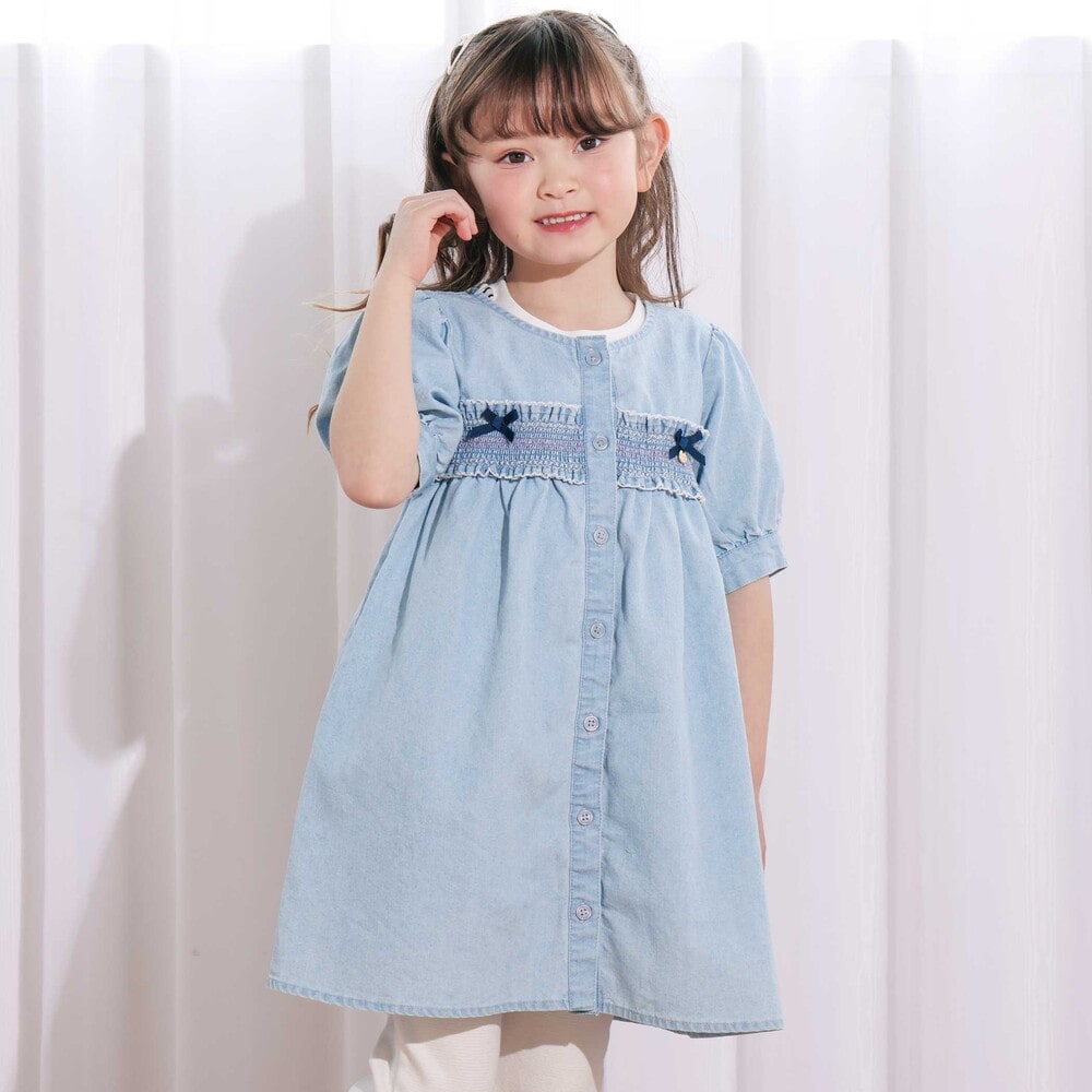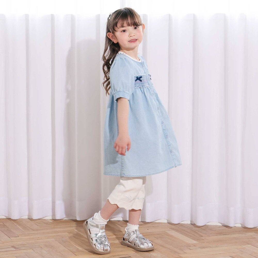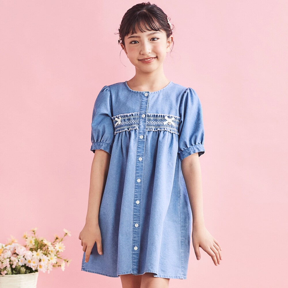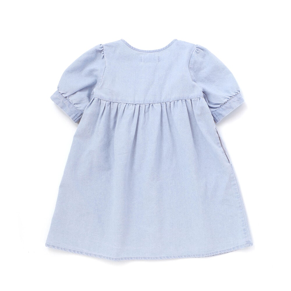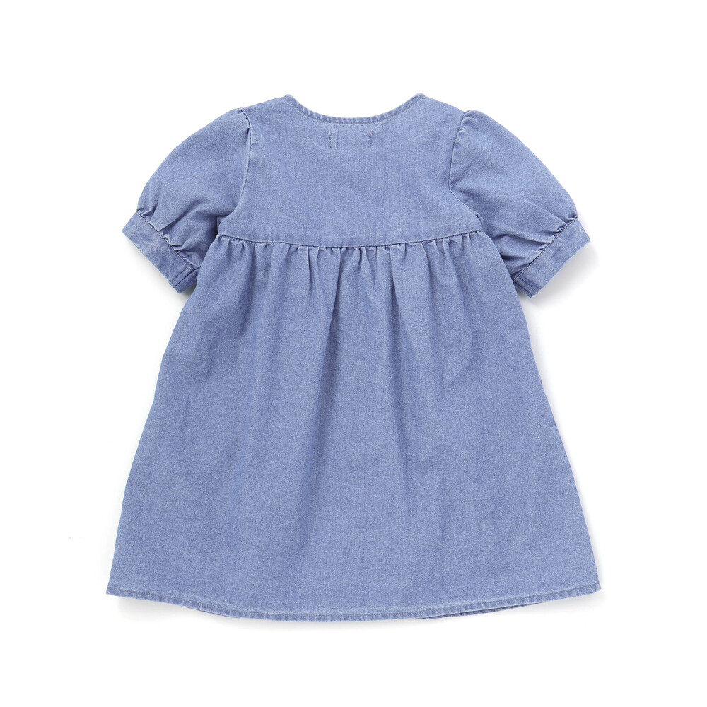 軽やかなライトオンスデニムを使い、やさしい雰囲気に仕上げた女の子用ワンピース。