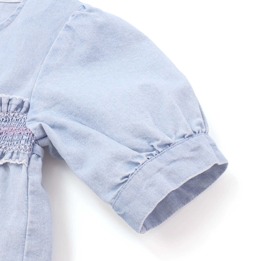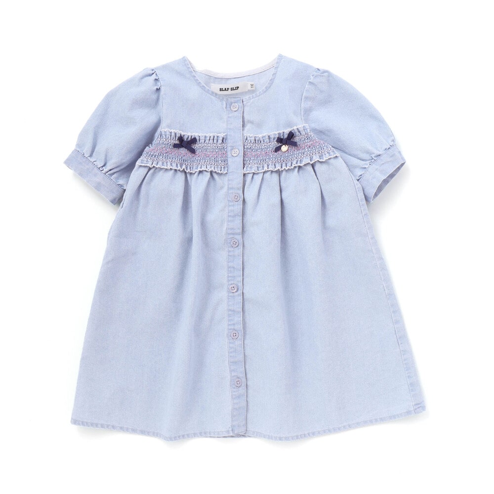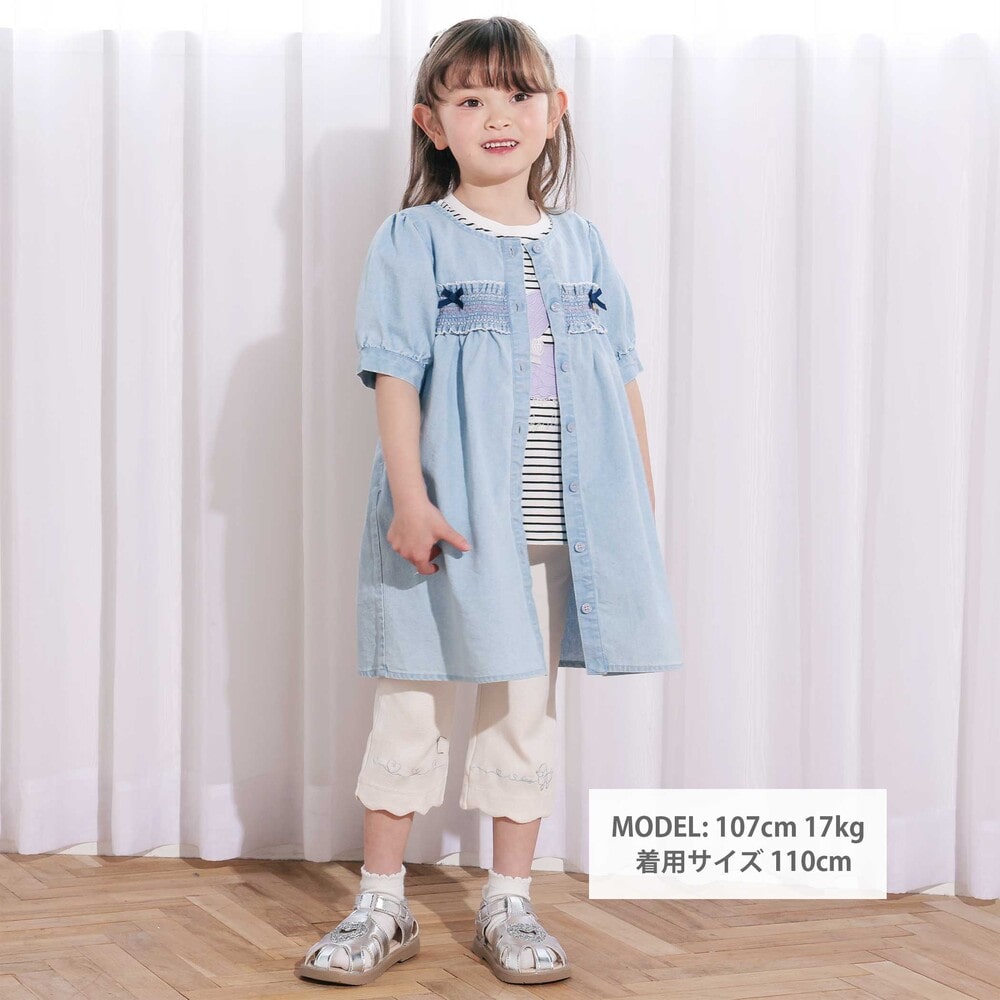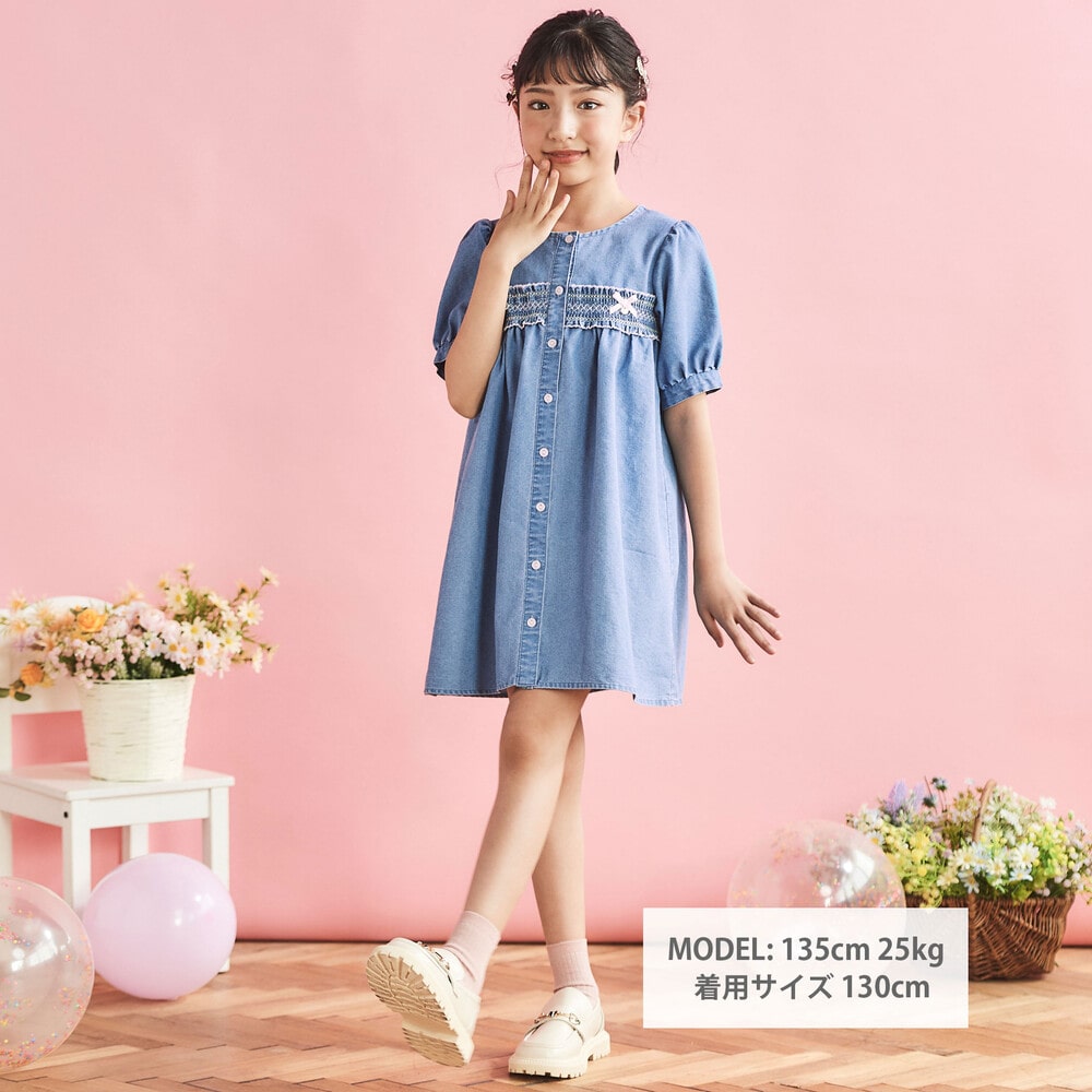 軽やかなライトオンスデニムを使い、やさしい雰囲気に仕上げた女の子用ワンピース。