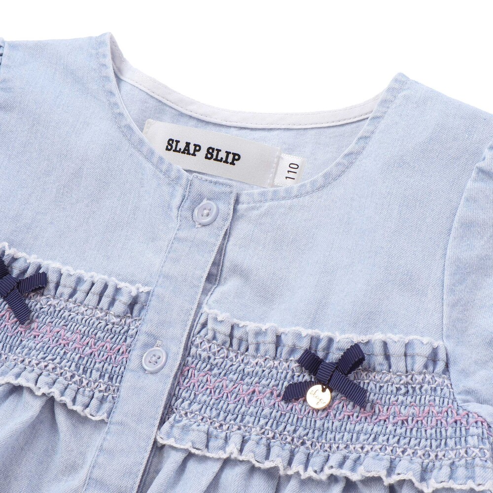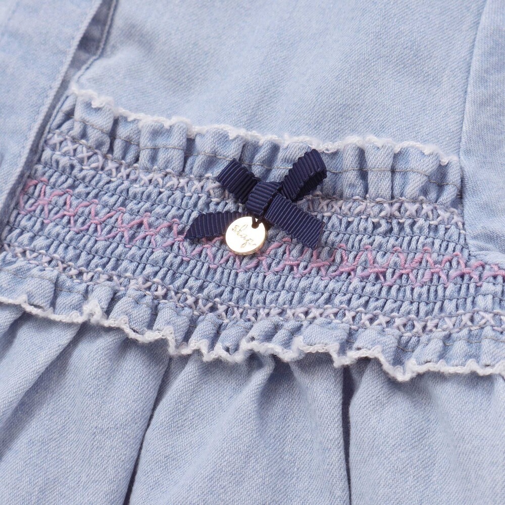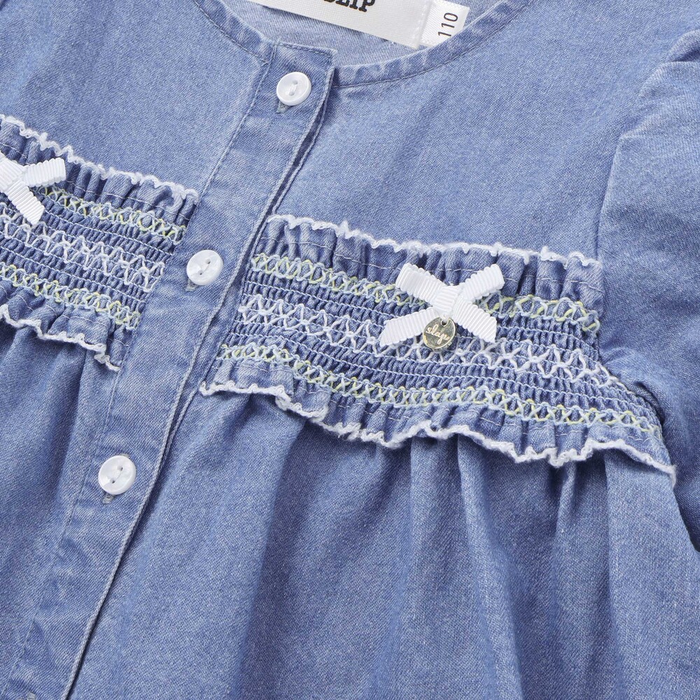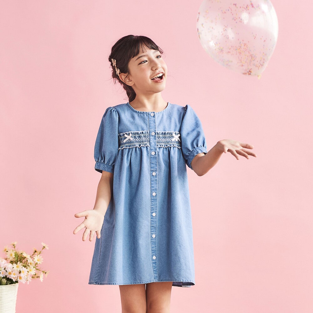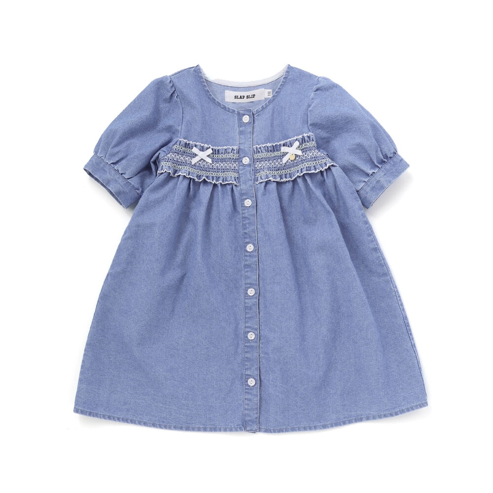 軽やかなライトオンスデニムを使い、やさしい雰囲気に仕上げた女の子用ワンピース。
