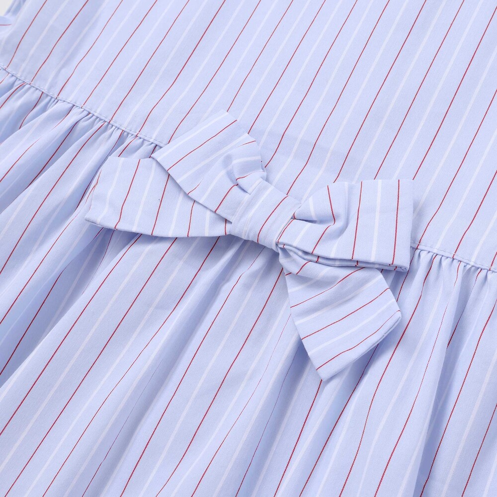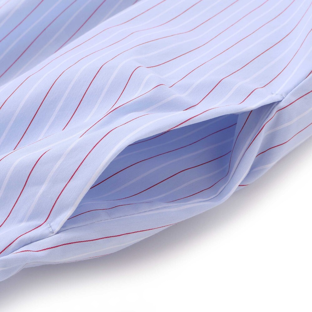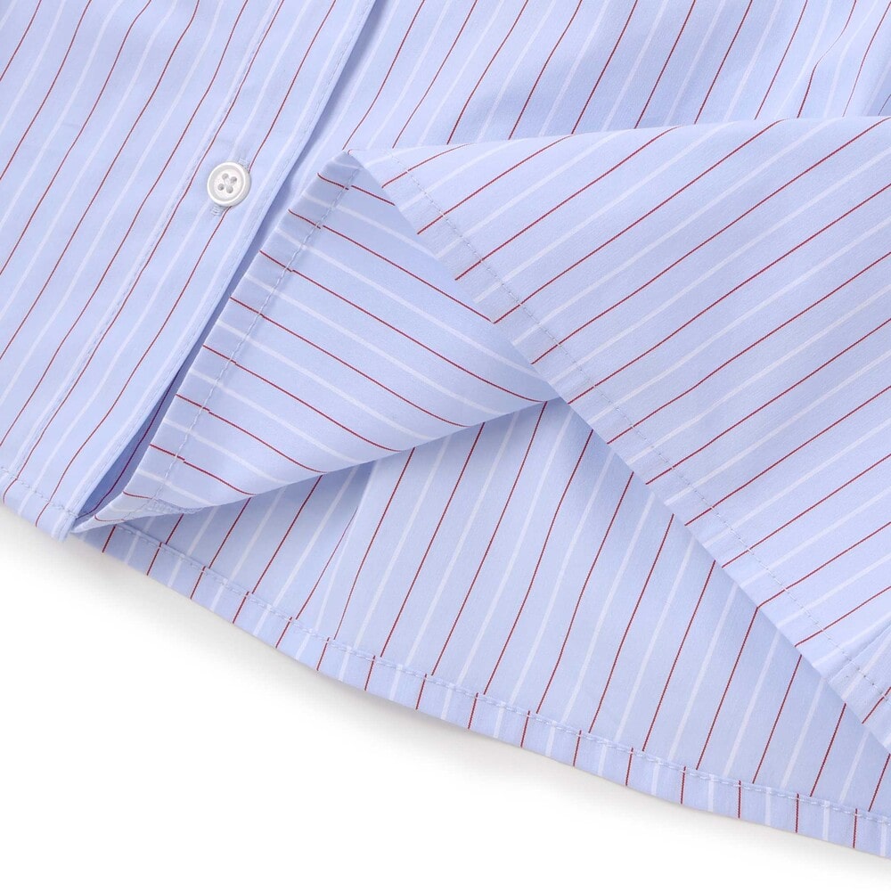 ブルー系は爽やかなストライプ柄の綿100%生地は肌あたりがやさしく、通気性にも優れているため、長時間着ても快適。