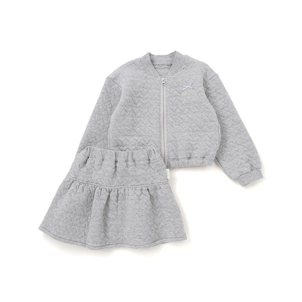 | 素材 | 【ジャケット】(本体)綿78% ポリエステル22% リブ:綿95% ポリウレタン5% 【スカート】(本体)綿78% ポリエステル22% 部分使い:綿100% |