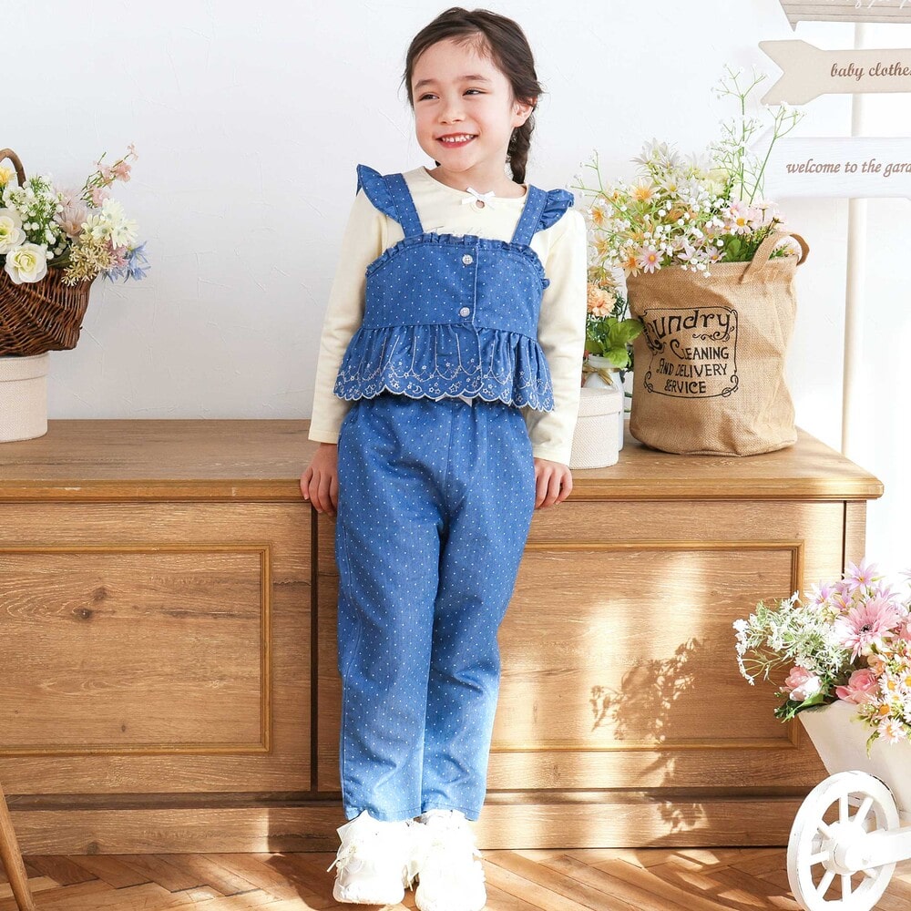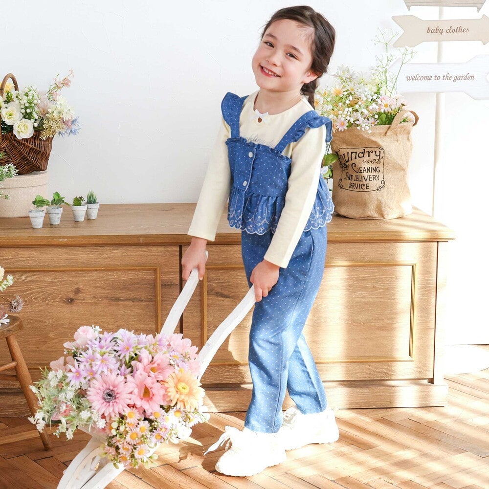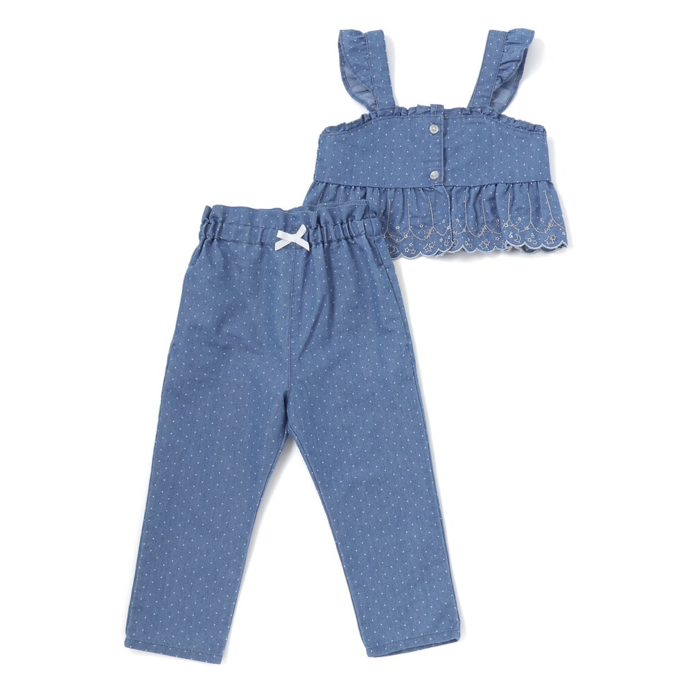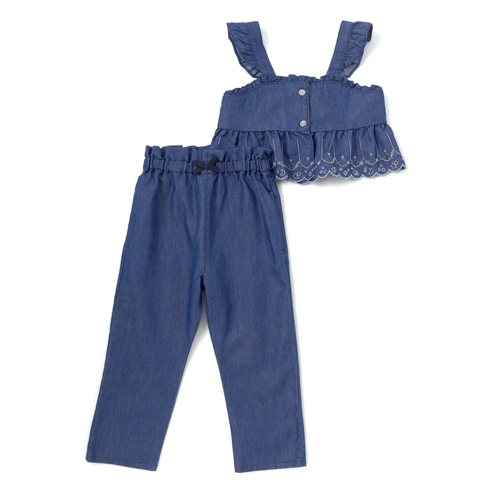 ライトオンスデニムを使用した、女の子らしい可愛さがぎゅっと詰まったセットアップ。