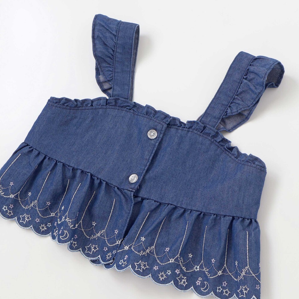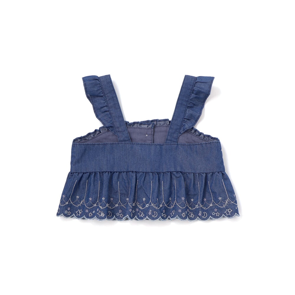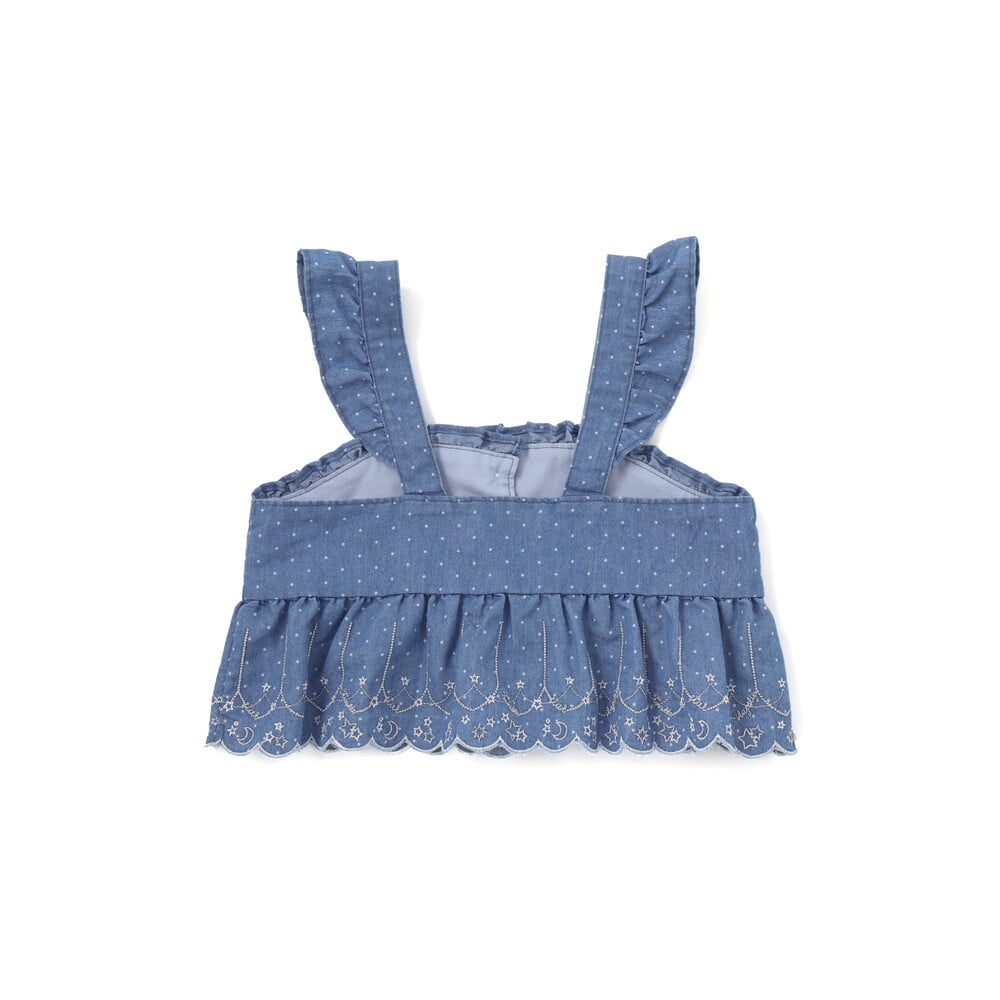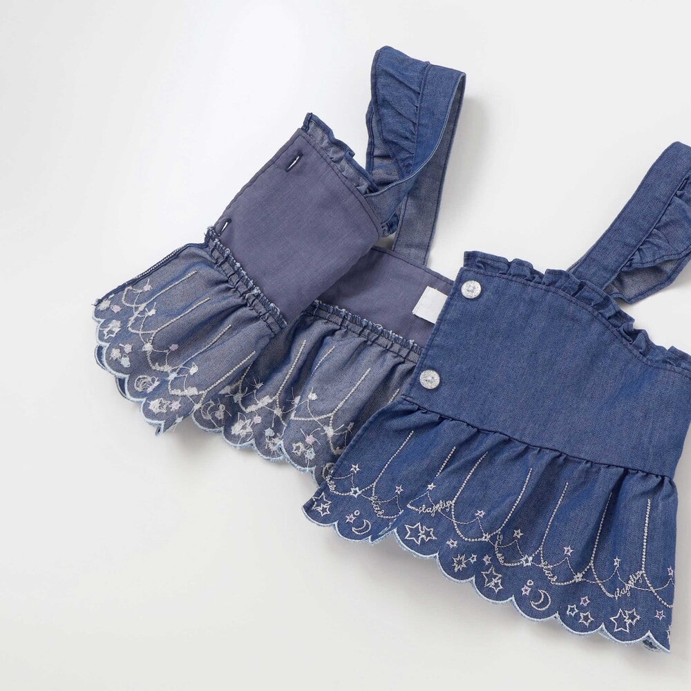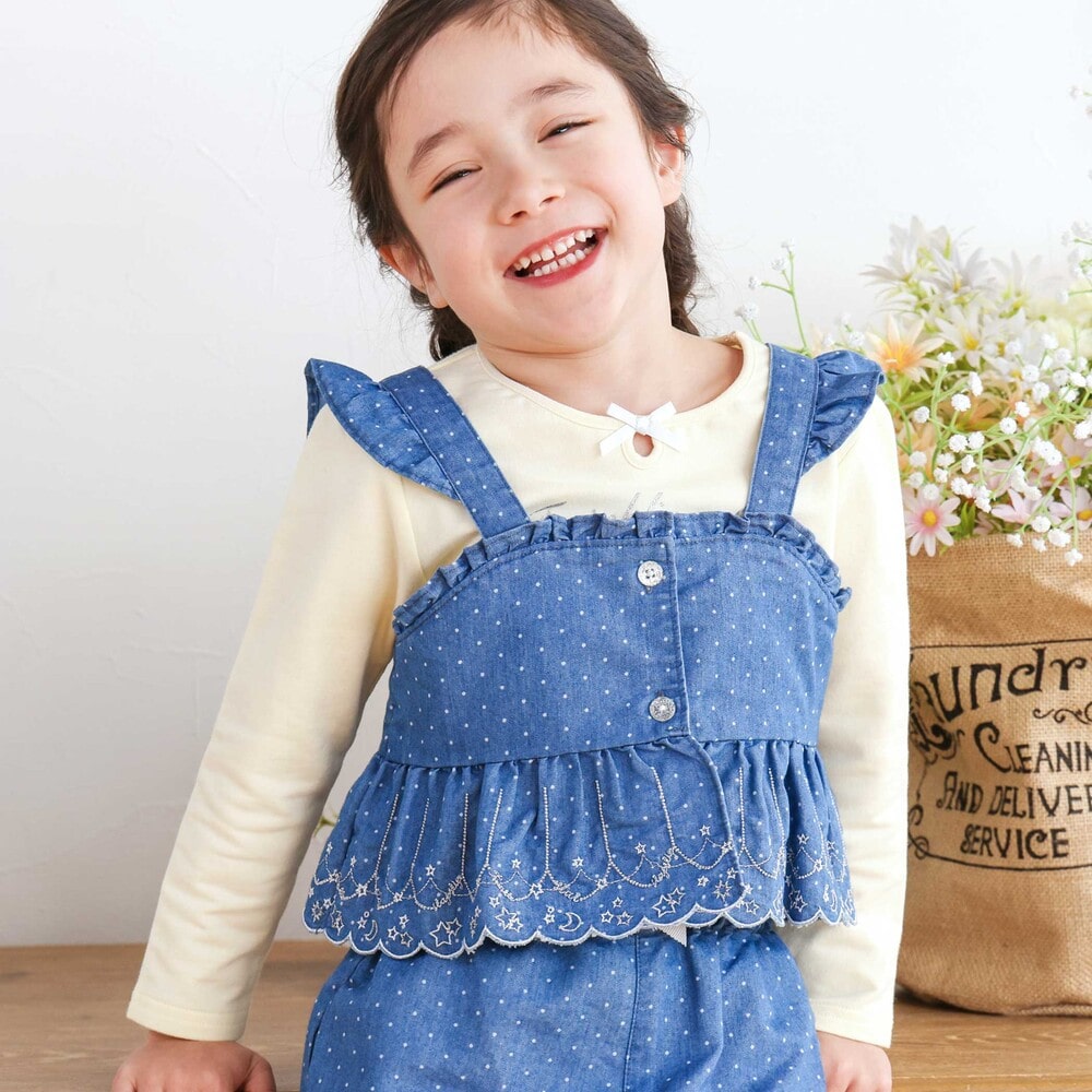 ライトオンスデニムを使用した、女の子らしい可愛さがぎゅっと詰まったセットアップ。