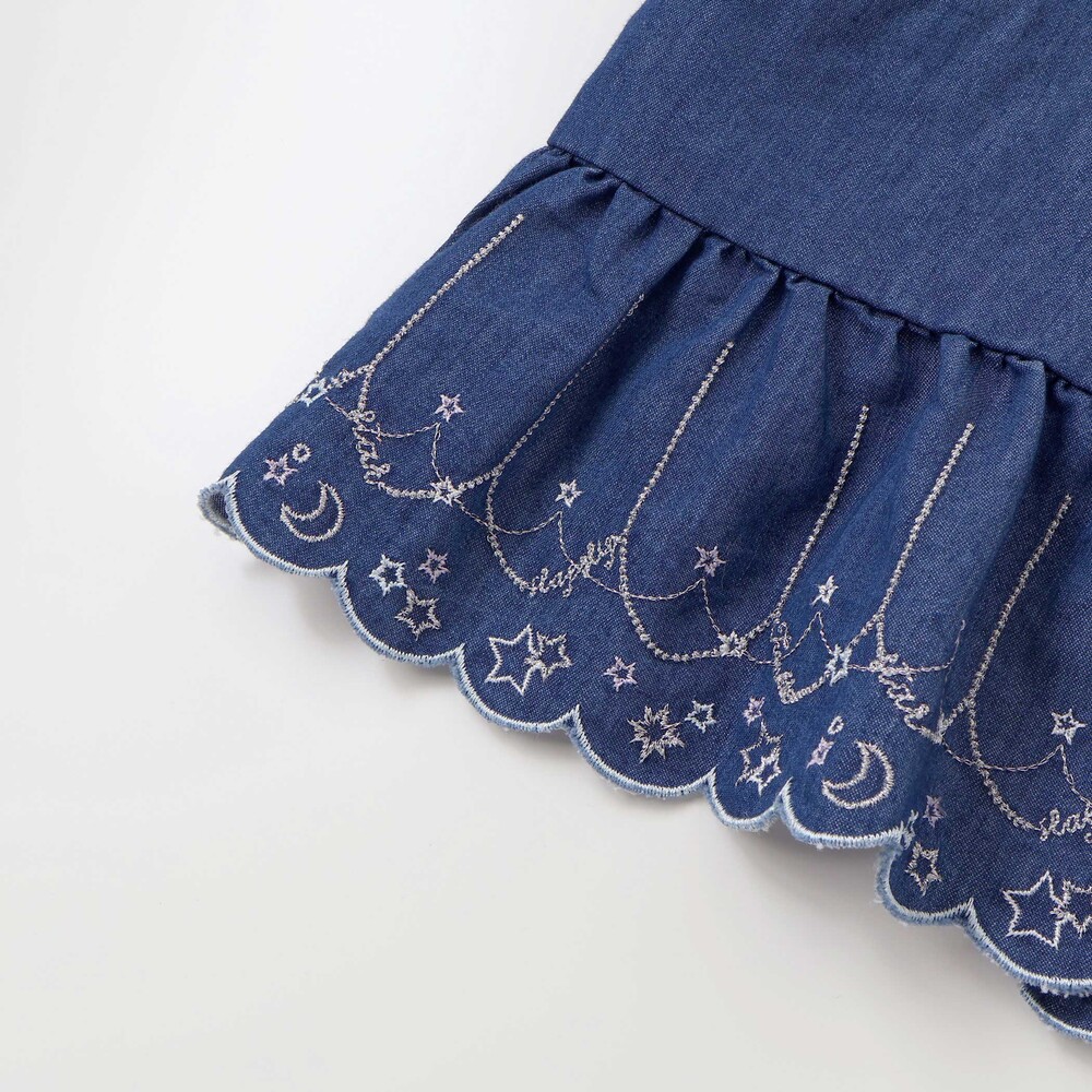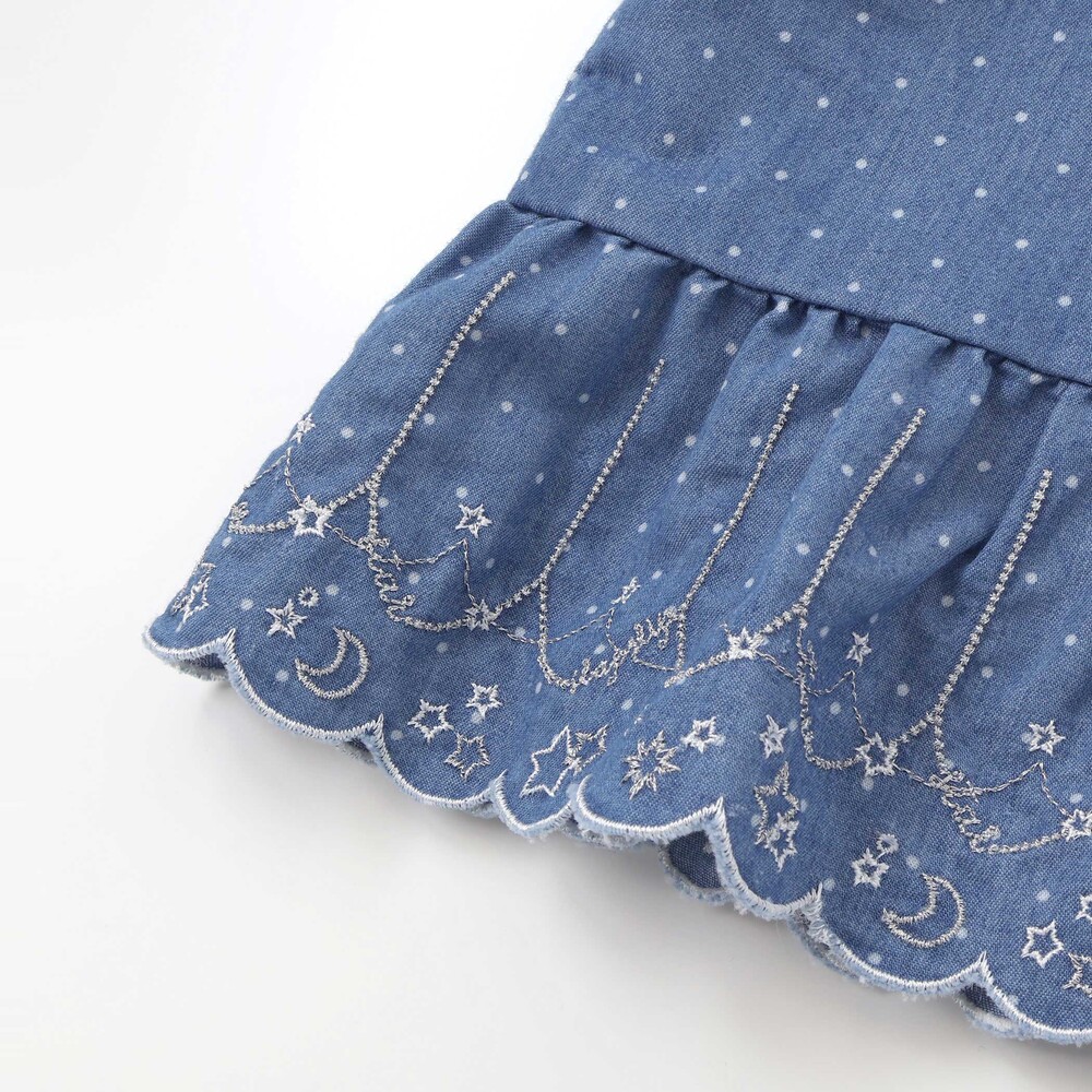 スカラップ部分には星や月、ガーランドのような刺しゅうをあしらい、どこから見ても華やかな印象に仕上げました。