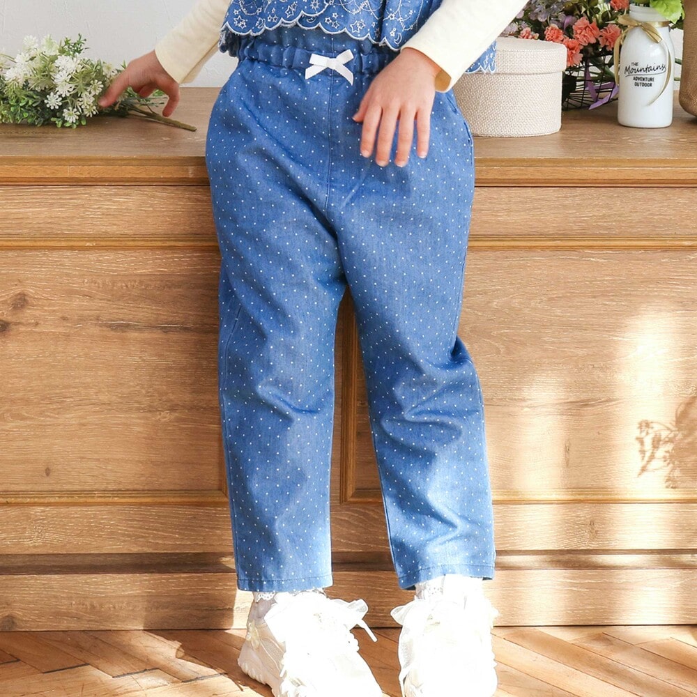 パンツはウエストにリボンを添えて、トップスとのバランスも可愛くまとまるデザインです。
