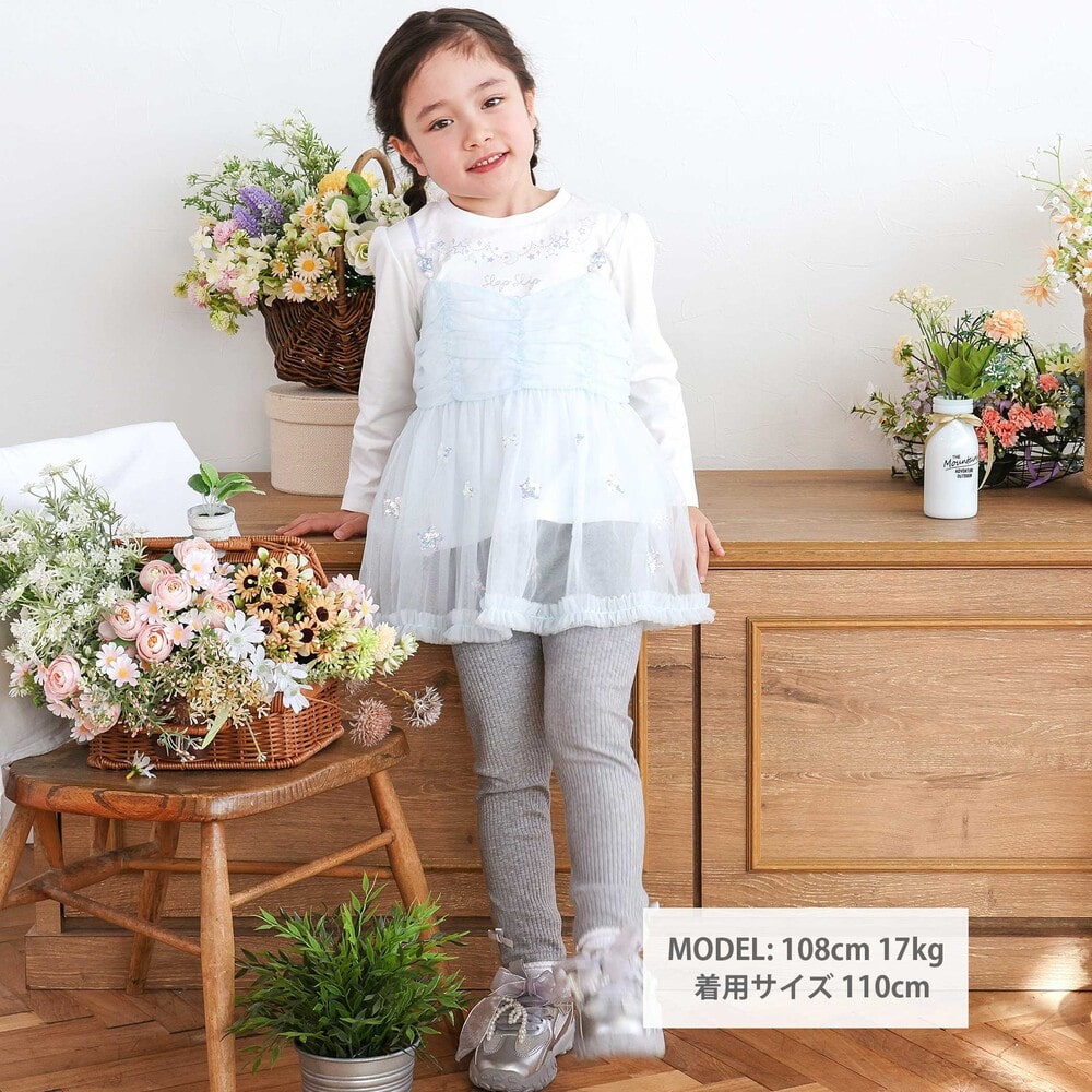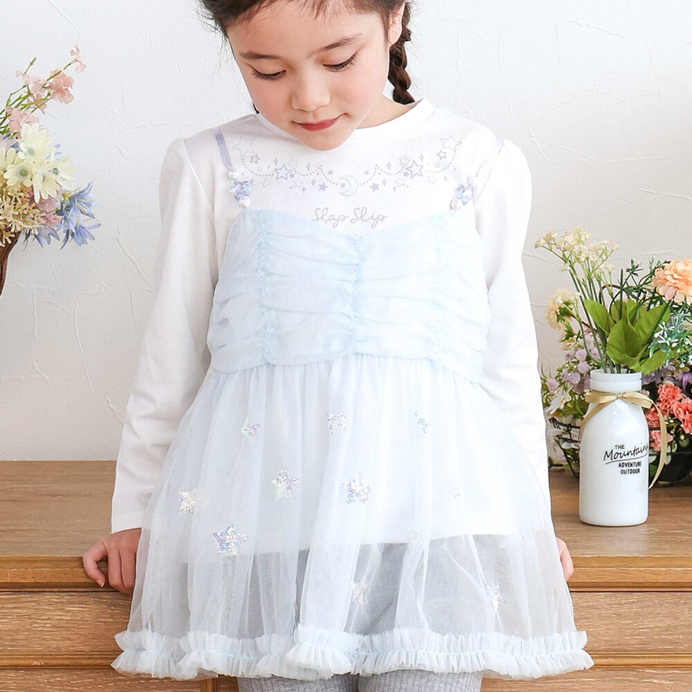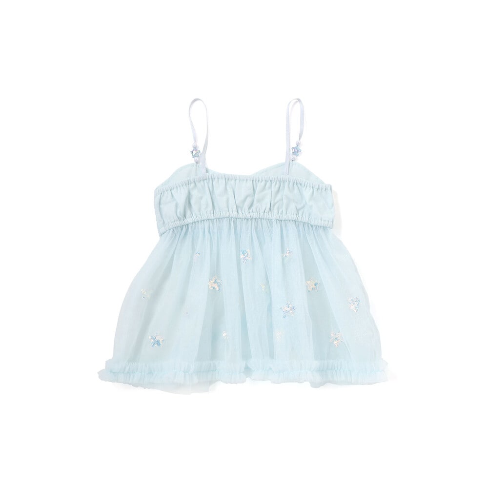 キャミチュニックは、ラメチュールの上にスパンコール入りのお星さまチュールを重ねた、特別感たっぷりのデザイン。