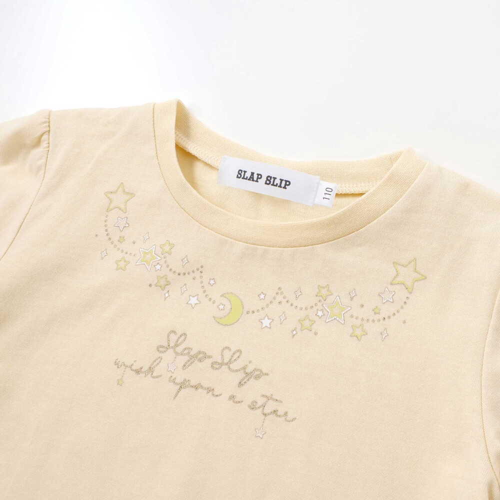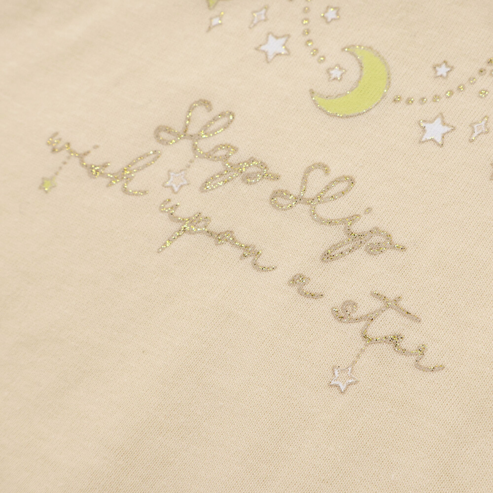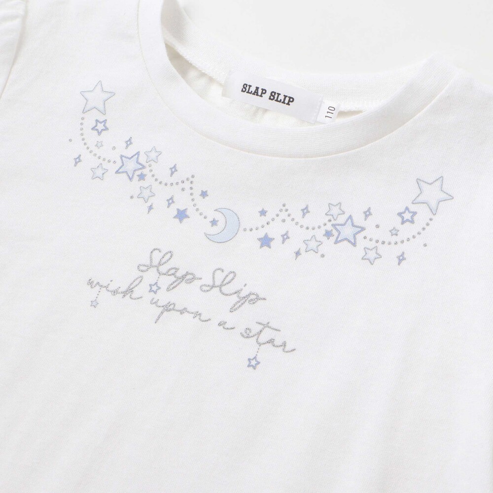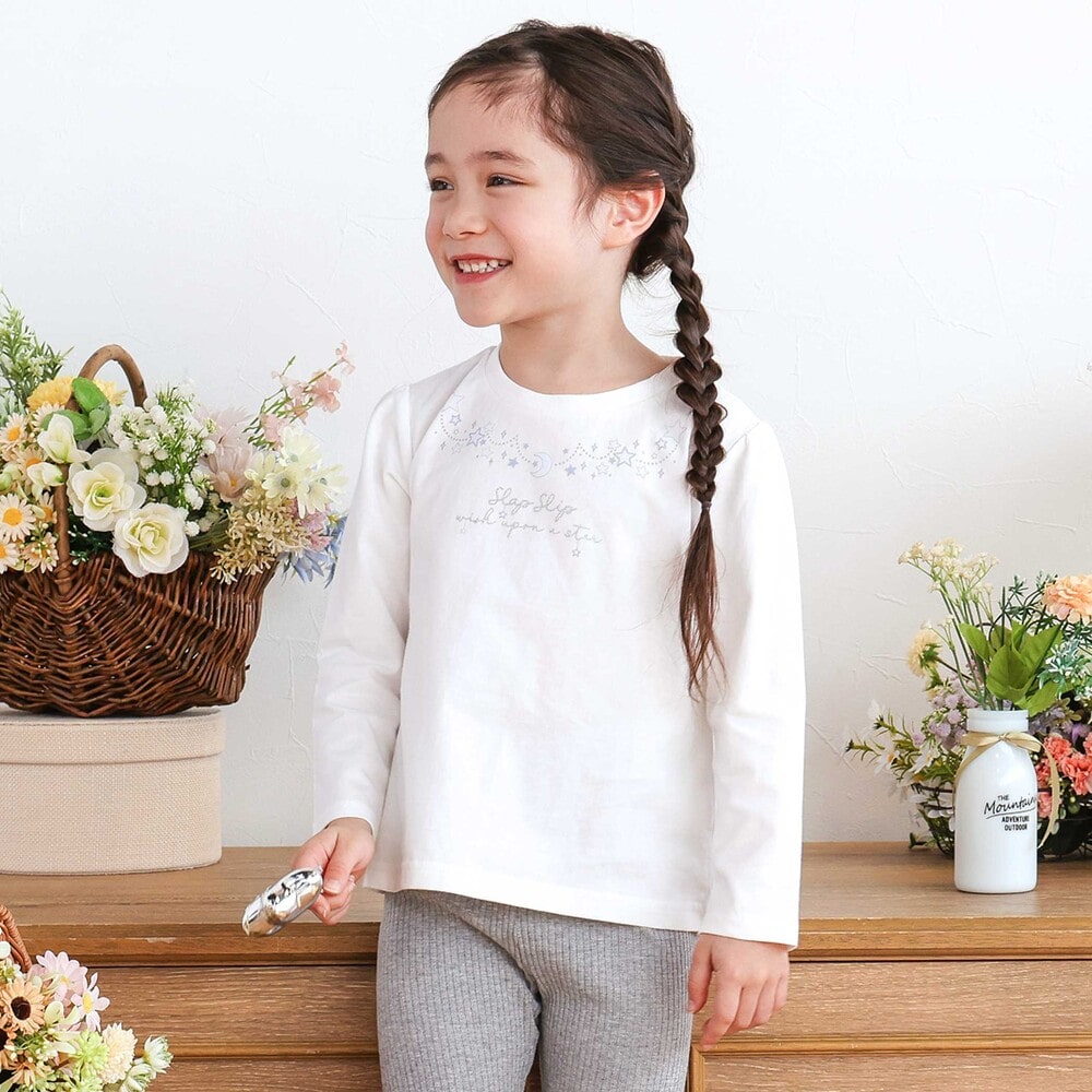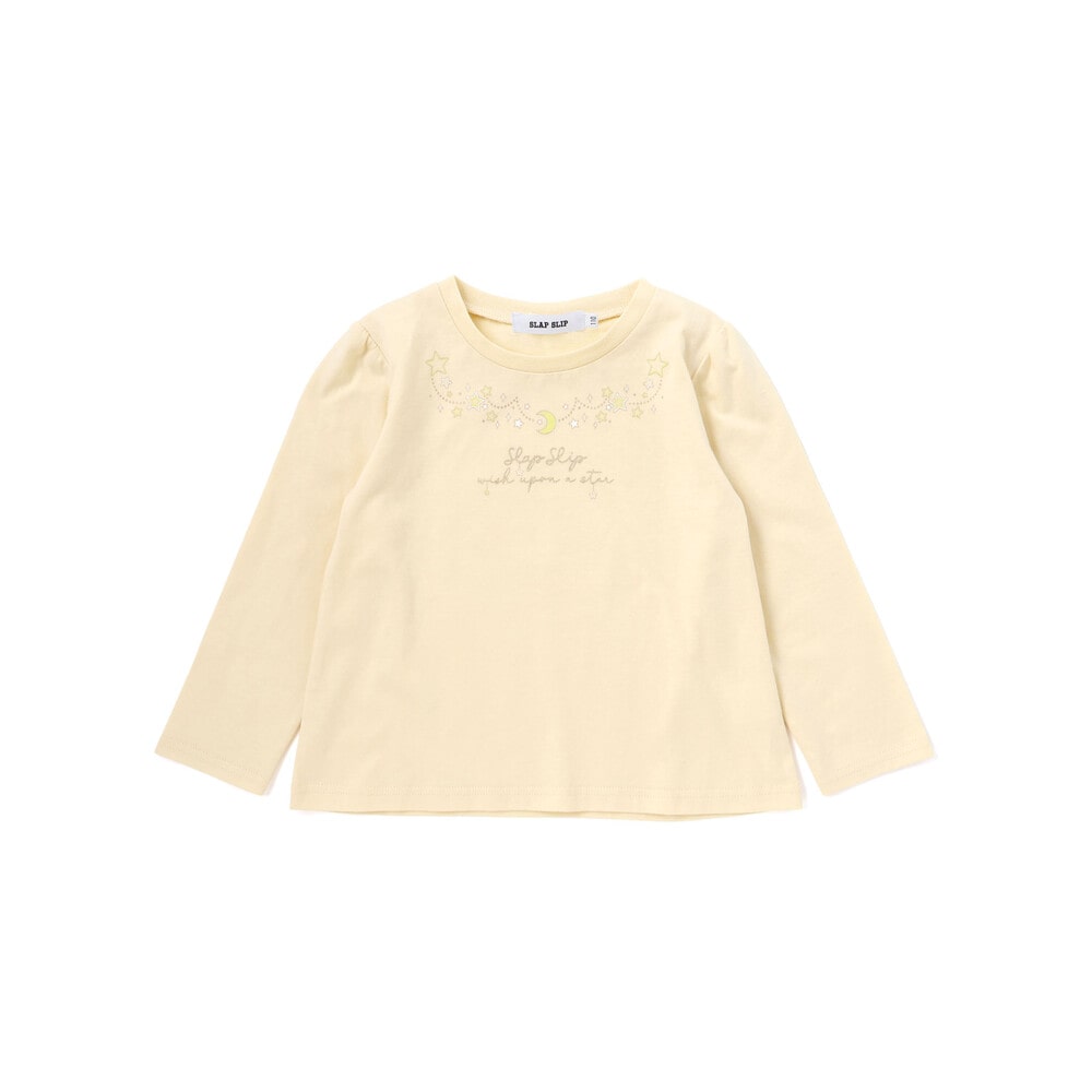 胸元には月とお星さまのモチーフをデザインした長袖Tシャツ。