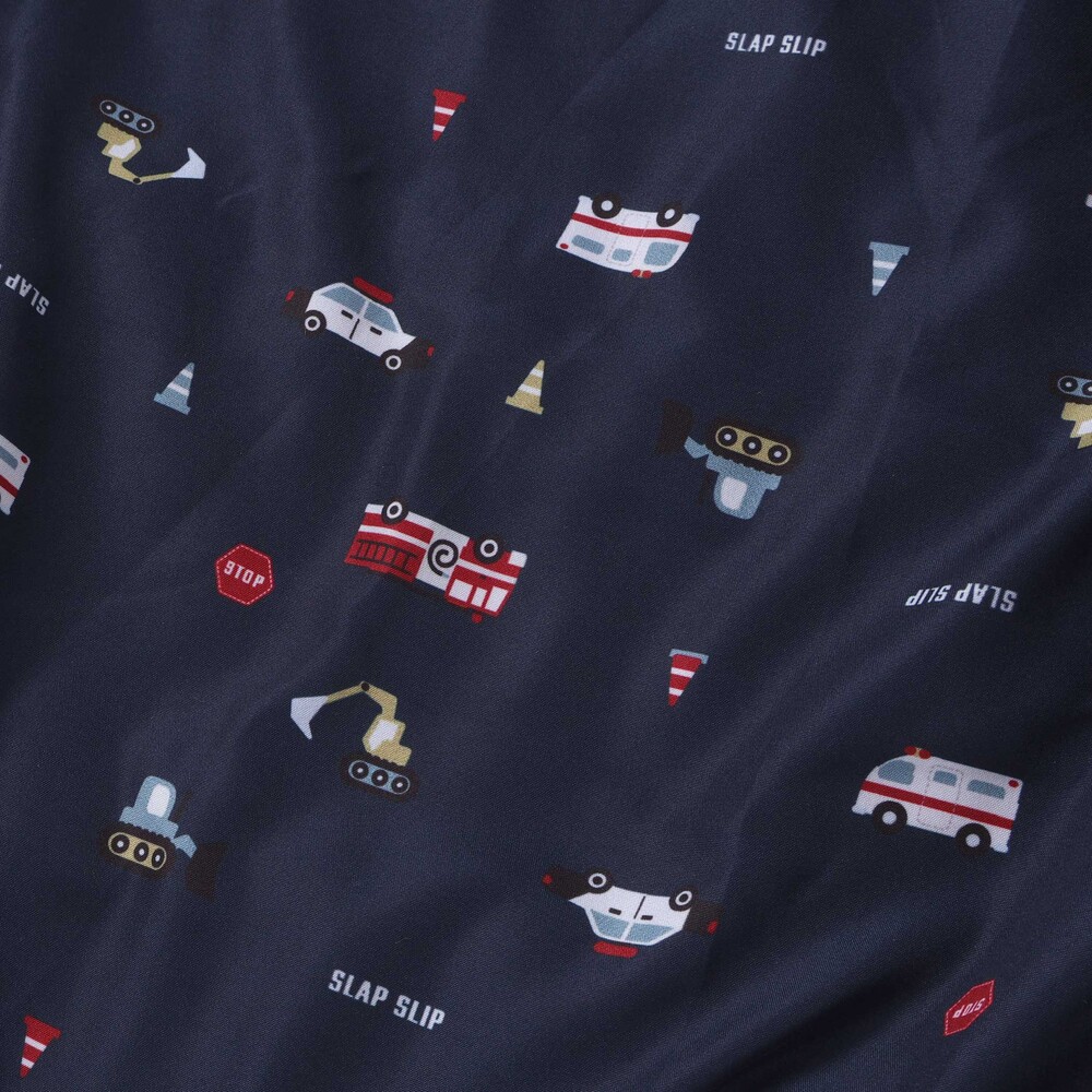 イエロー×ネイビー系:(表)インパクトのあるイエロー (裏)いろんな種類のはたらくくるまがギュギュ!