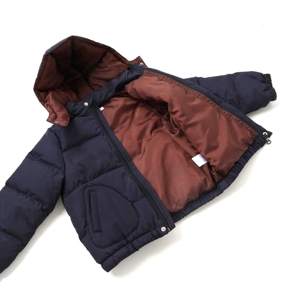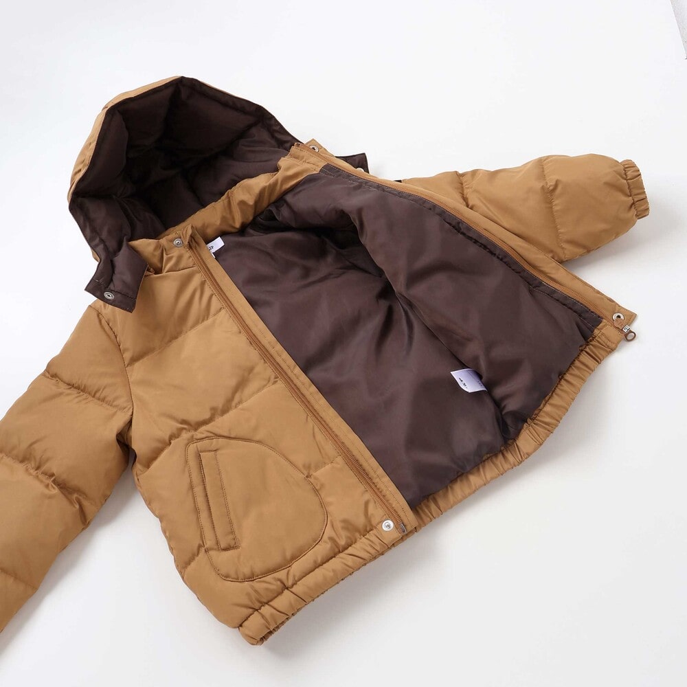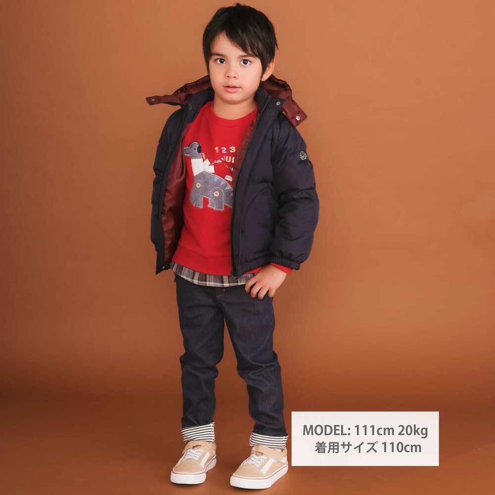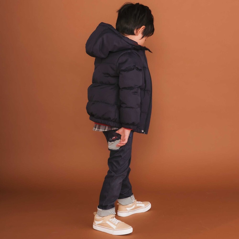 表と裏の配色がかっこいい男の子用のダウンコート。