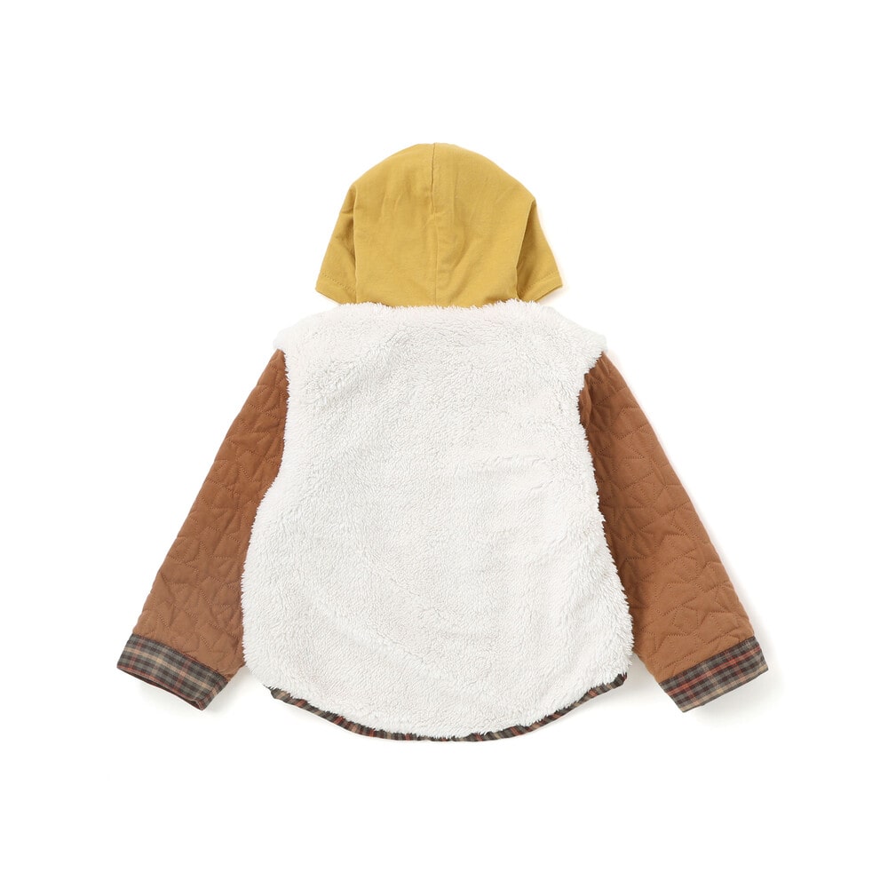 素材 | (チェック部分) ポリエステル100% ボア:ポリエステル100% (キルト部分)表側:綿60% ポリエステル40% 中わた:ポリエステル100% (フード部分)綿60% ポリエステル40% |
