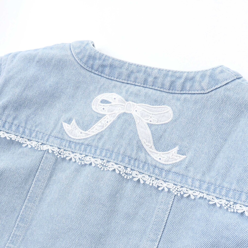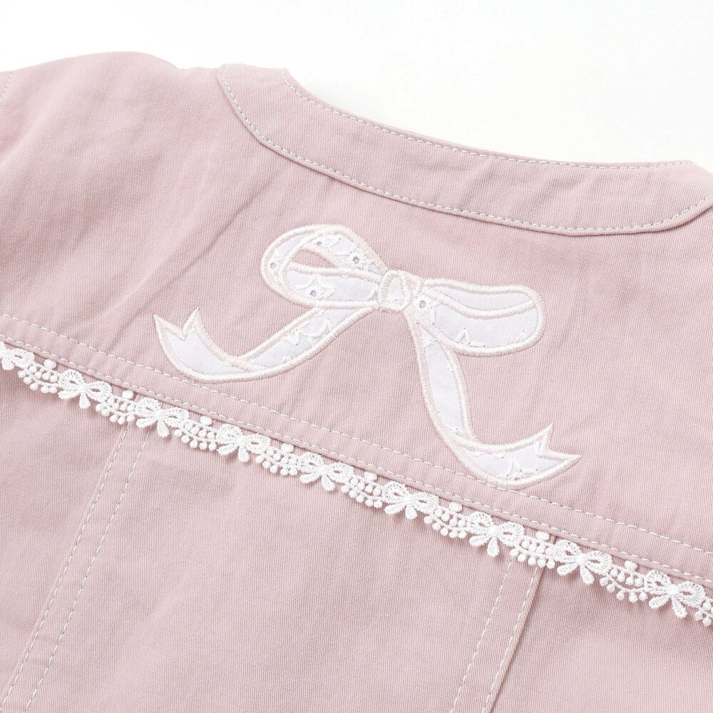 背中にはレースを使ったリボンの刺しゅうをデザインし、後ろ姿まで抜かりないポイントに。