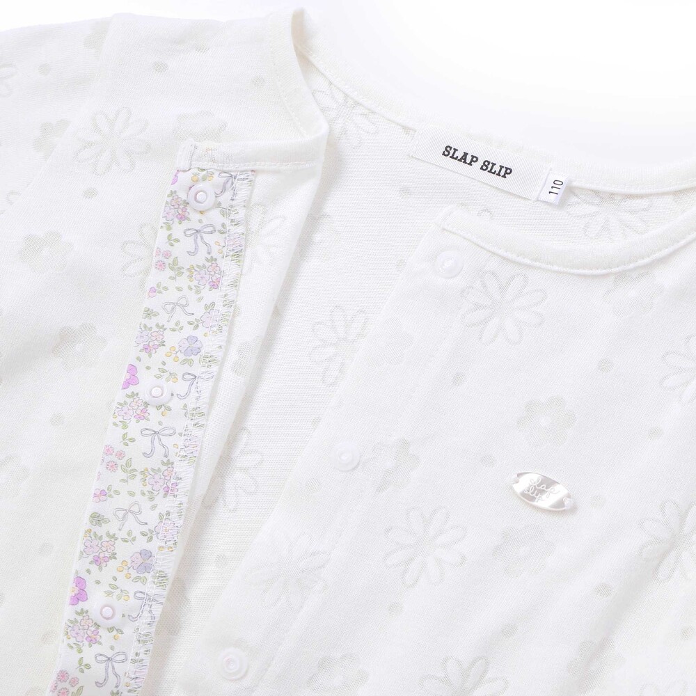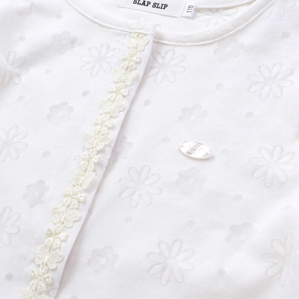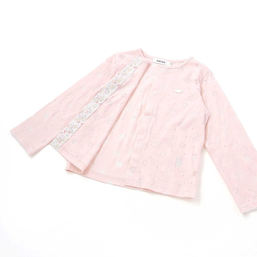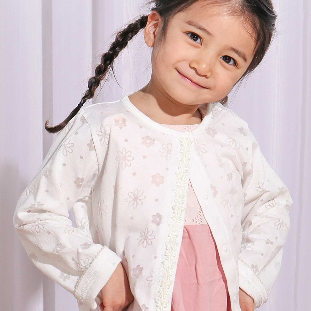 花柄がたっぷり散りばめられた、見ているだけで心がふわっと華やぐ女の子用カーディガン。