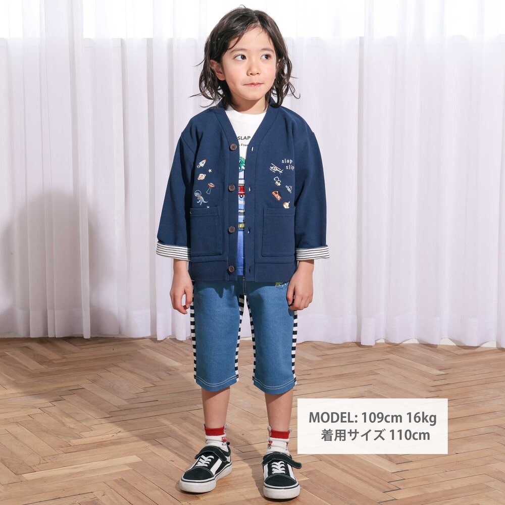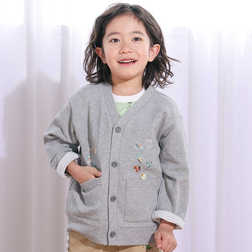 通園・通学からお出かけまで幅広く使える、遊び心いっぱいの男の子カーディガンです。