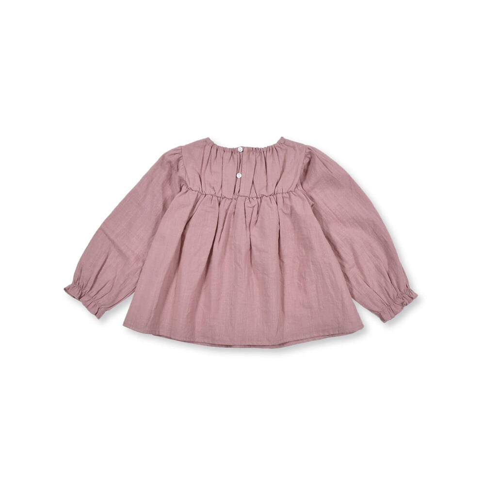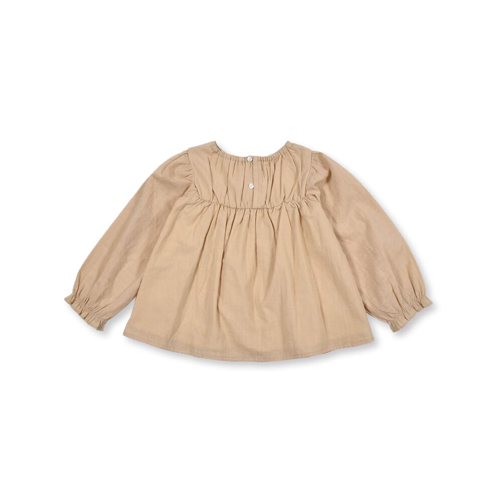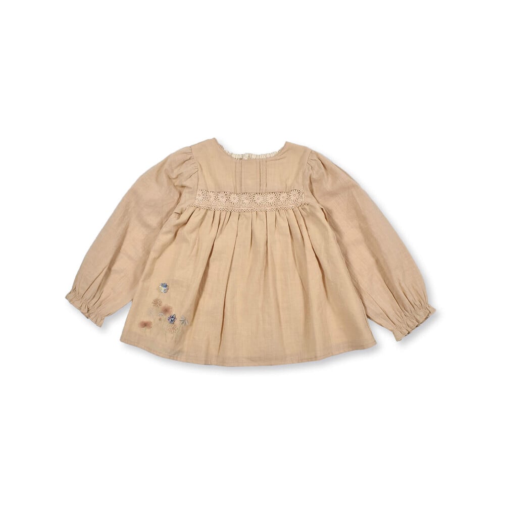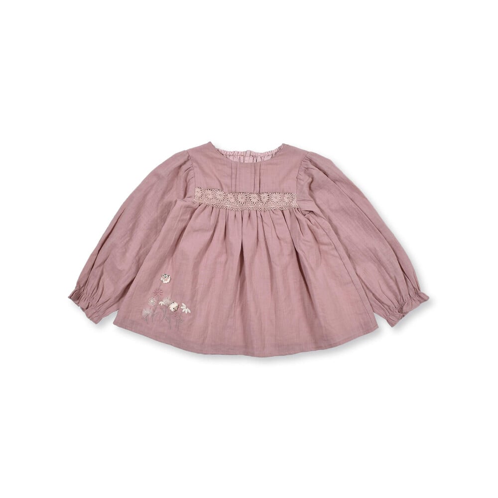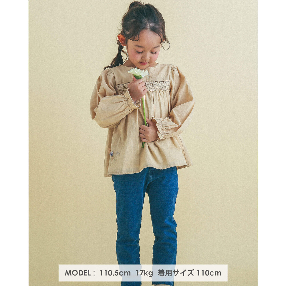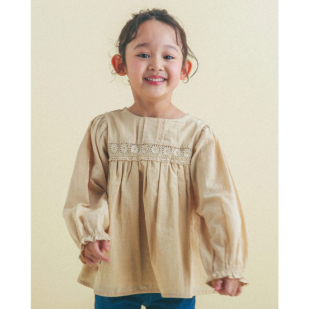 立体的な花のモチーフが特徴的な女の子用シャツ。