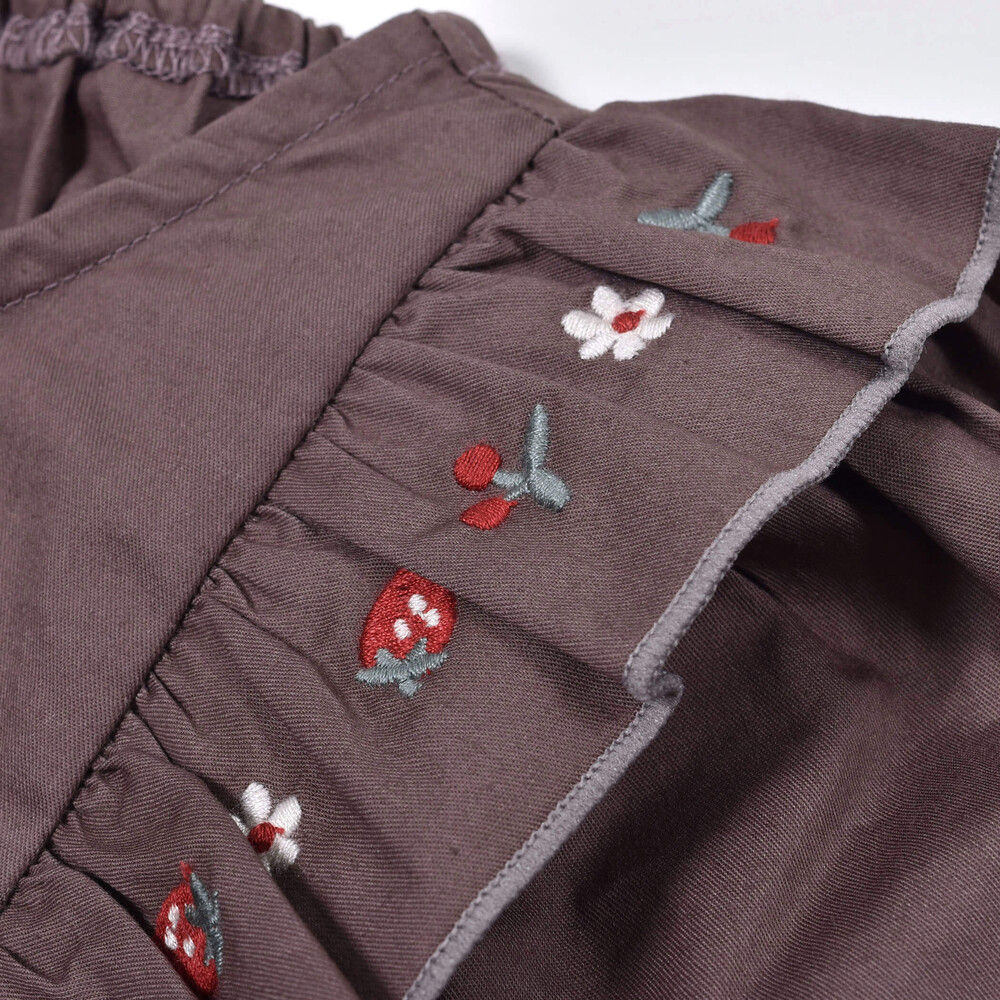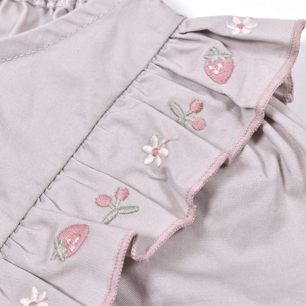 花・イチゴ・チェリー刺繍がかわいらしいポイントになっています♪