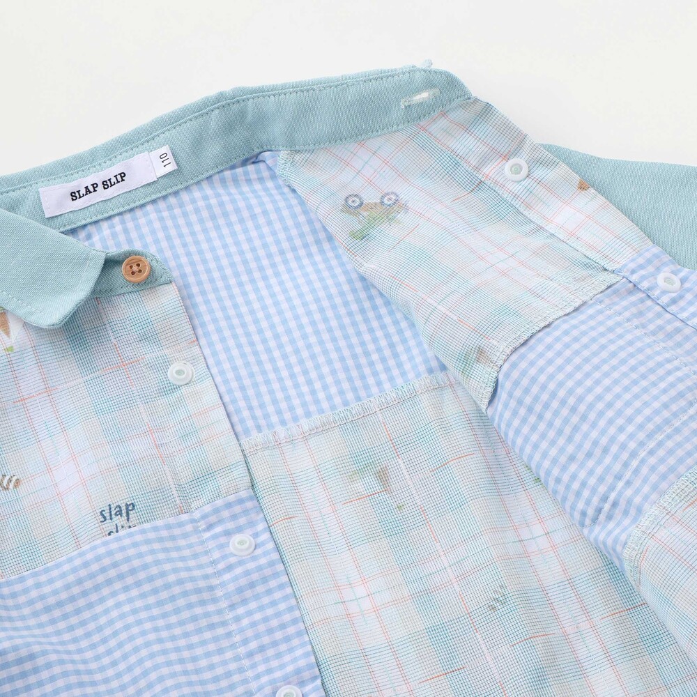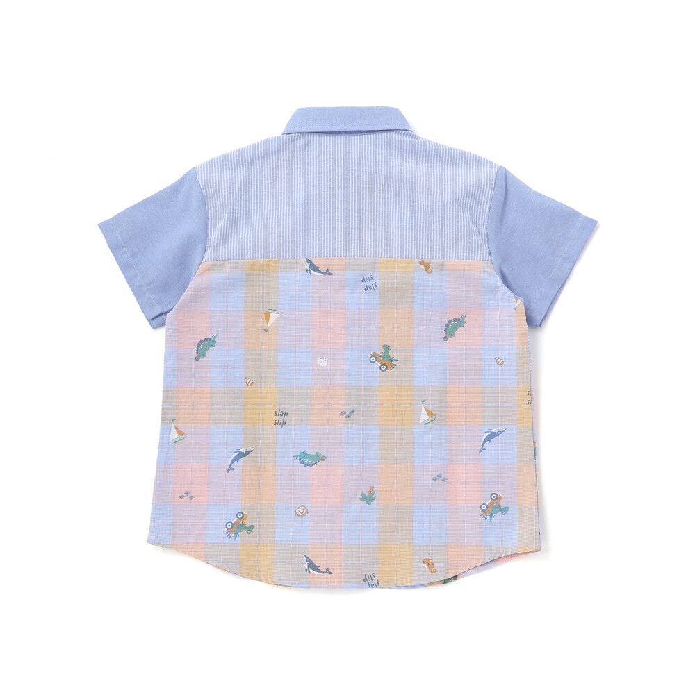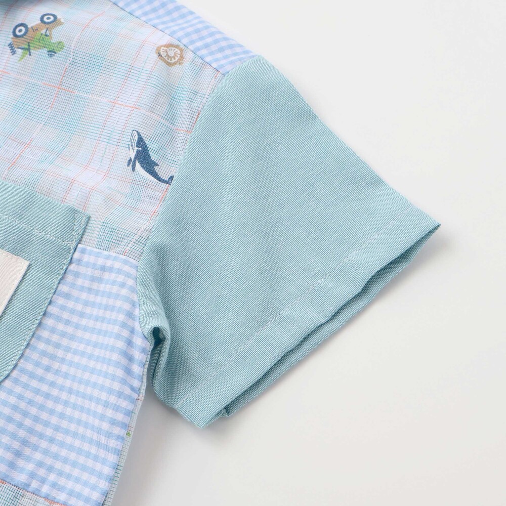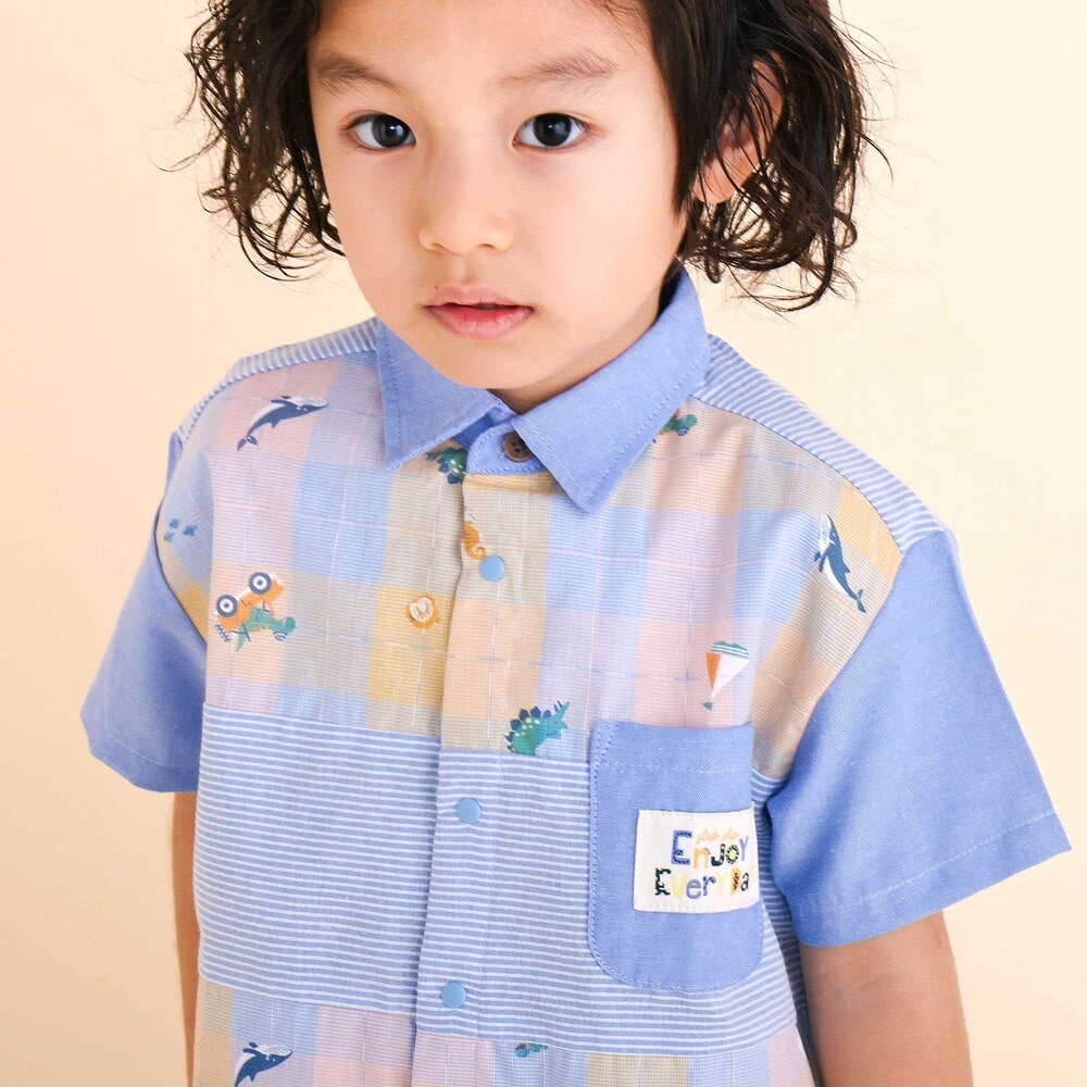チェック、ストライプ、シャンブレーをふんわり組み合わせた男の子用シャツ。