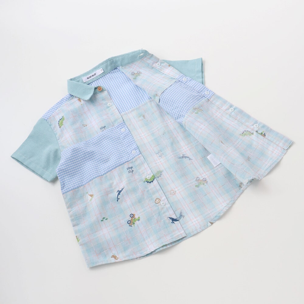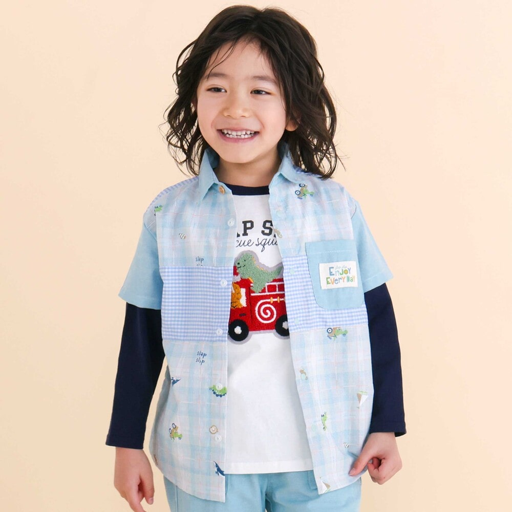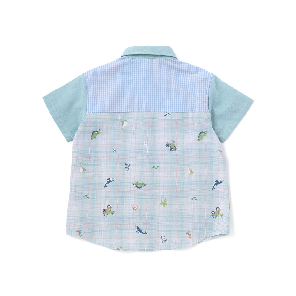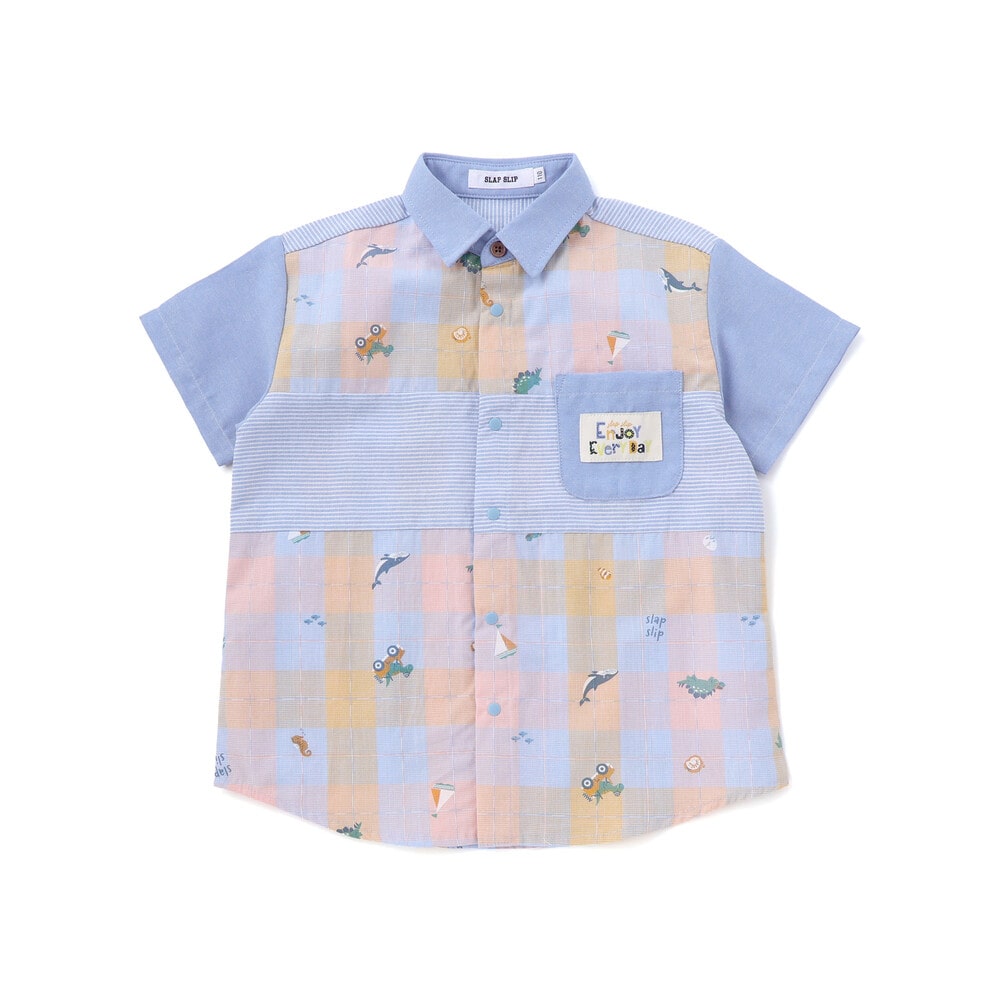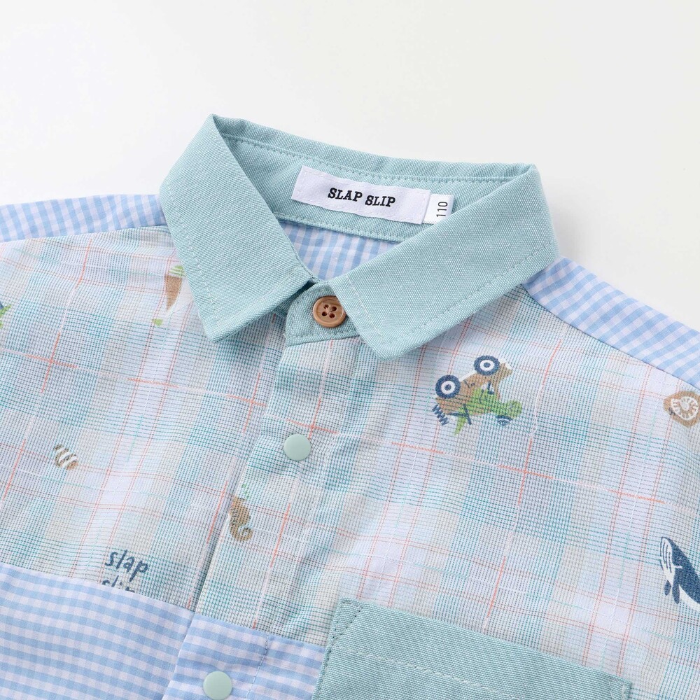 チェック、ストライプ、シャンブレーをふんわり組み合わせた男の子用シャツ。
