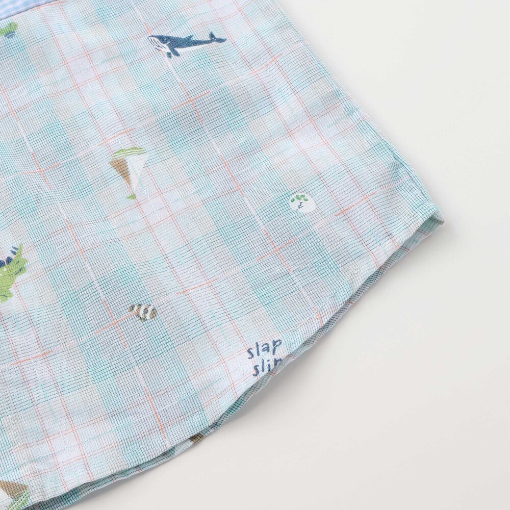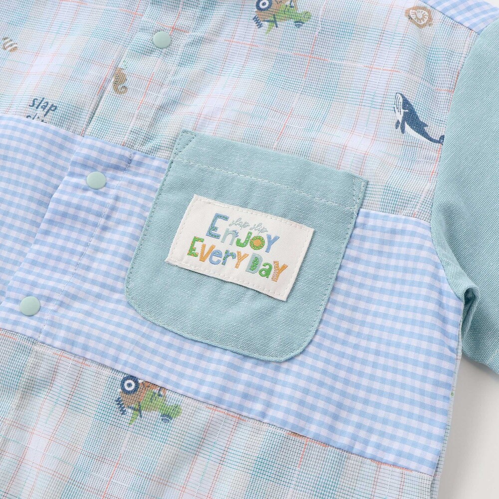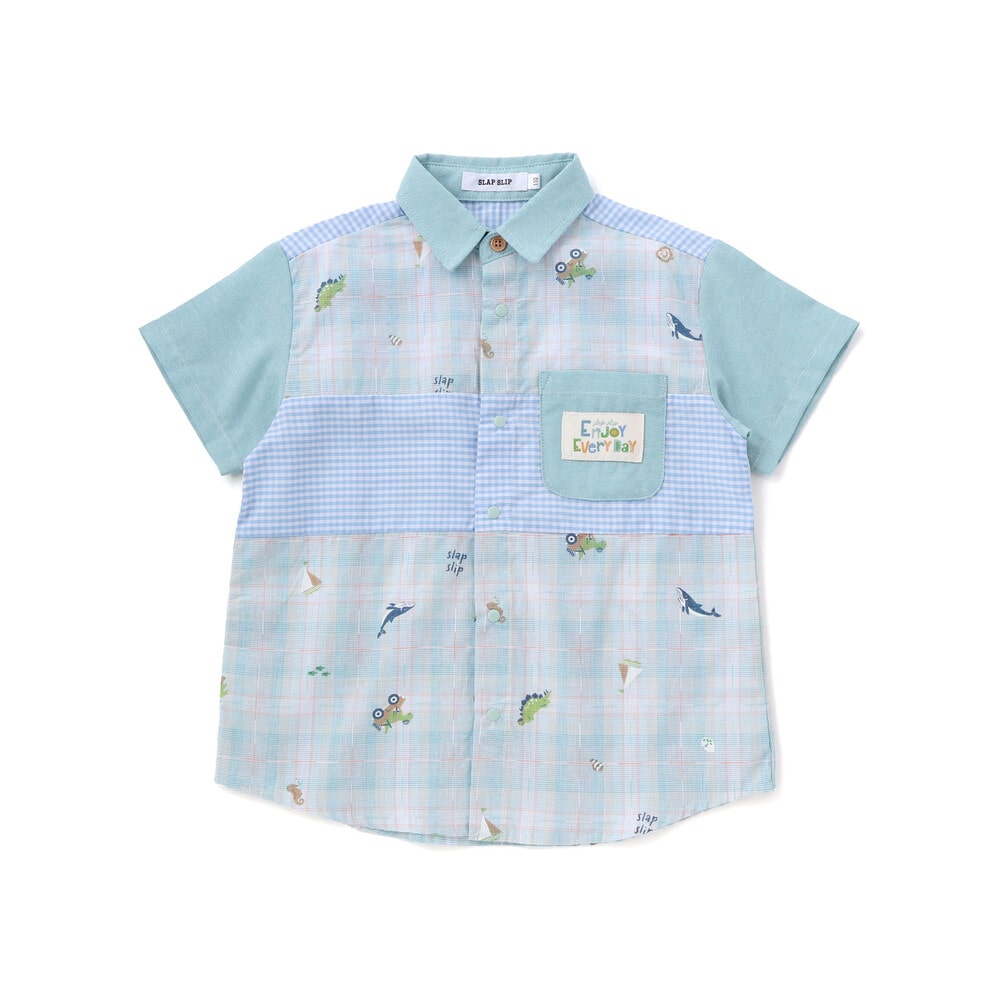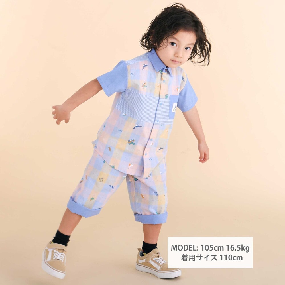 チェック、ストライプ、シャンブレーをふんわり組み合わせた男の子用シャツ。