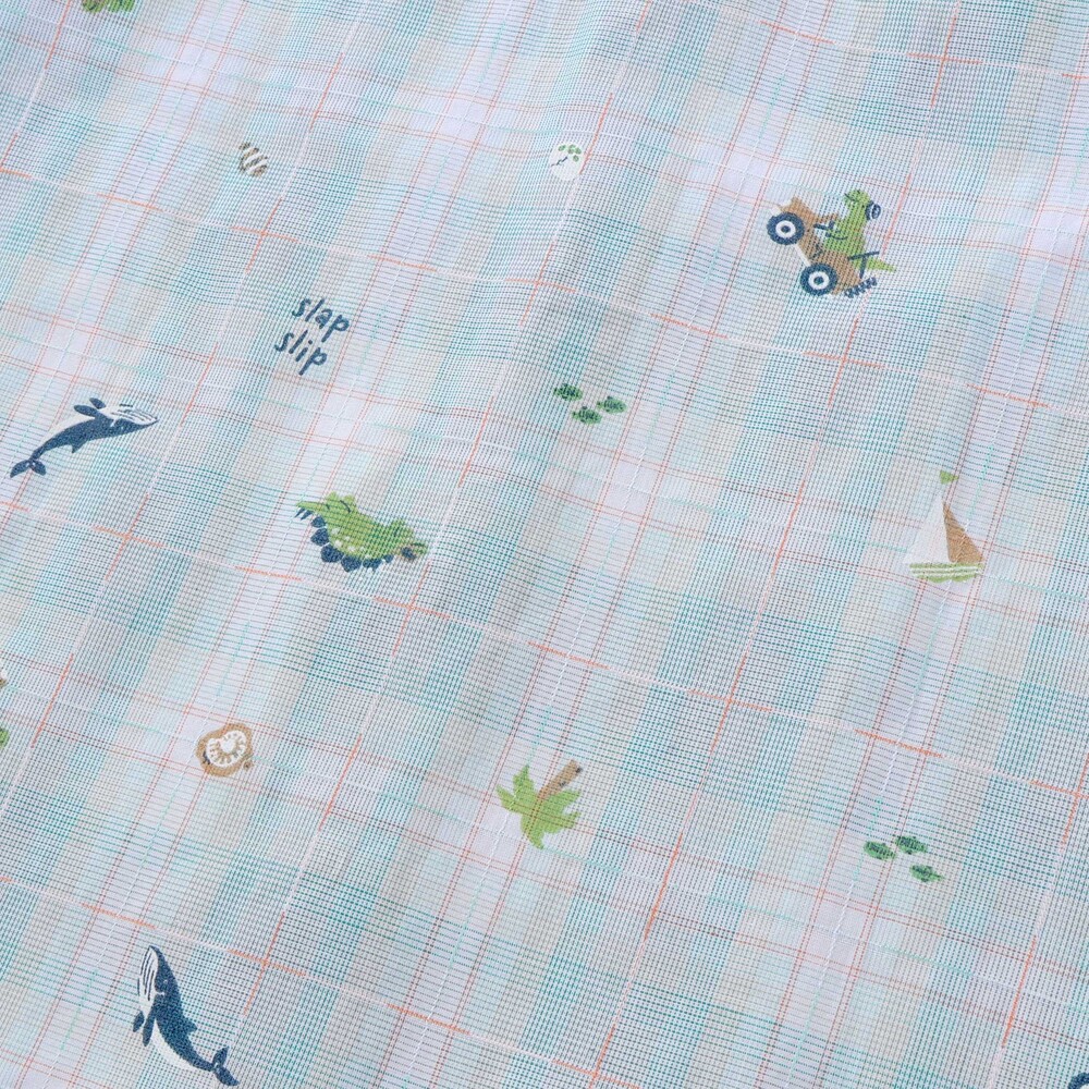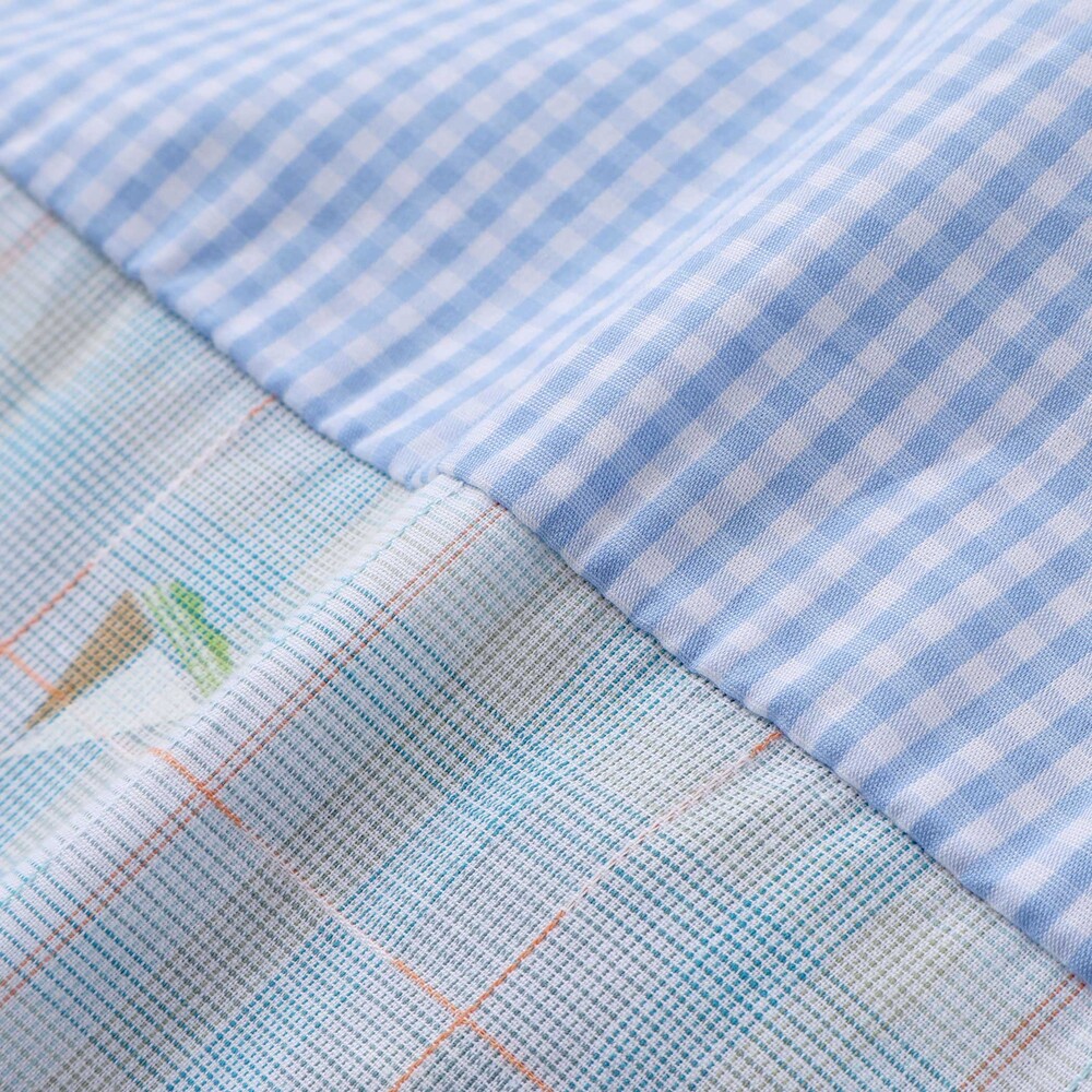 爽やかなチェック柄と淡いシャンブレーの組み合わせで、清潔感のあるブルー系、