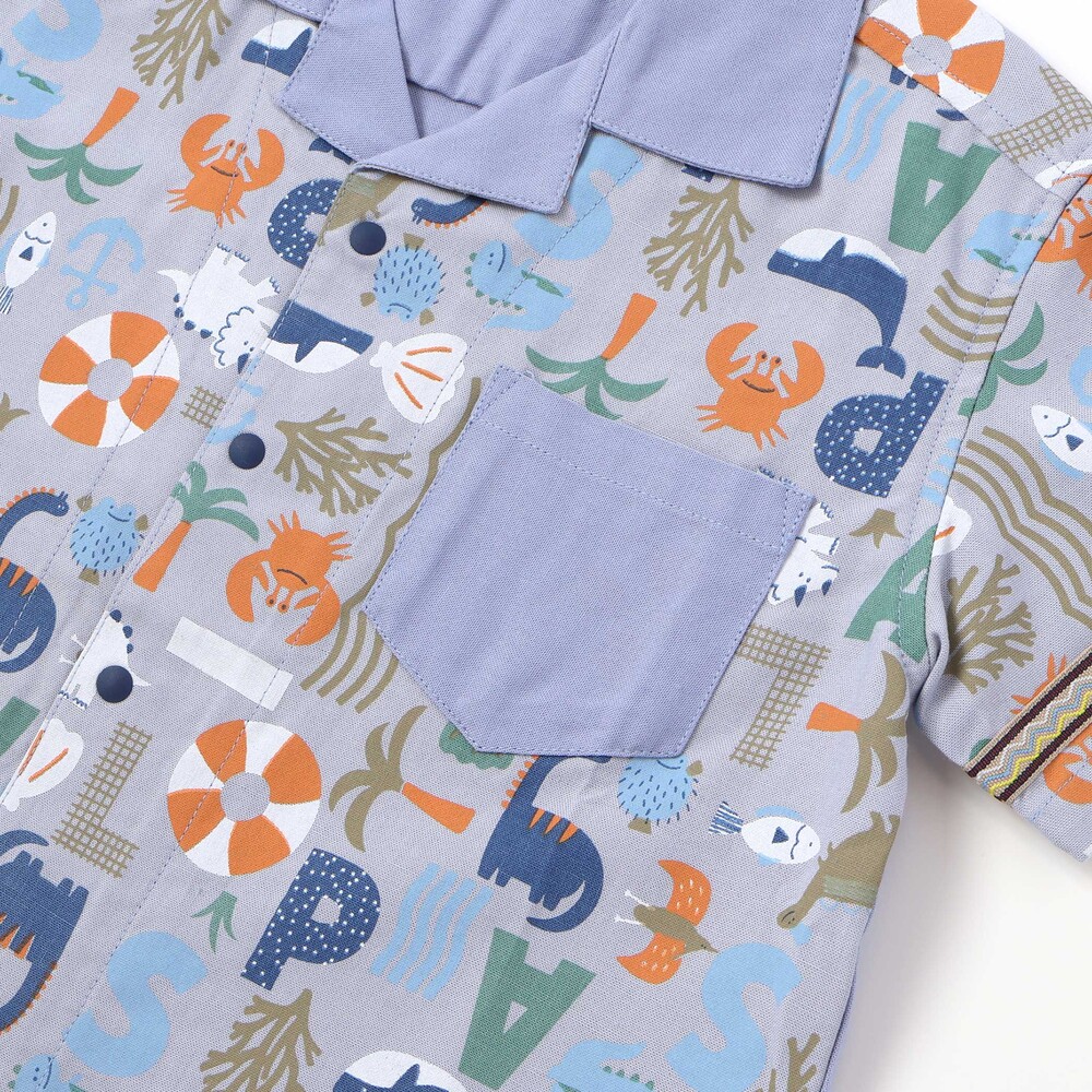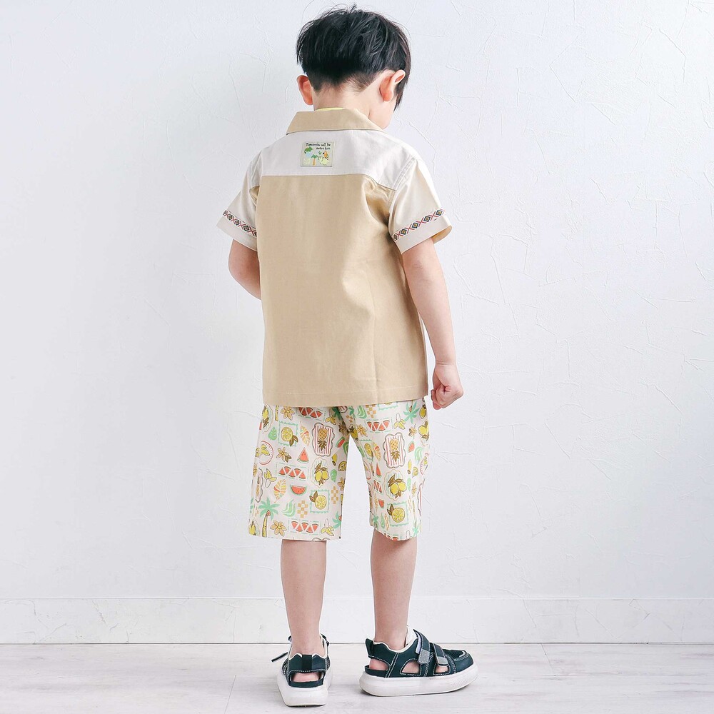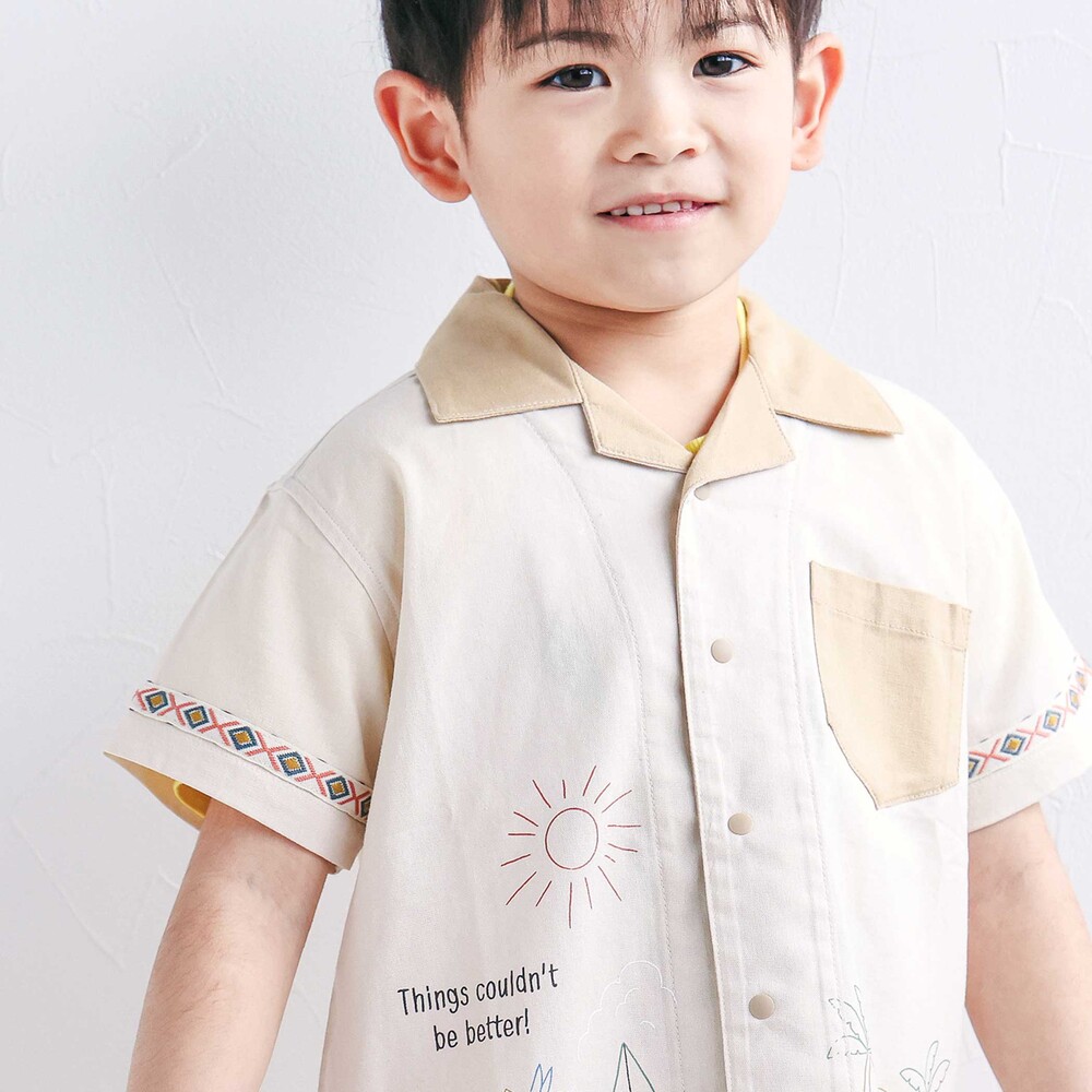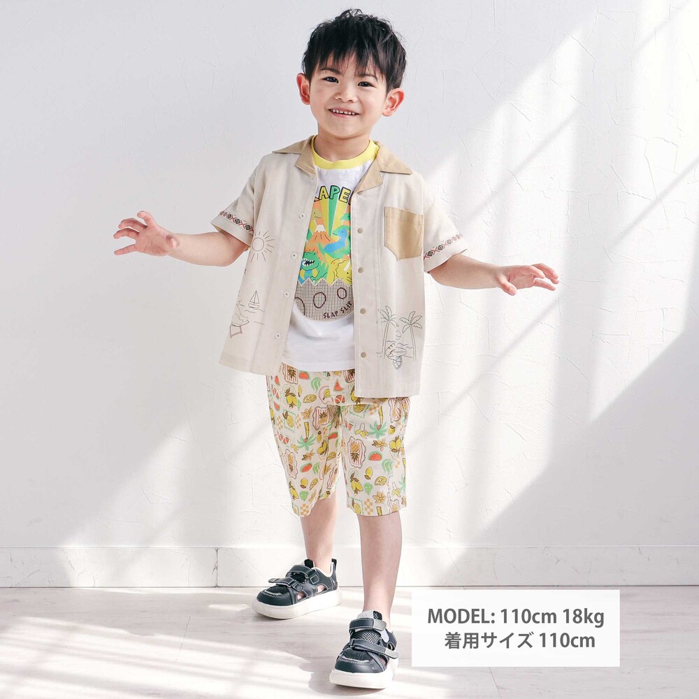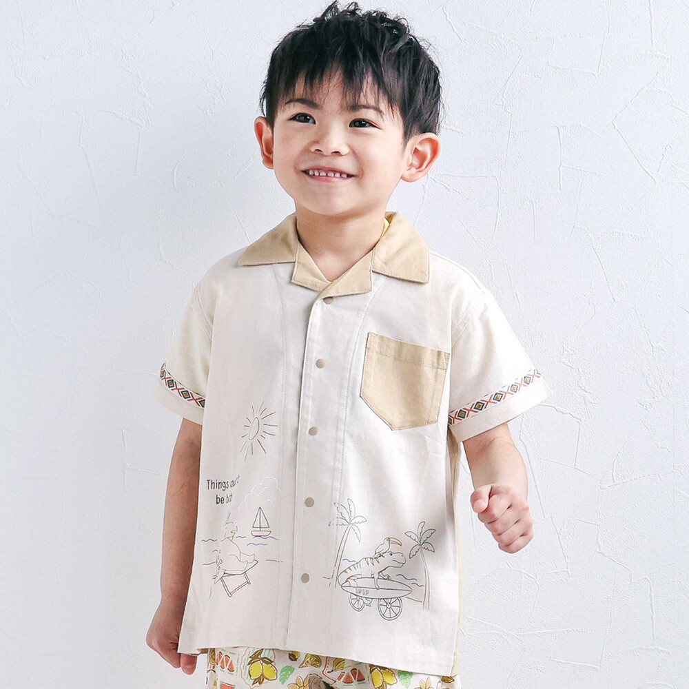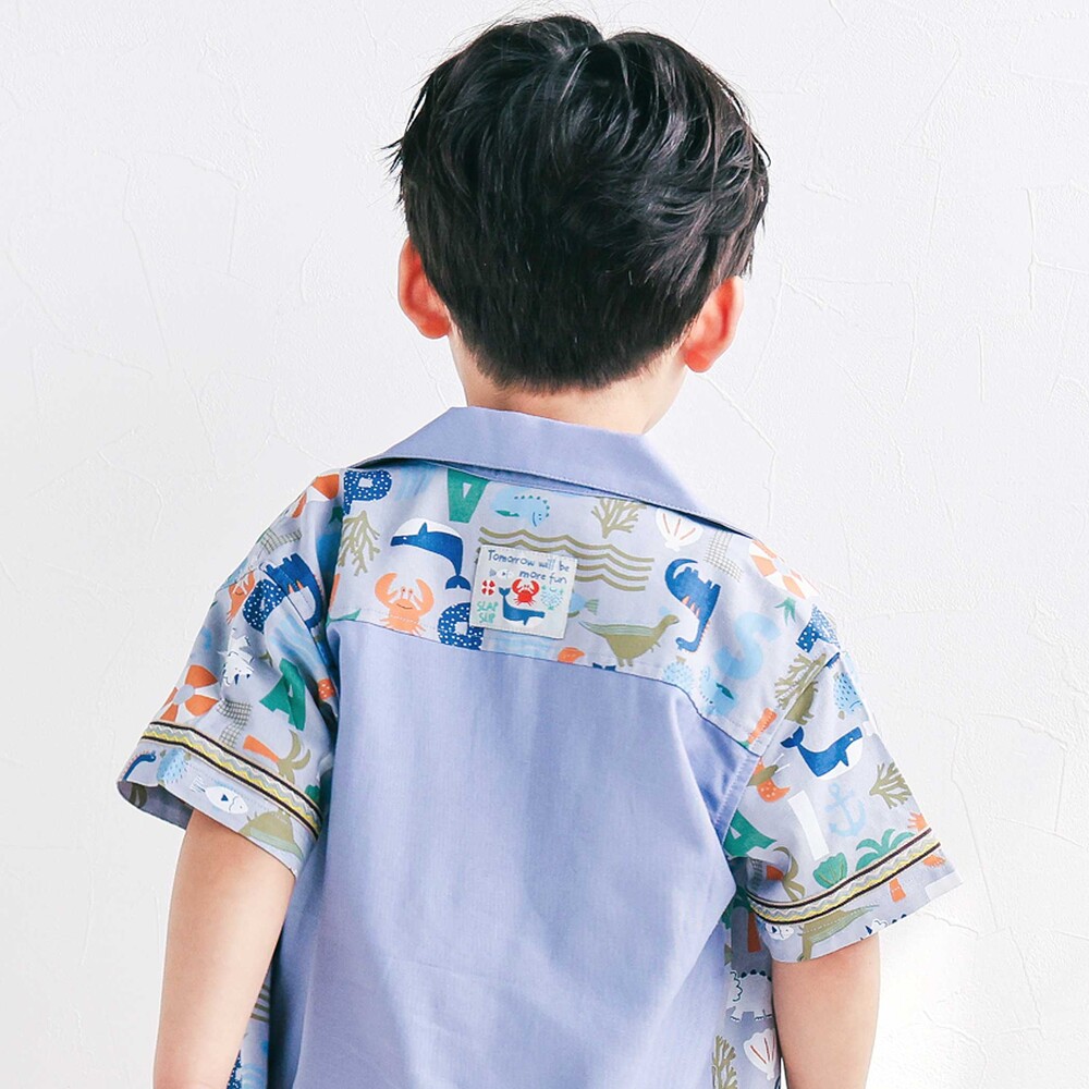 カラーごとに異なる世界観が楽しい、遊び心たっぷりの男の子用半袖シャツ。