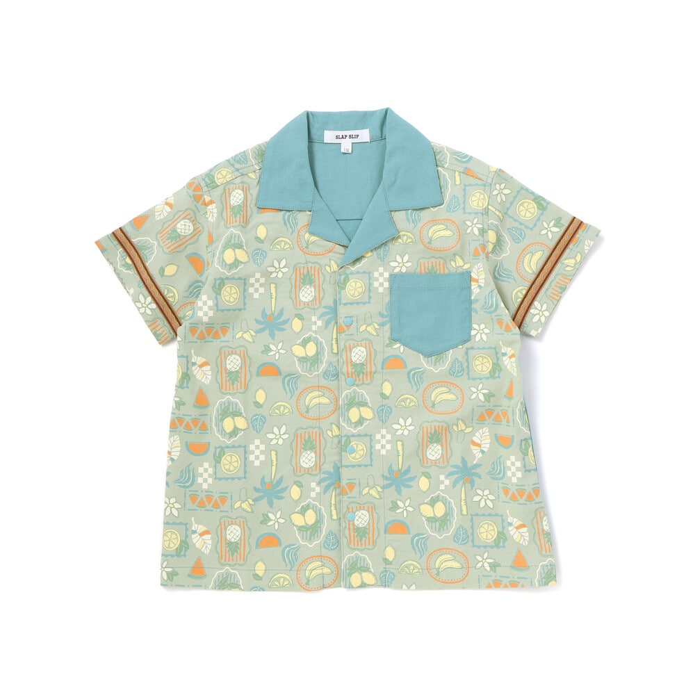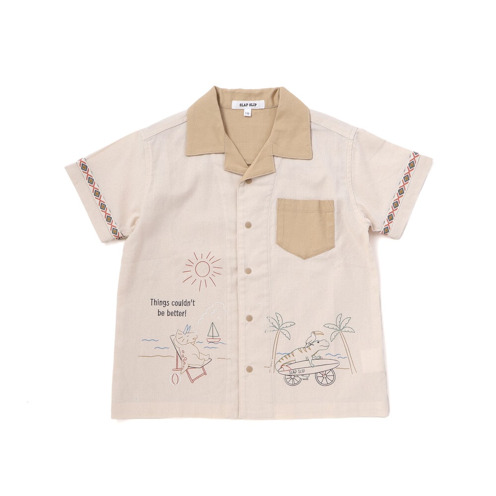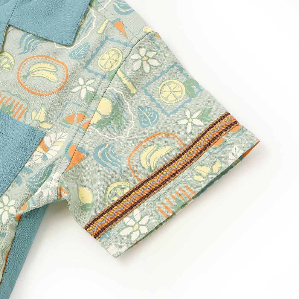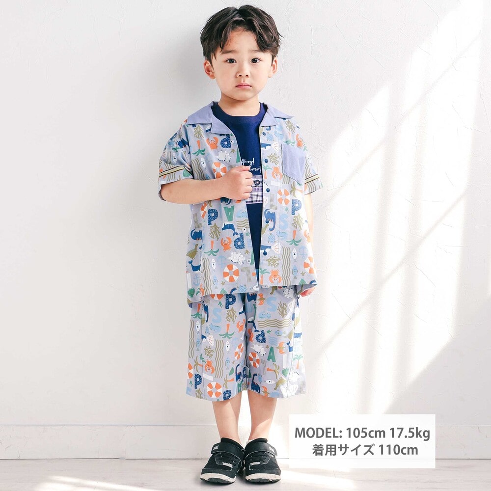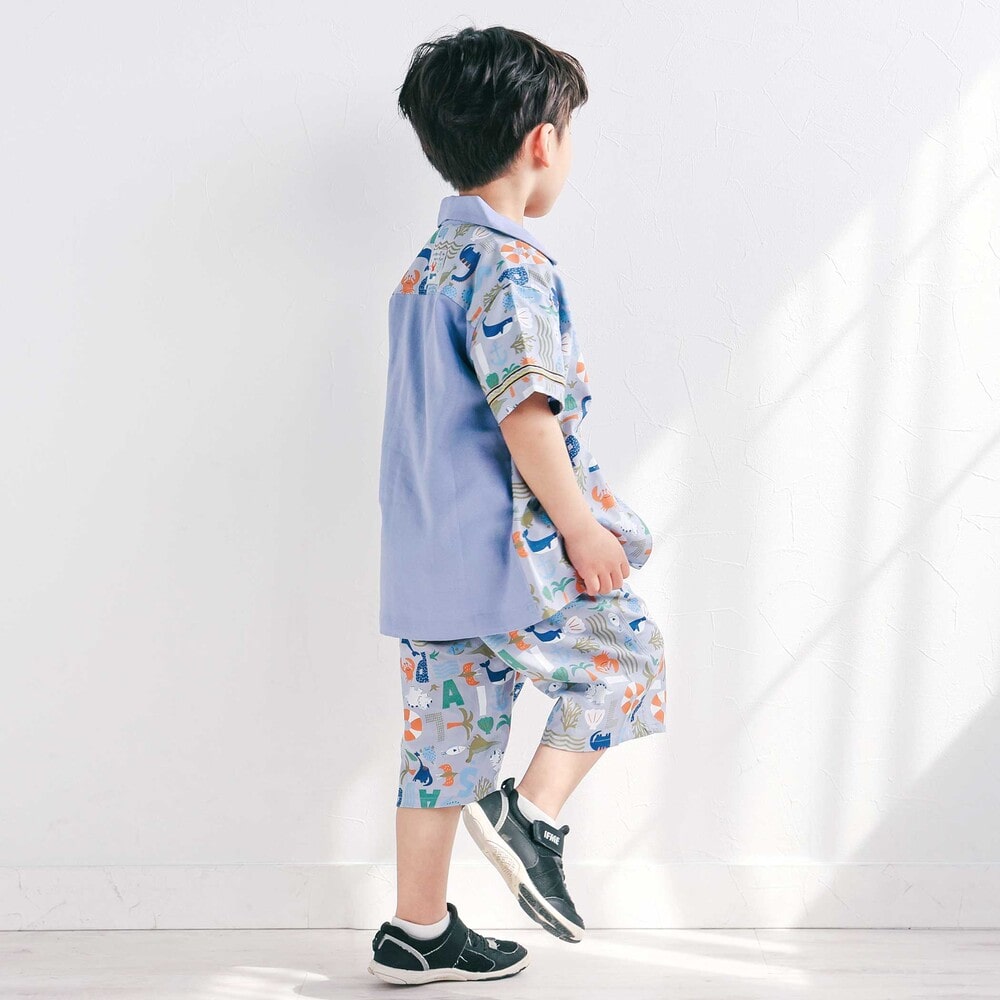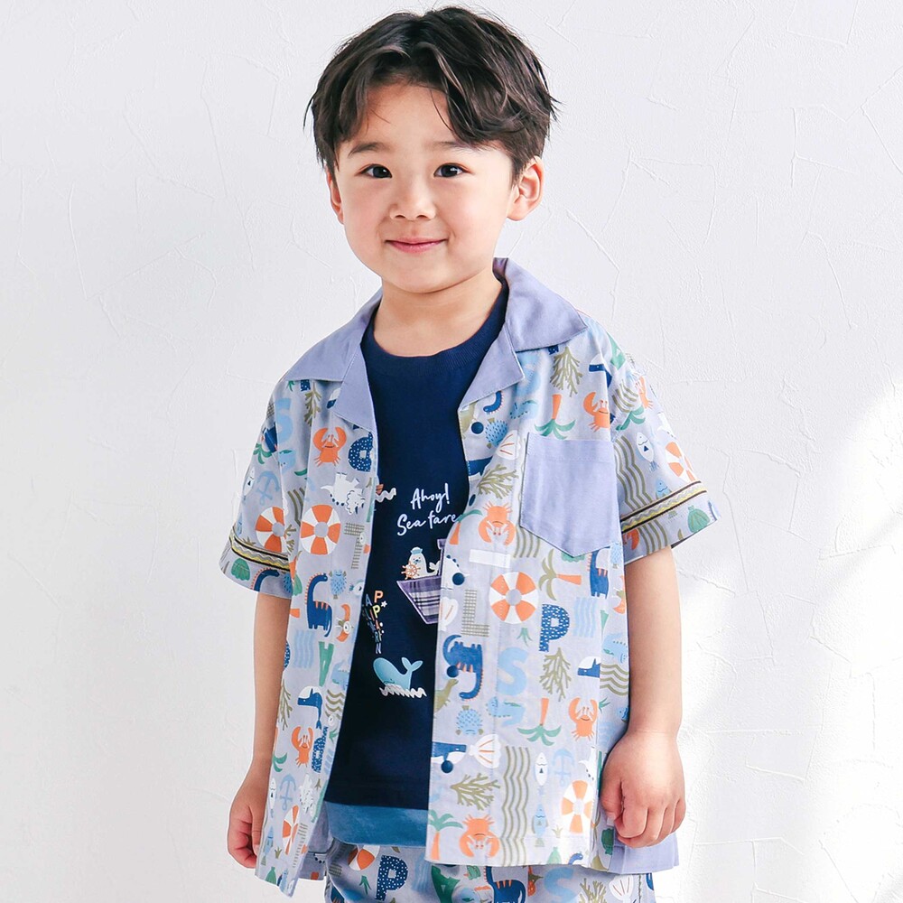 カラーごとに異なる世界観が楽しい、遊び心たっぷりの男の子用半袖シャツ。